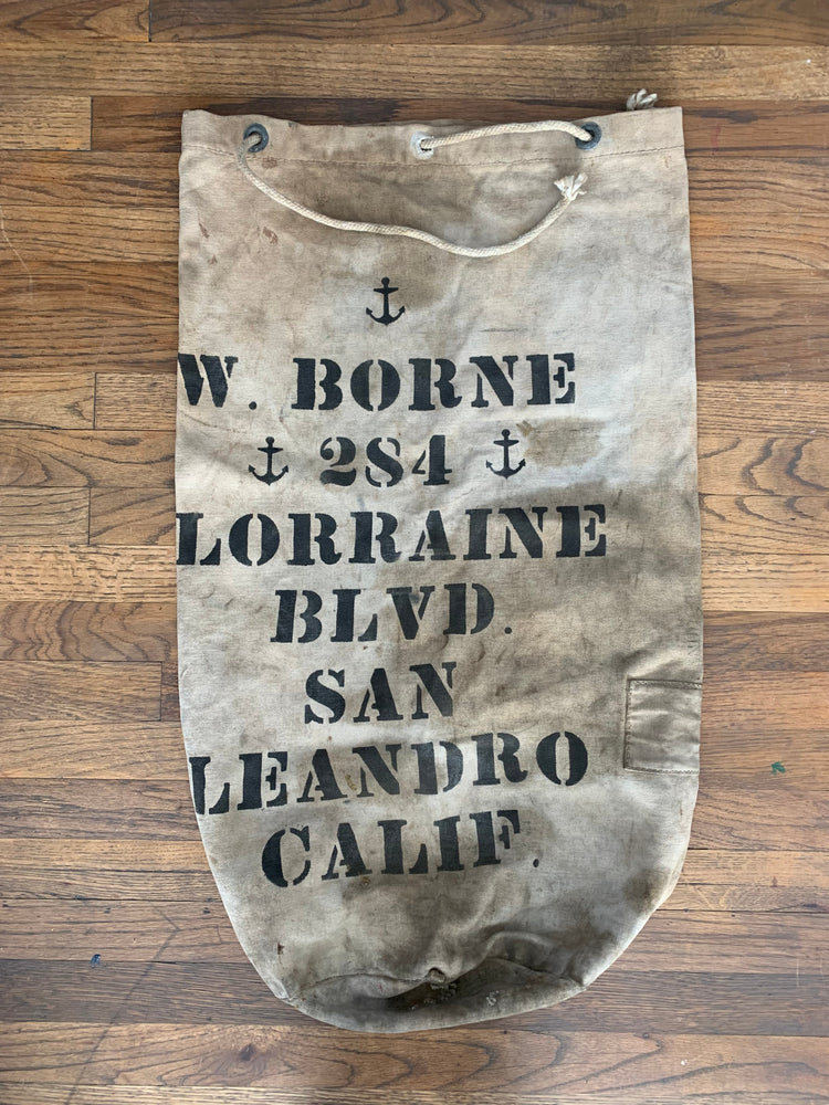 Vintage 1944 WWII Era Military Duffel with Hand Painted Personalization