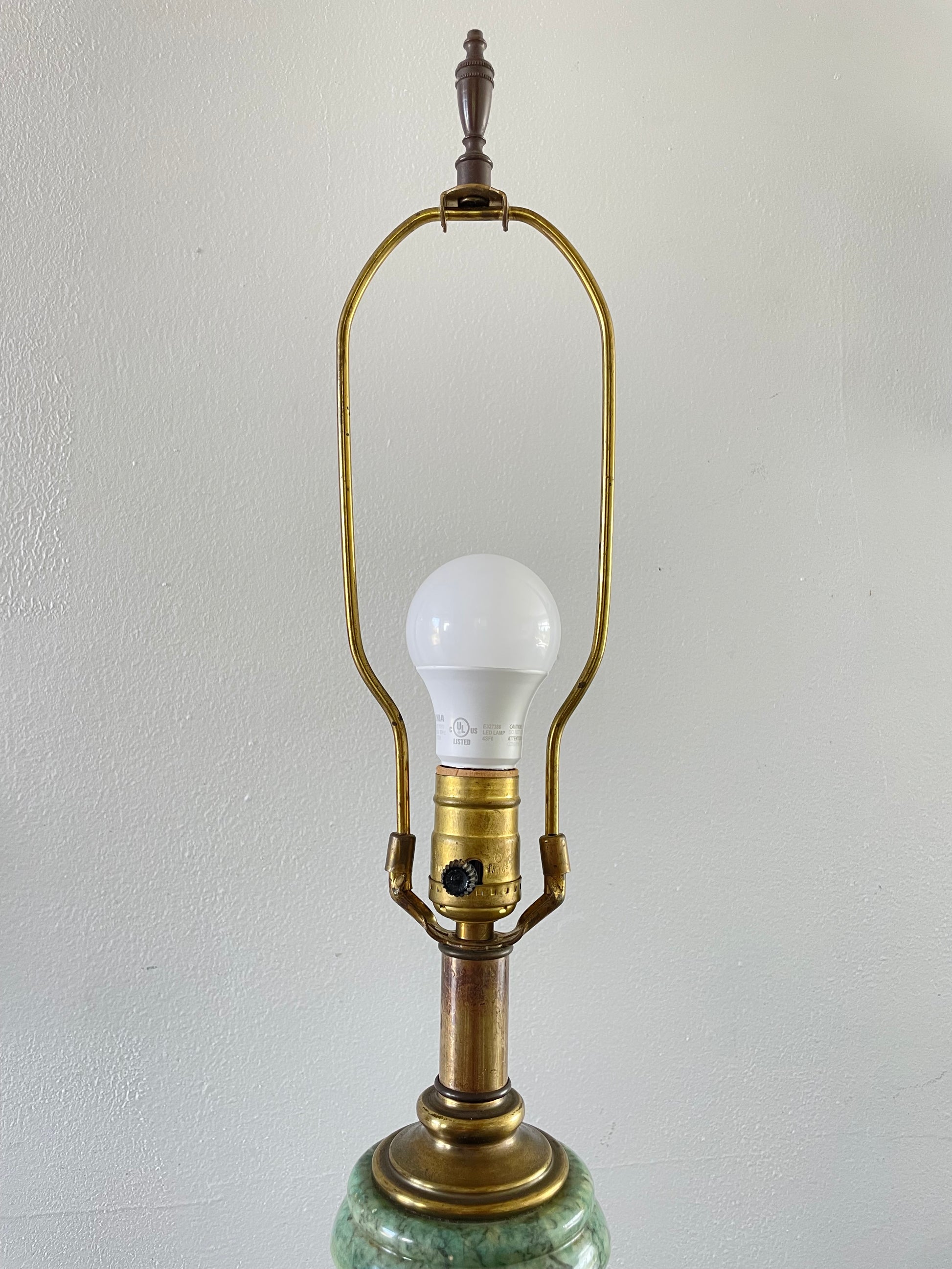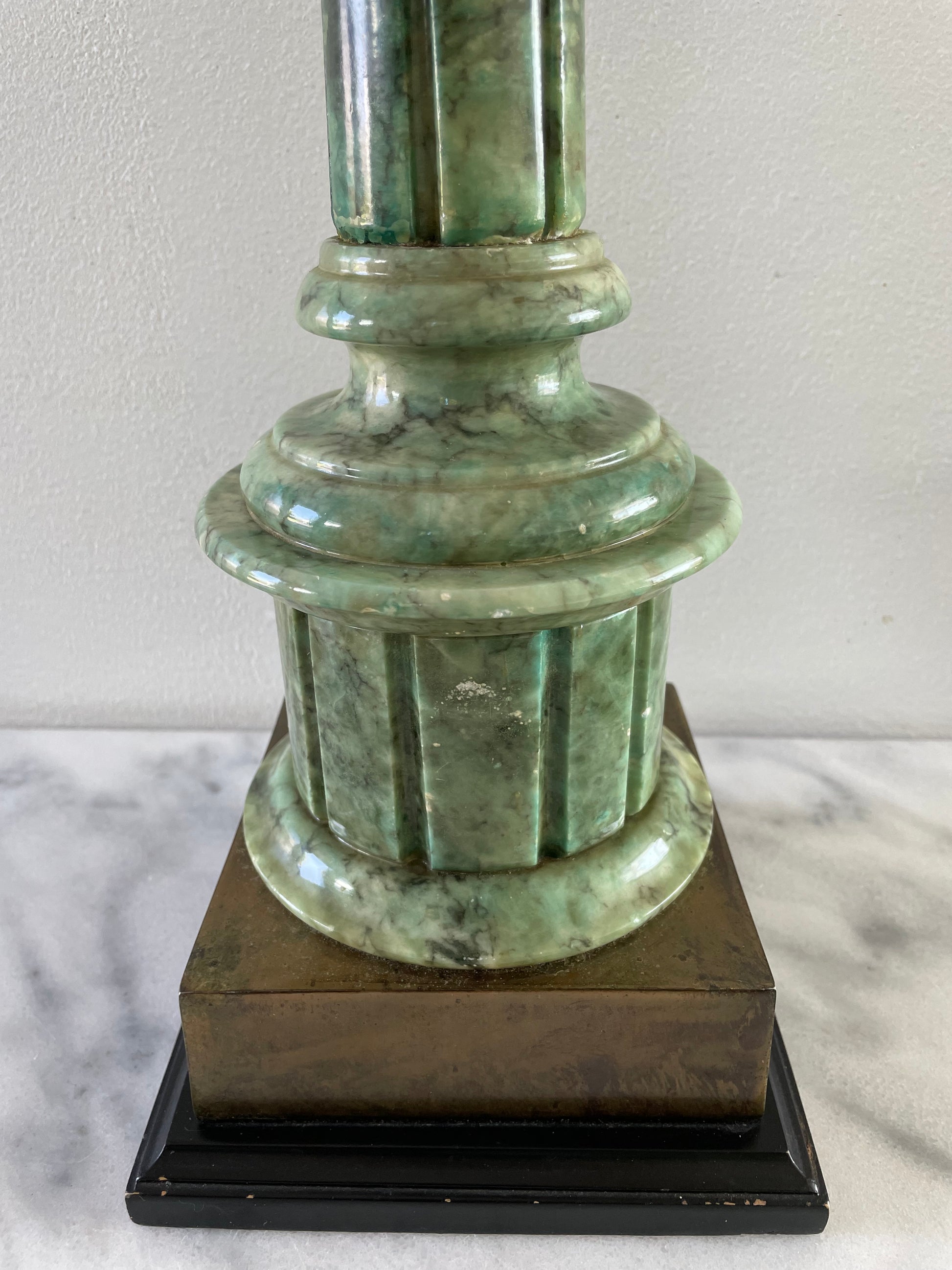 1940s Italian Neoclassic Green Alabaster and Brass Column Table Lamp