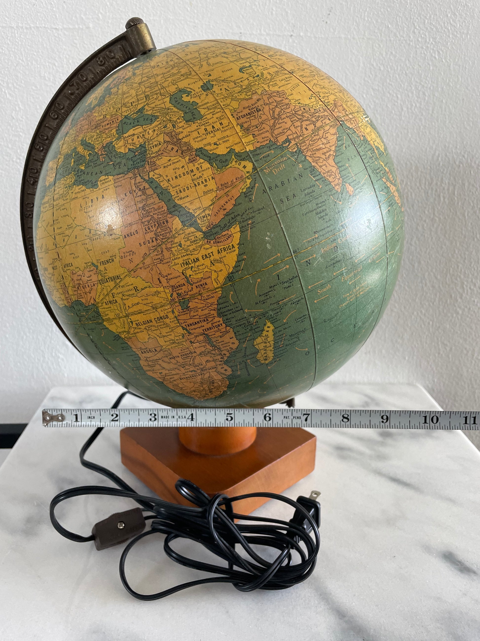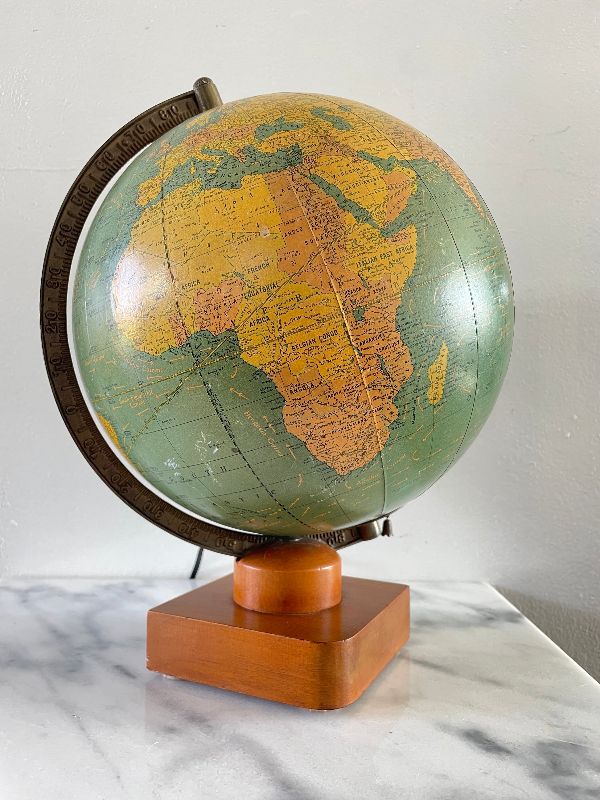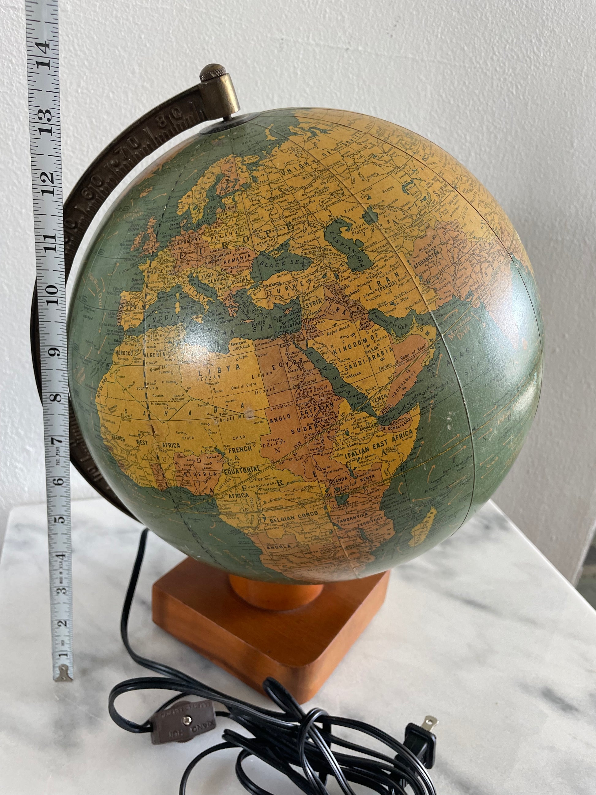 1941 George F Cram Terrestrial Glass Illuminated Globe