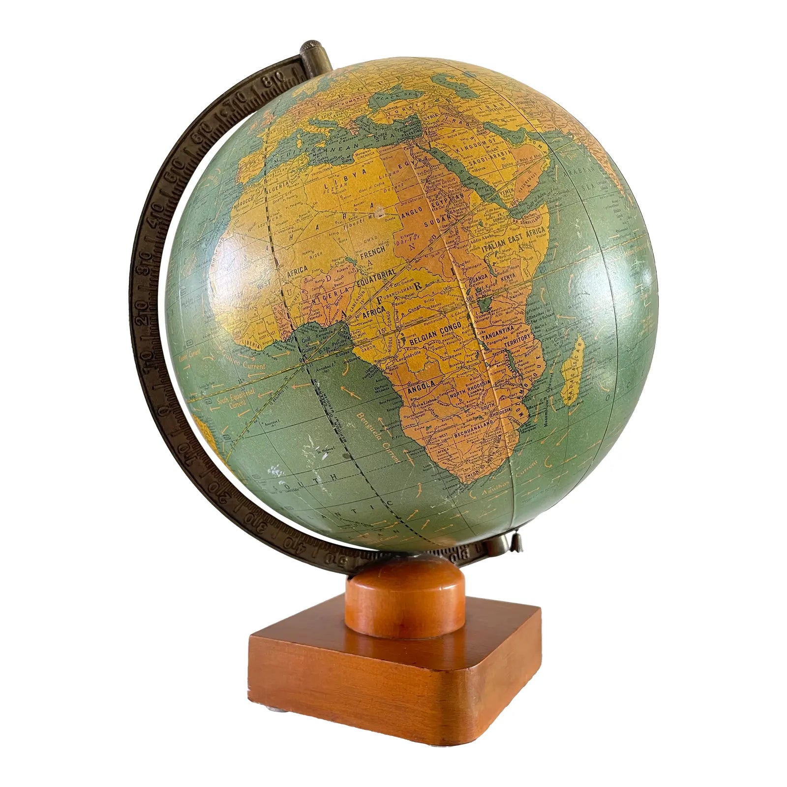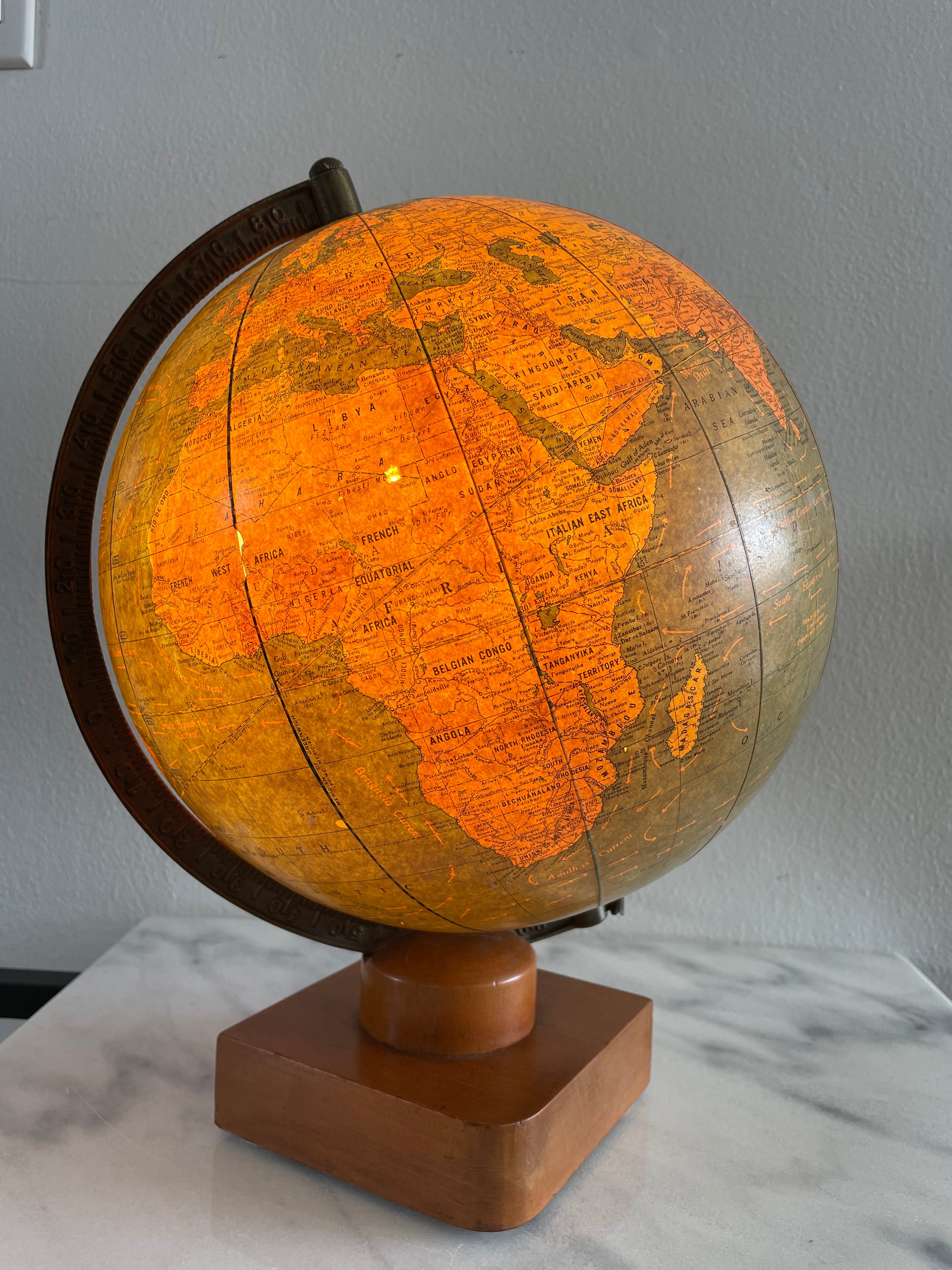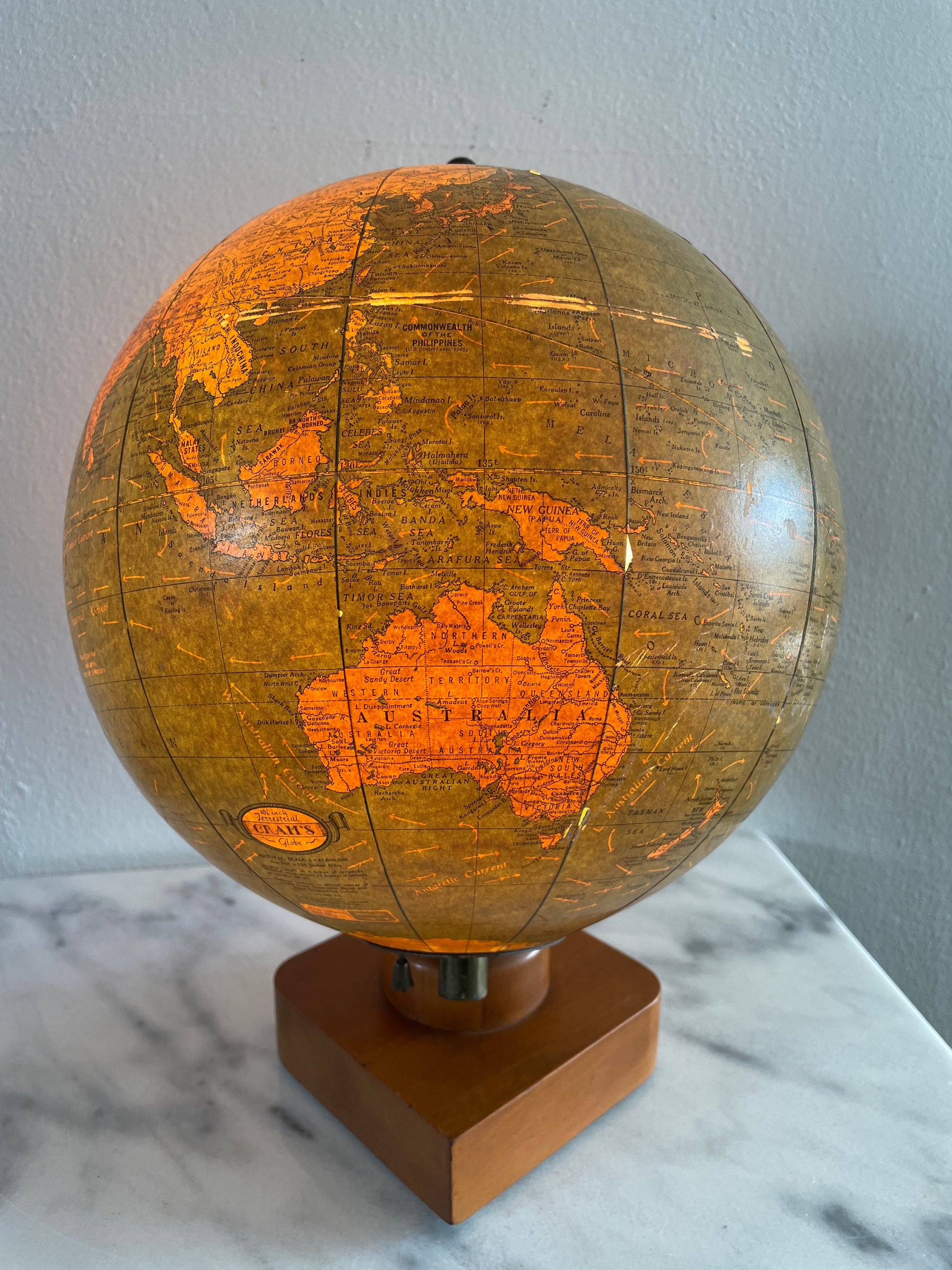 1941 George F Cram Terrestrial Glass Illuminated Globe