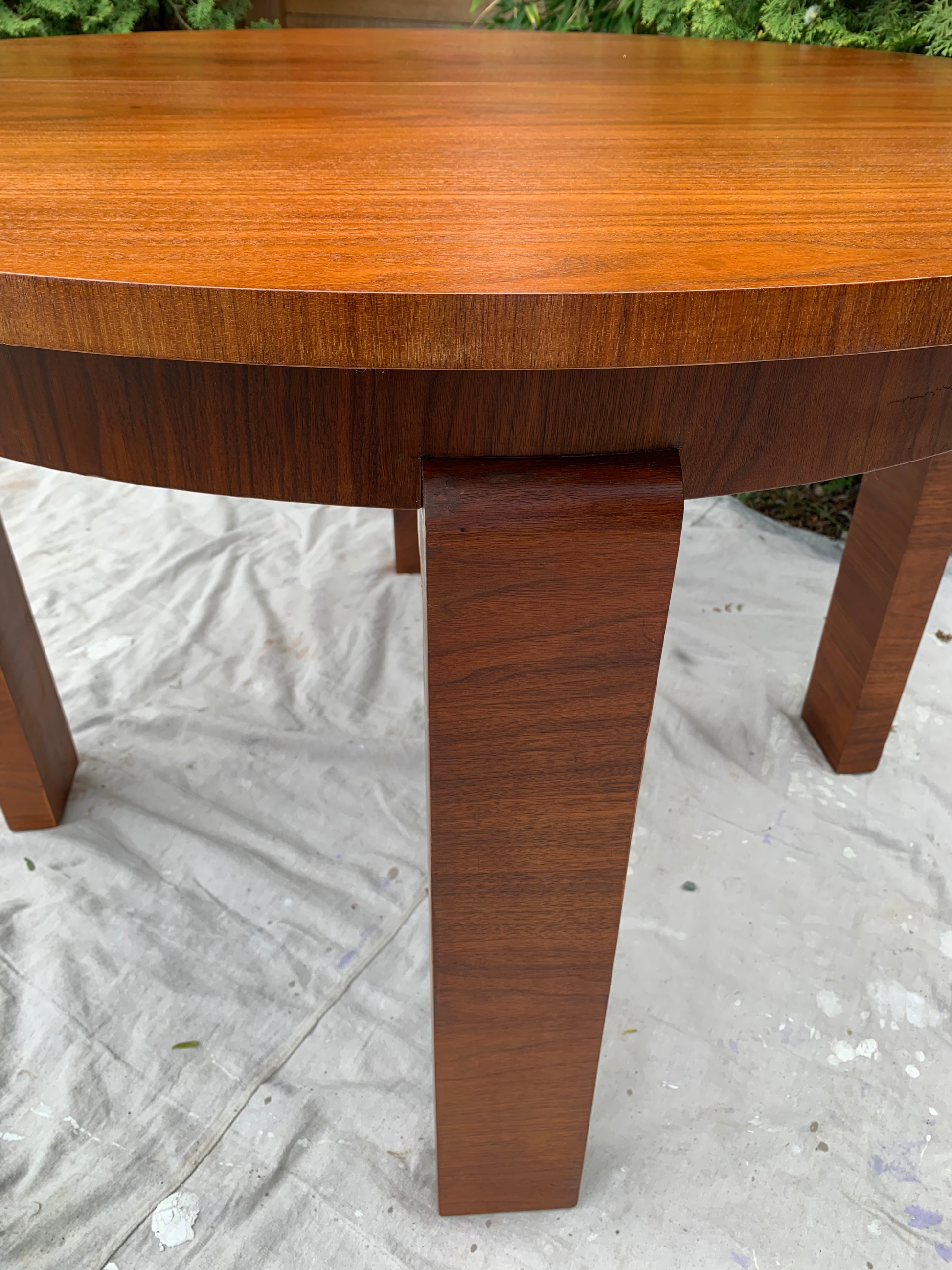 1950s Art Deco Style Circular Expandable Walnut Dining Table With Waterfall Leg