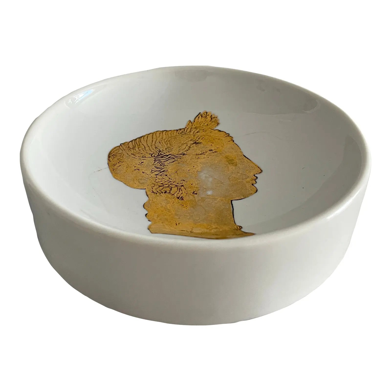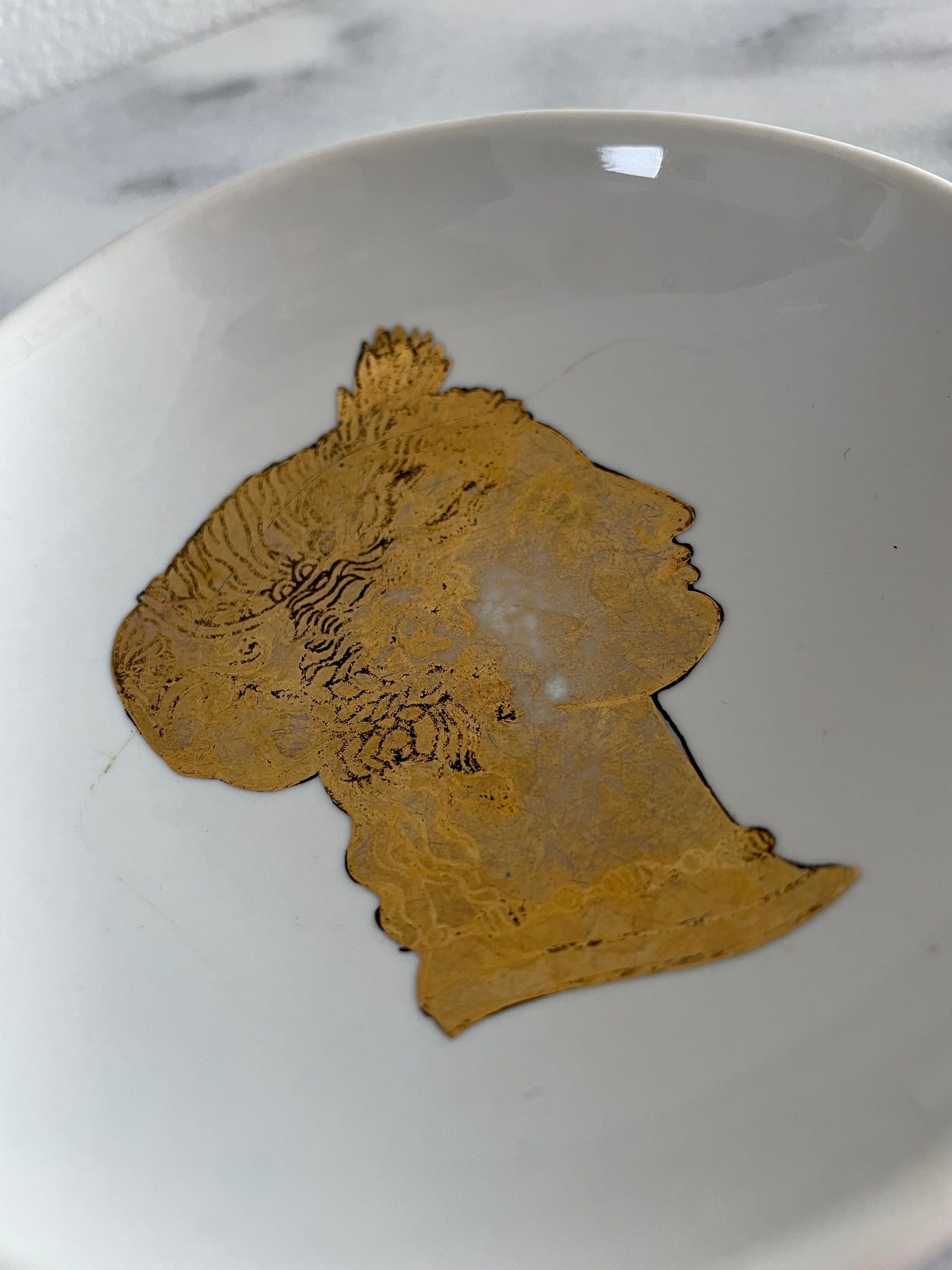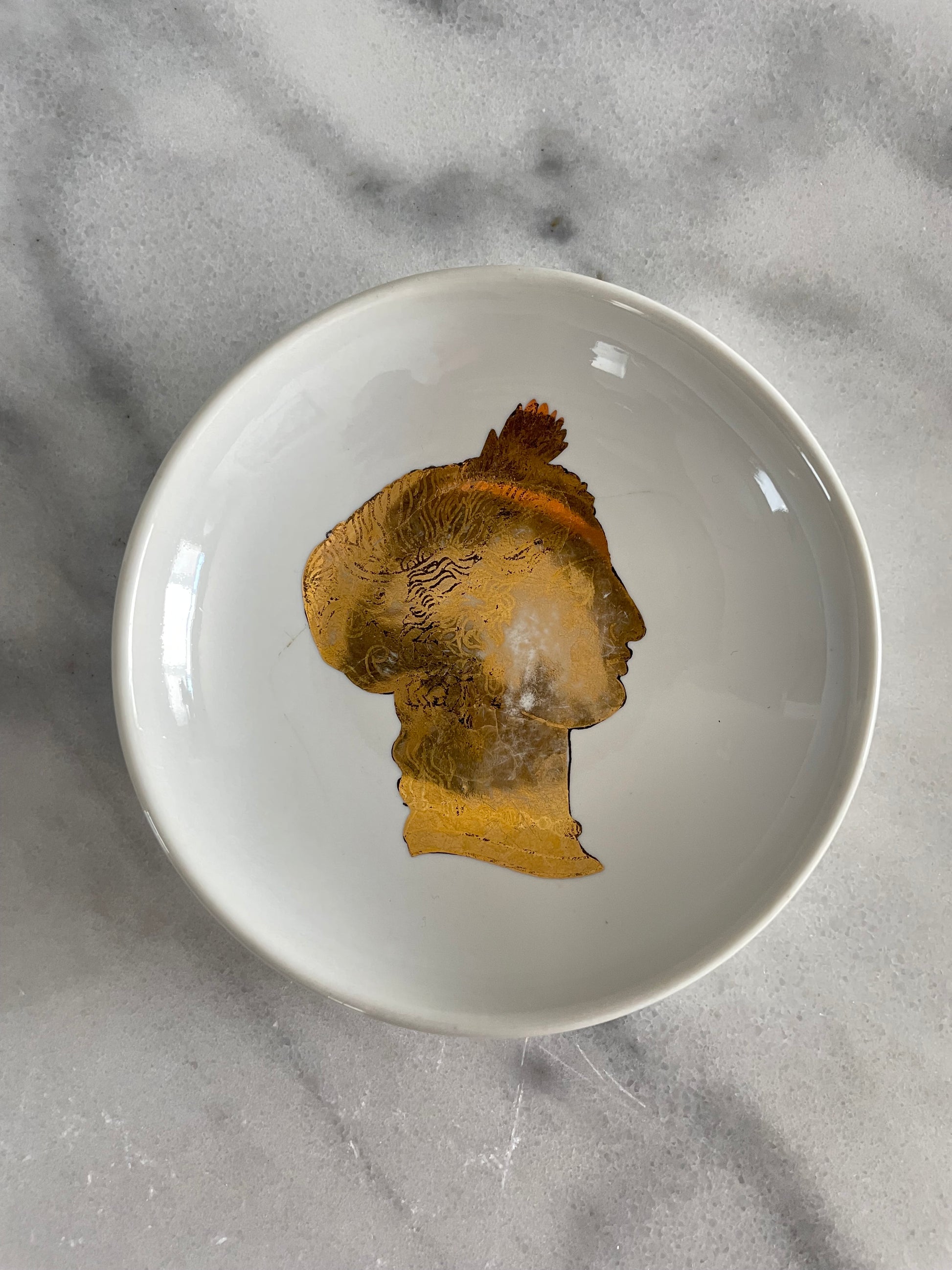 1950s Piero Fornasetti Italian Porcelain Circular Tray 24k Gold Greek Silohuette