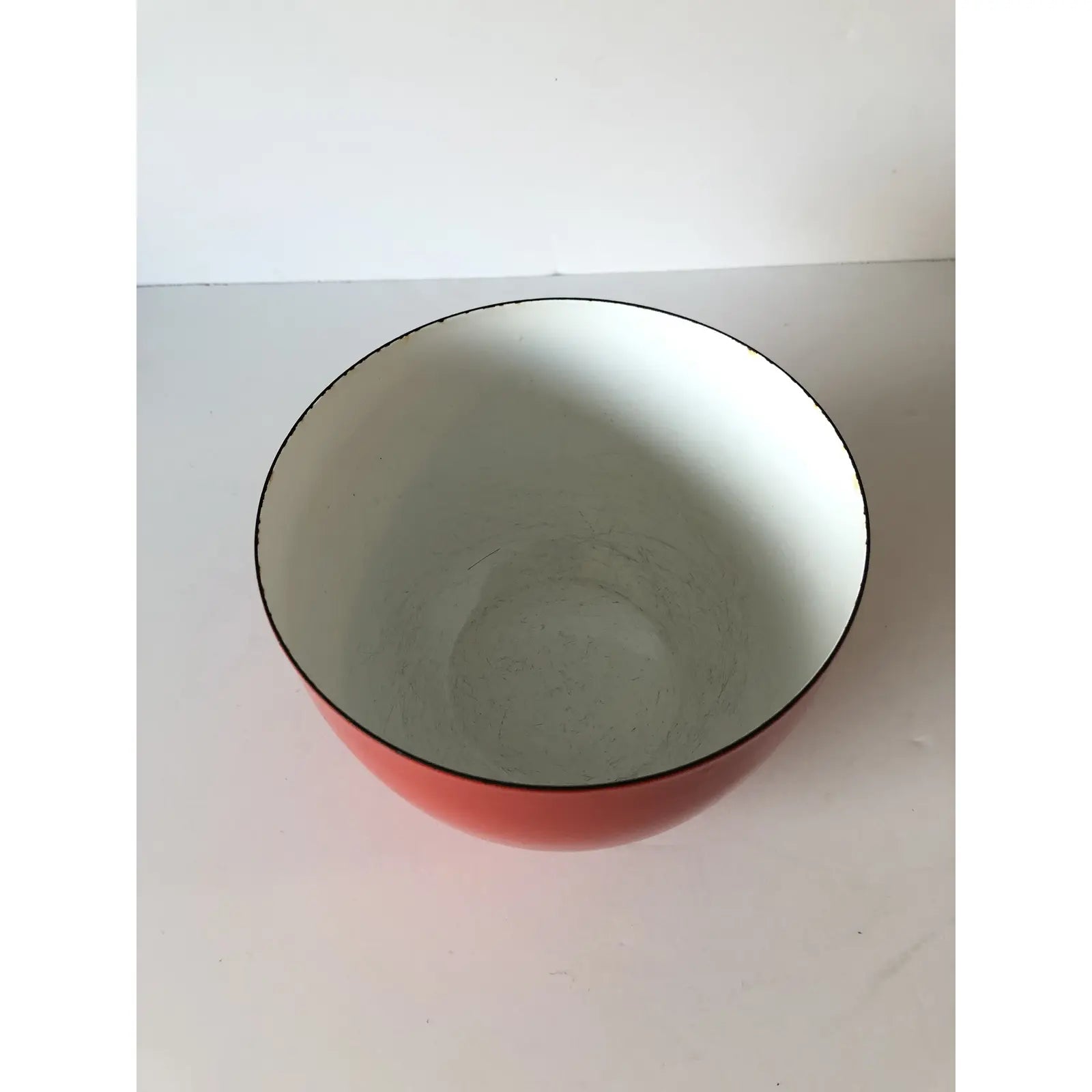 1960s Kaj Franck l Enamel Danish Modern Red and White Bowl