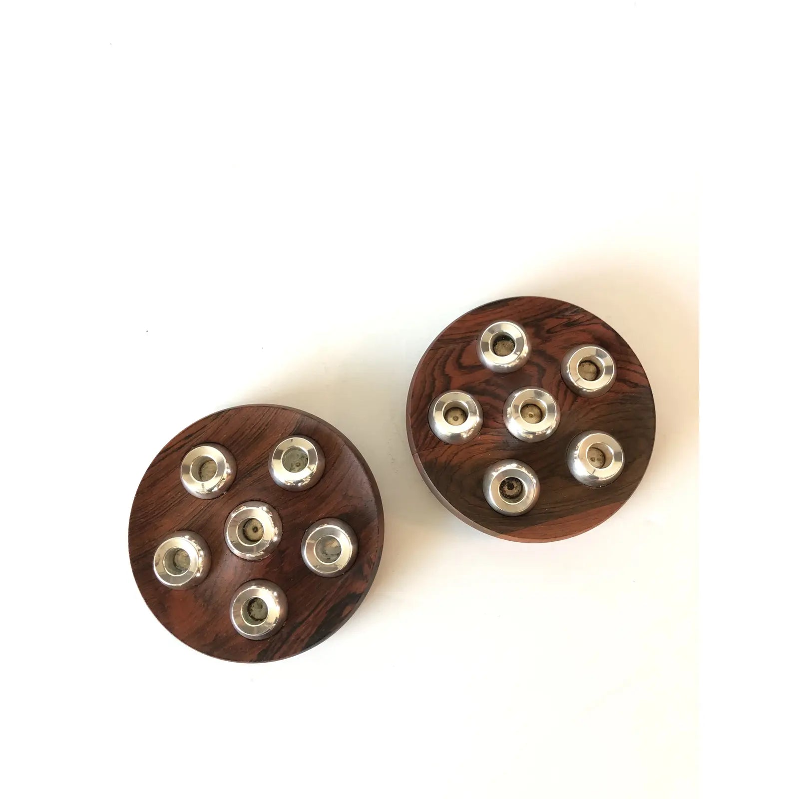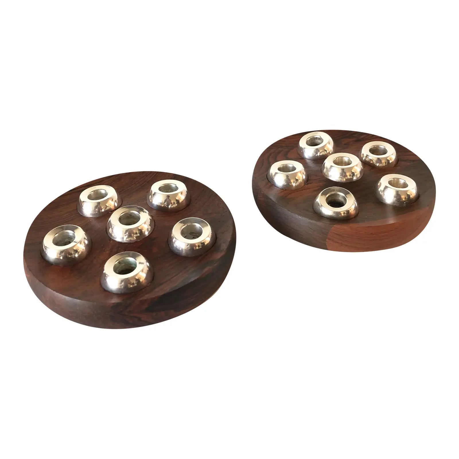 1960s Mid-Century Modern Nissen Rosewood Silverplate Taper Candle Holders, Denmark- a Pair