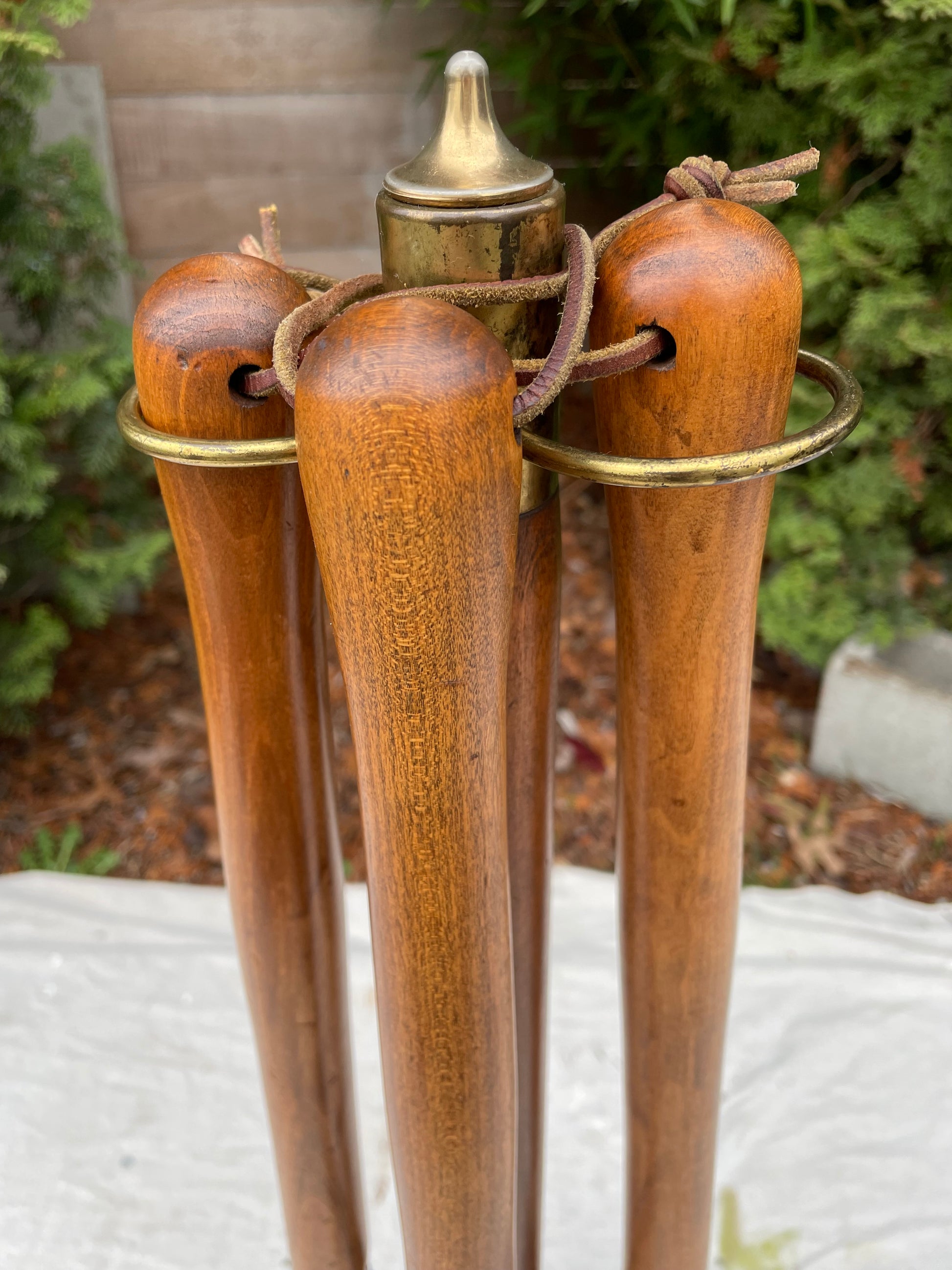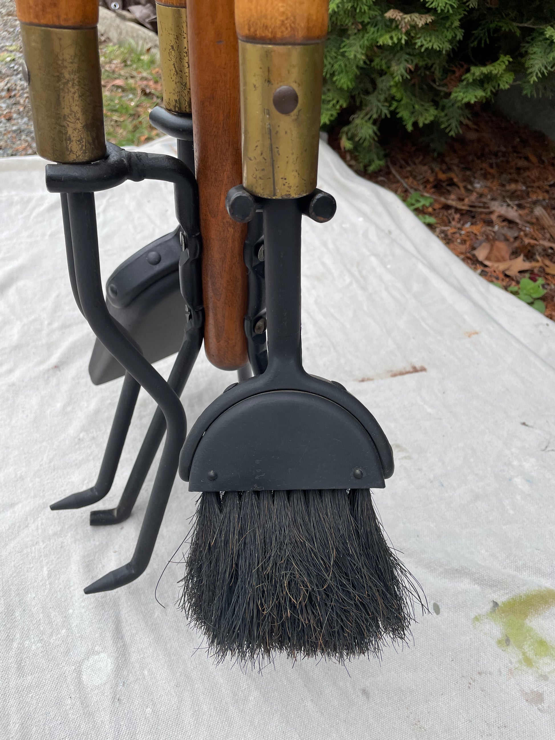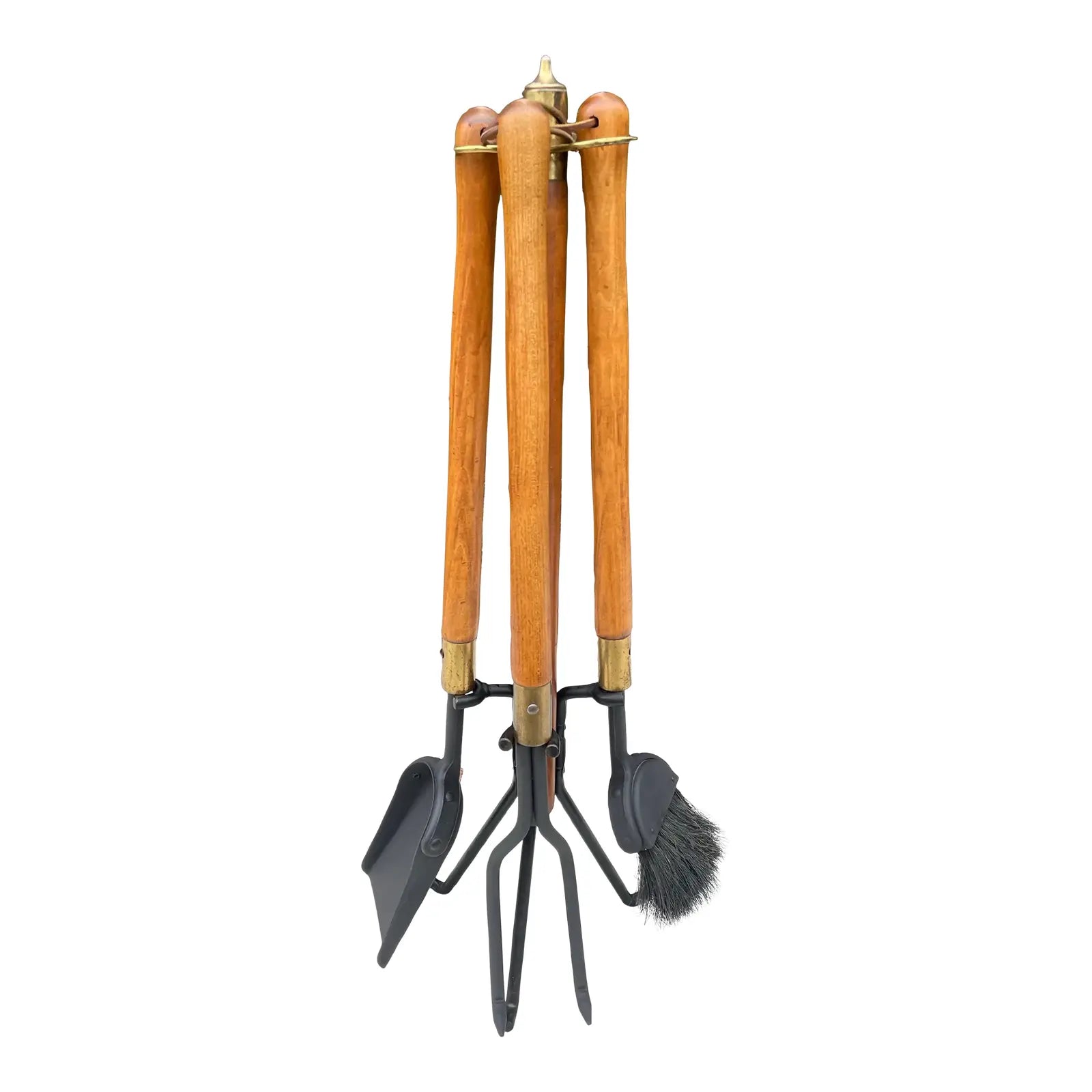 1960s Seymour Mid-Century Modern Long Wood Handle Fireplace Tool Set - 4 Pieces