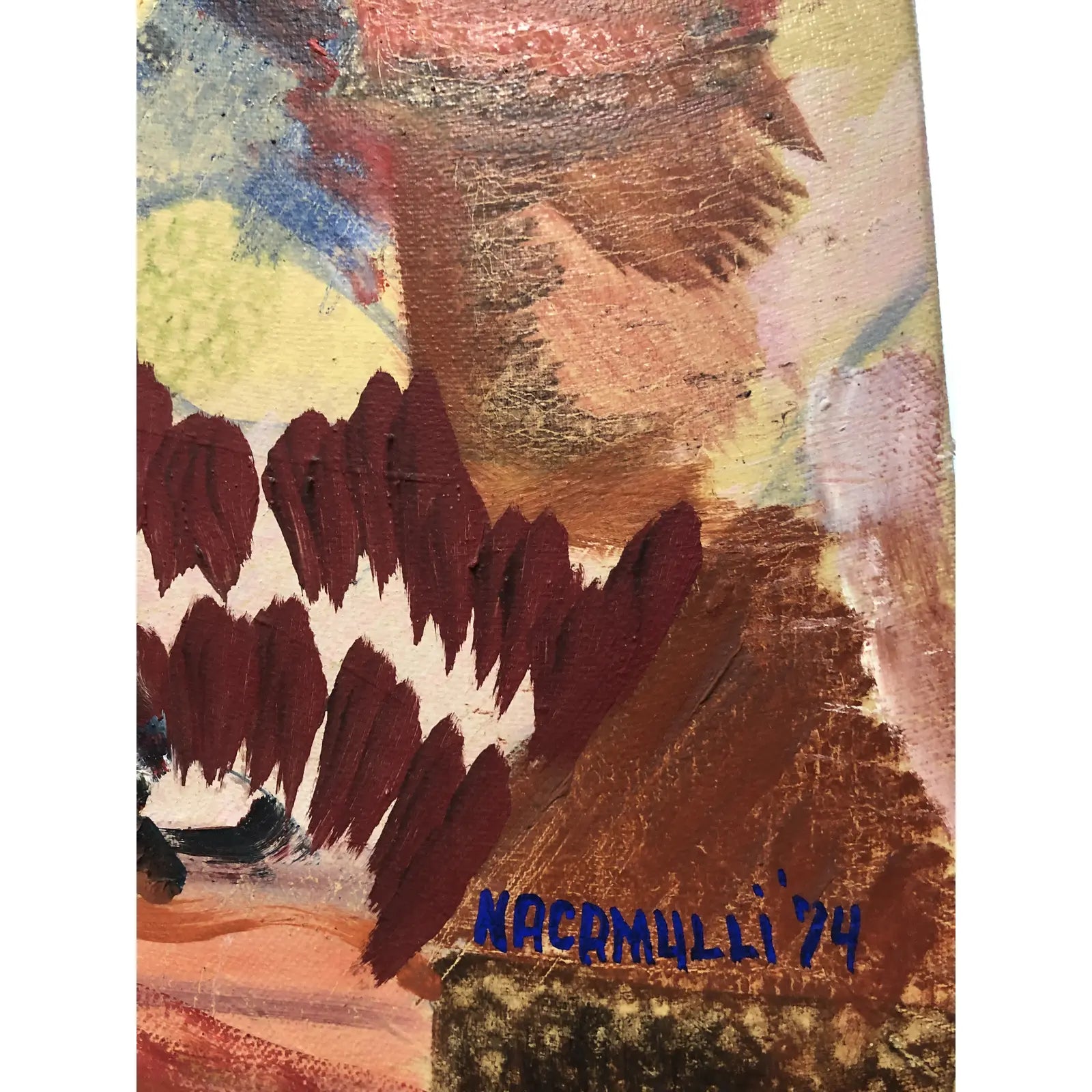 1970s Bohemian Figurative Oil Painting Signed Nacamulli