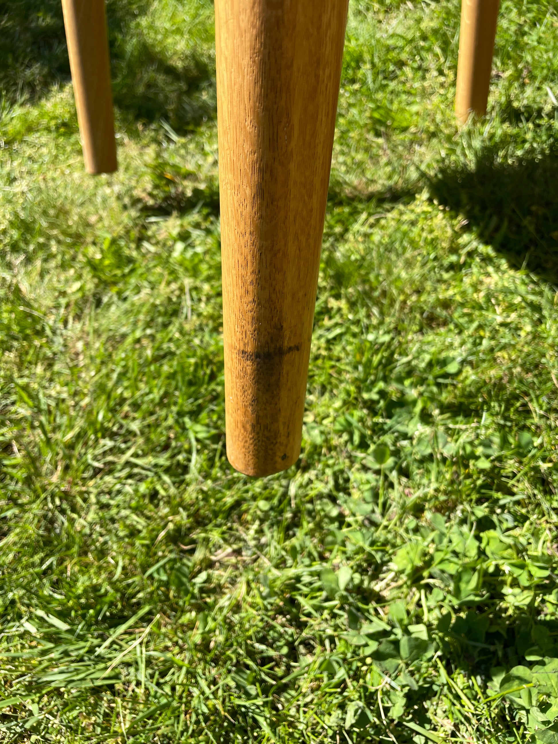 Good condition. Wear consistent with age and use. New Fabric May be desired, some light spotting here and there. Chairs are in beautiful condition otherwise with minor wear around bottom of legs. See photos*