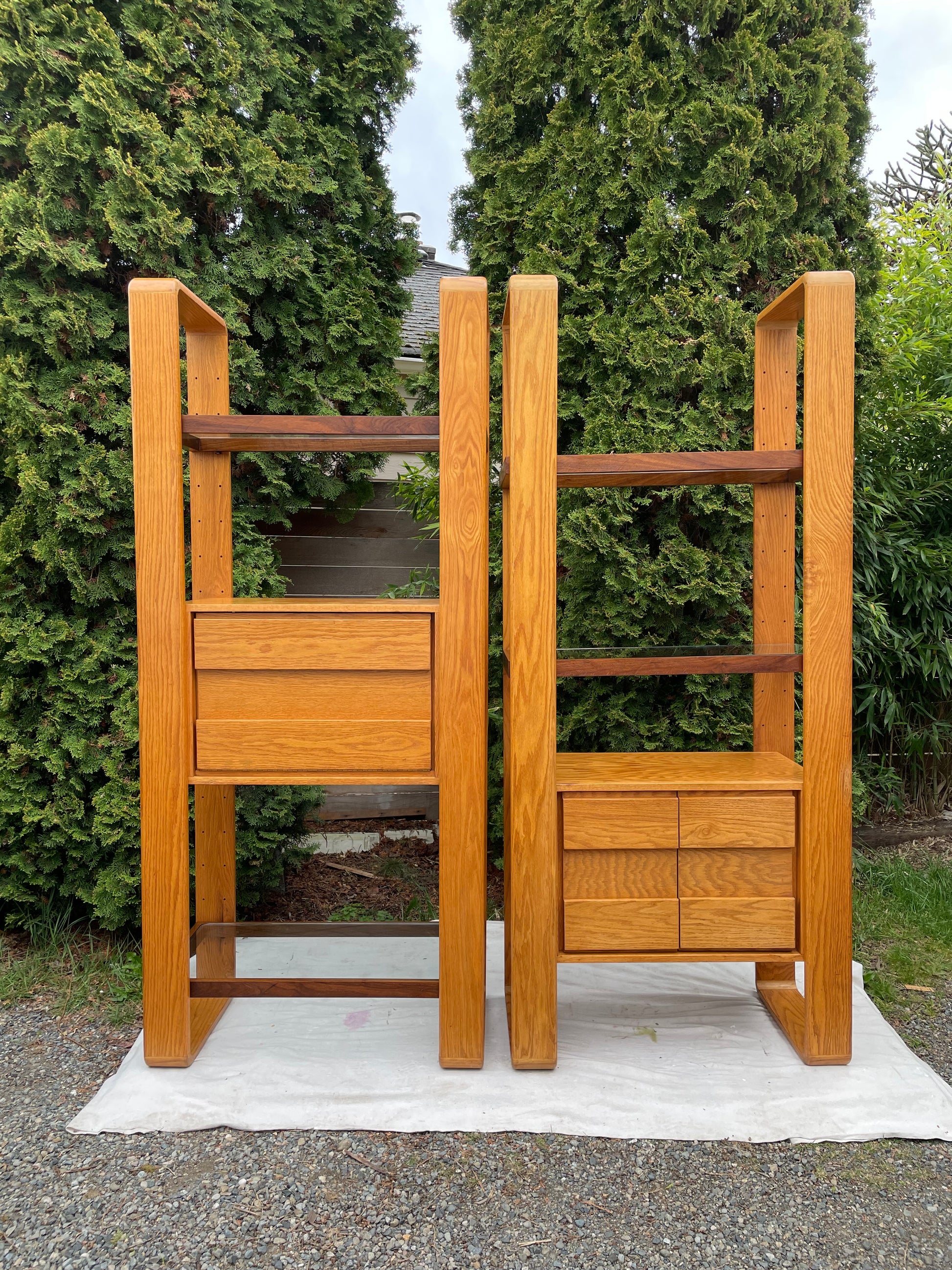 1970s Lou Hodges for California Design Group Oak & Walnut Modular Wall Unit Shelving or Room Divider