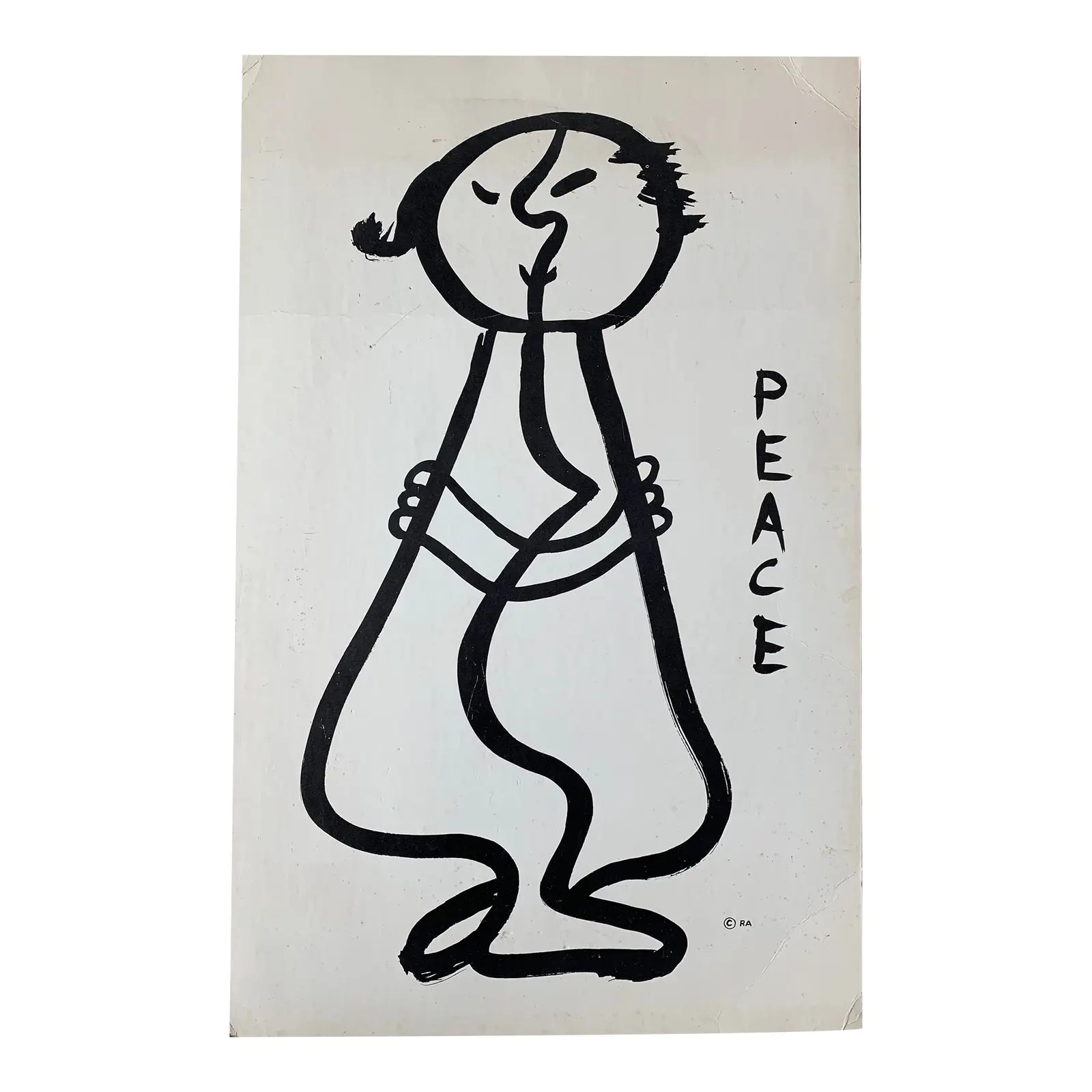 1970s "Peace" Boho Chic Abstract Figurative Poster