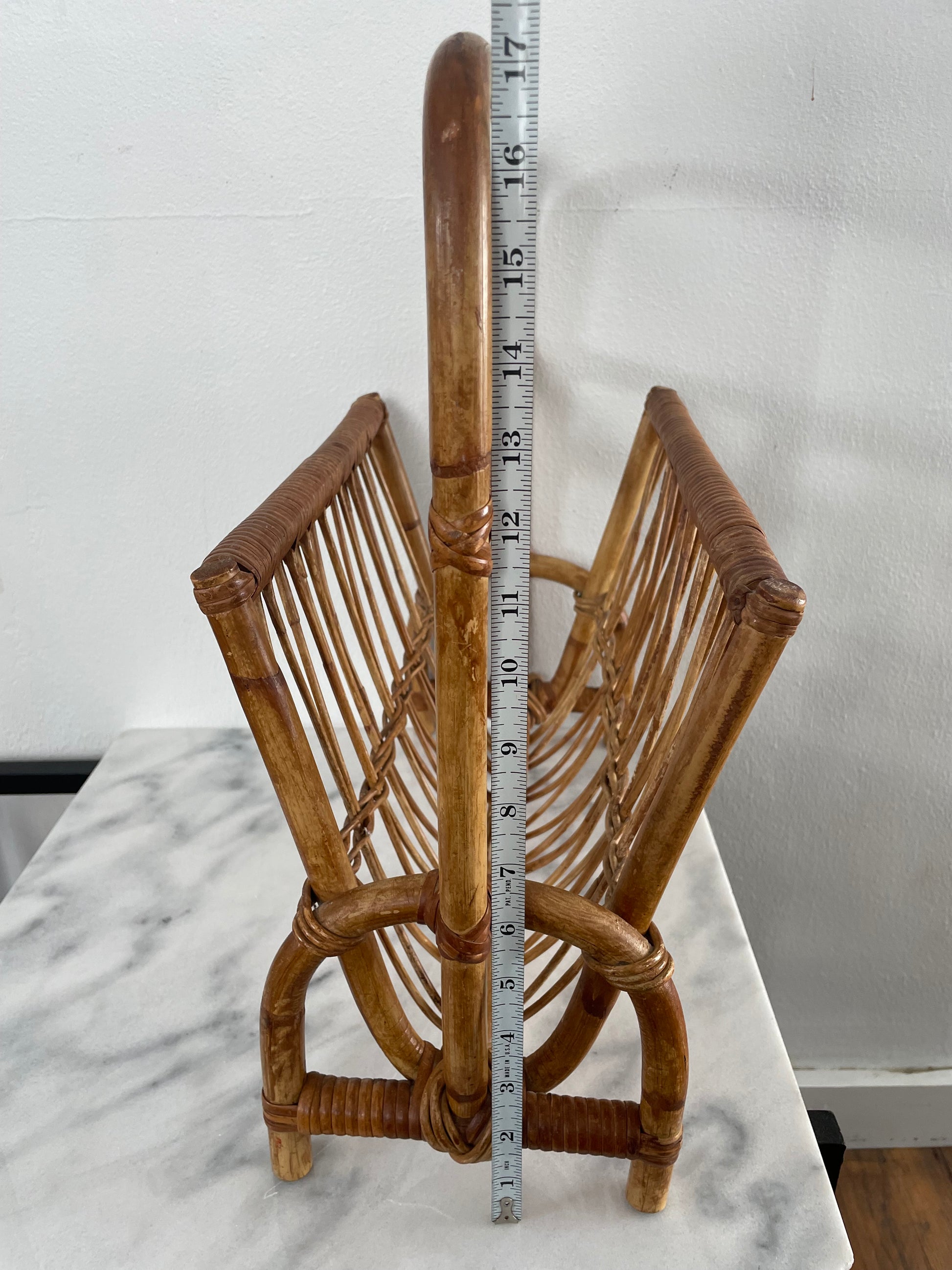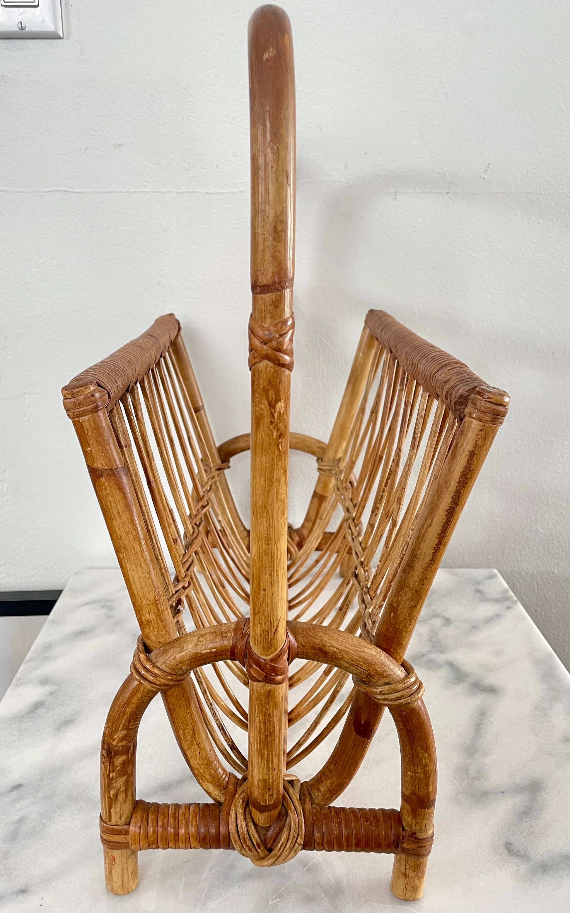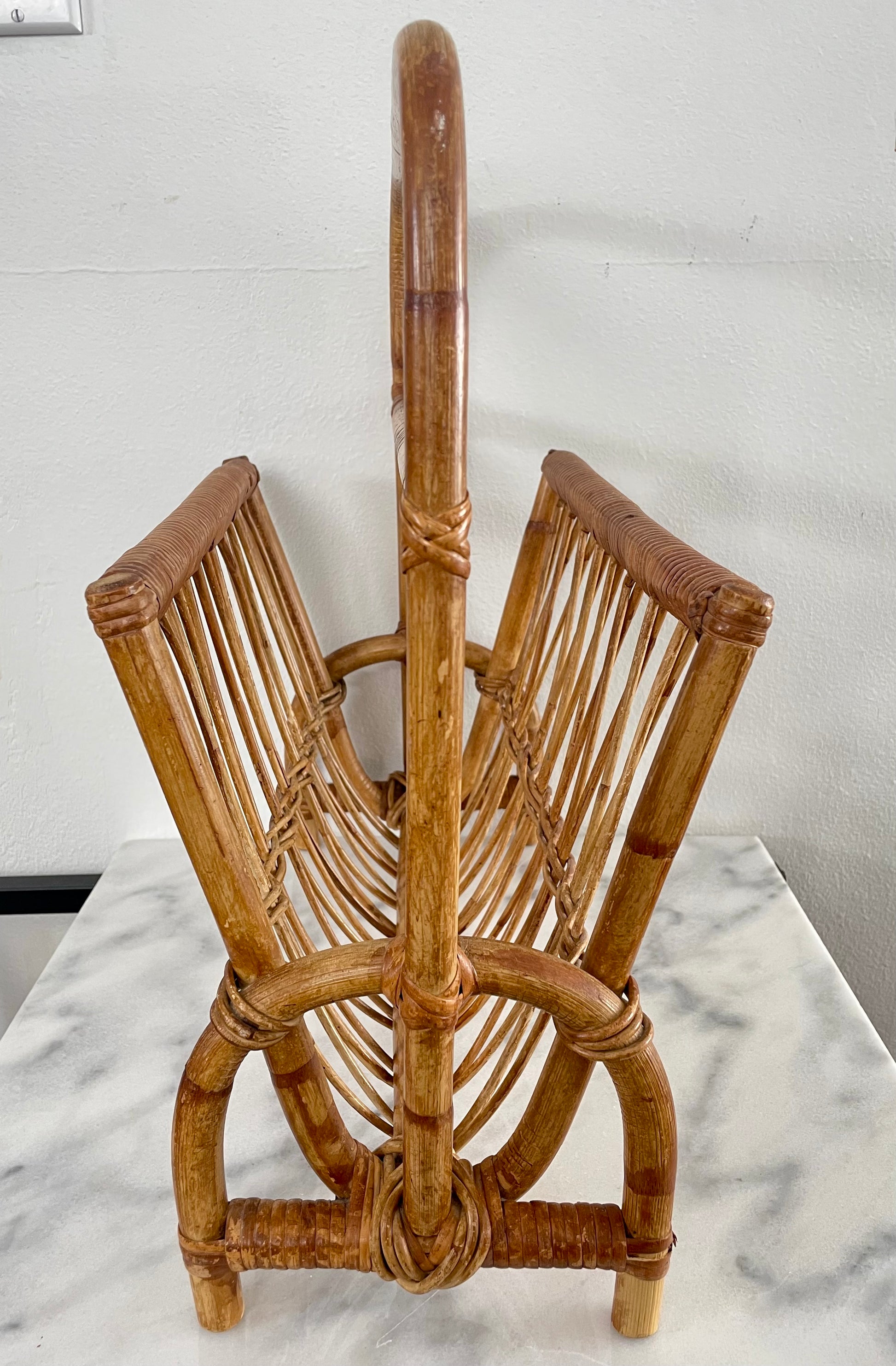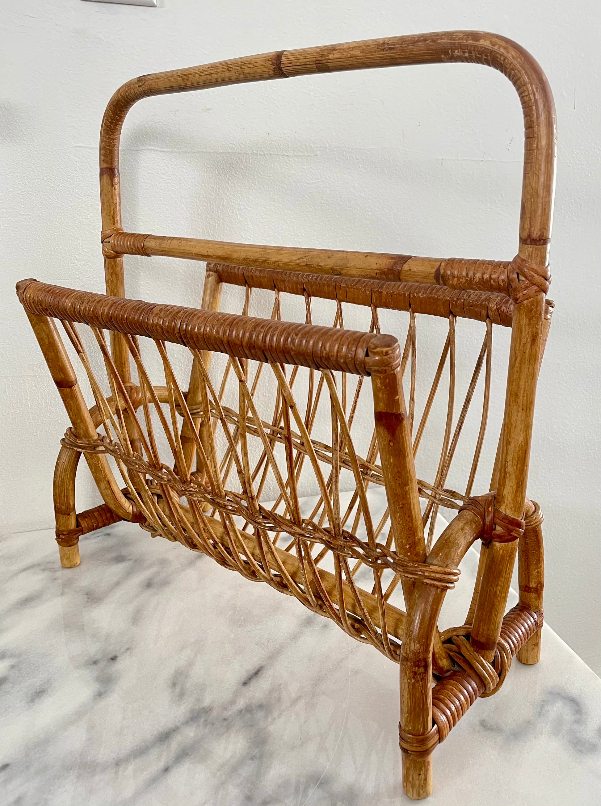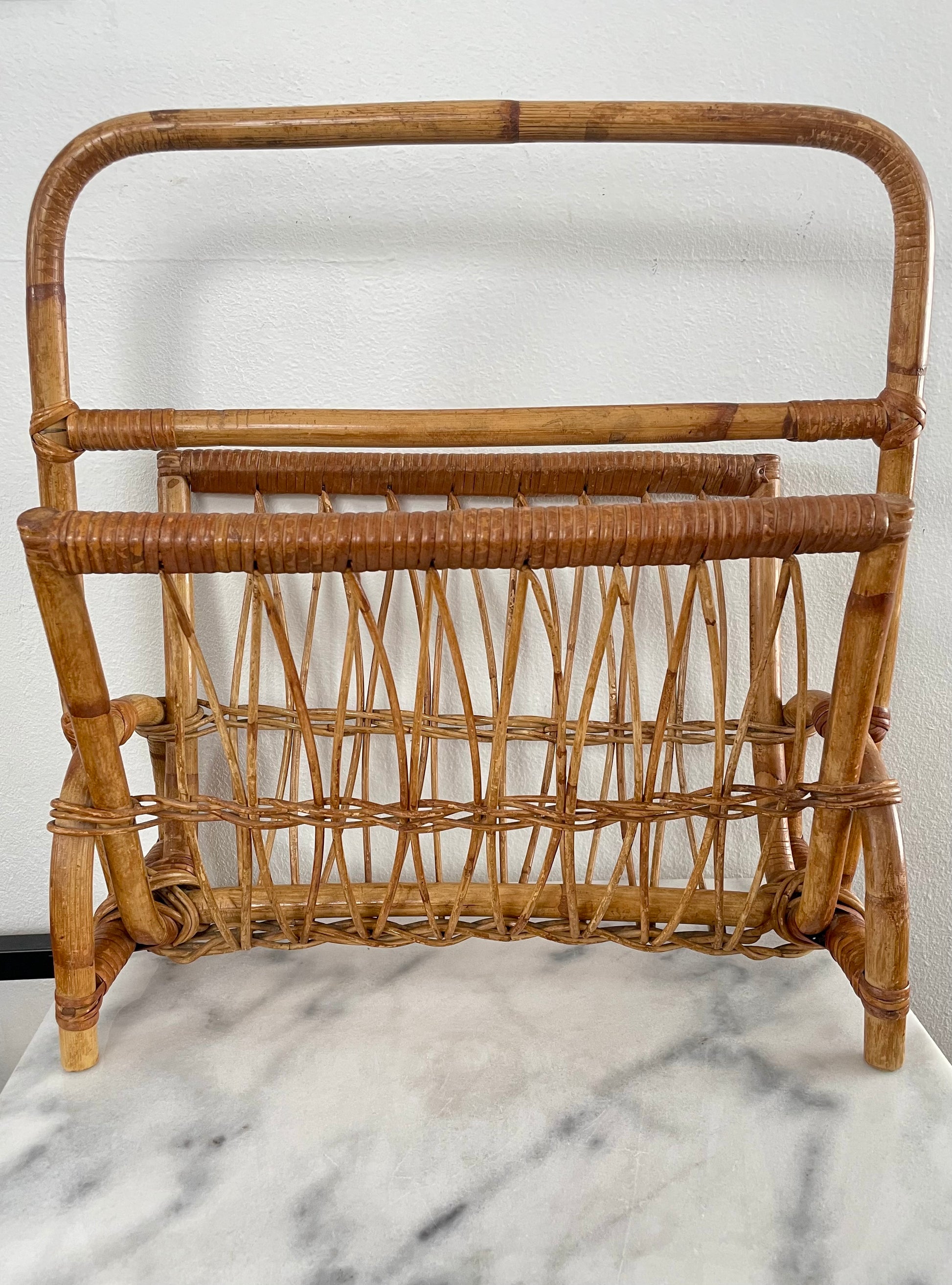 1970s Vintage Franco Albini Style Rattan Bamboo Magazine Rack