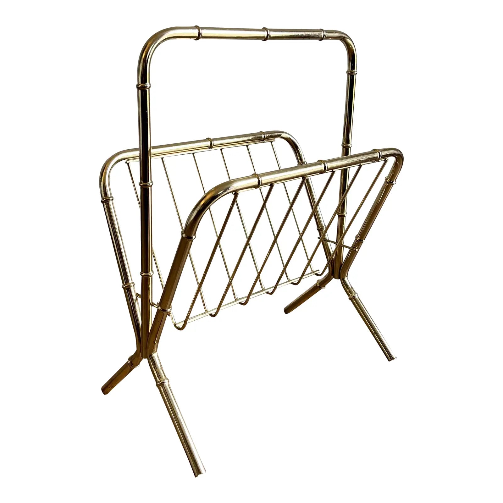 1970s Vintage Hollywood Regency Style Mid-Century Modern Brass Bamboo Magazine