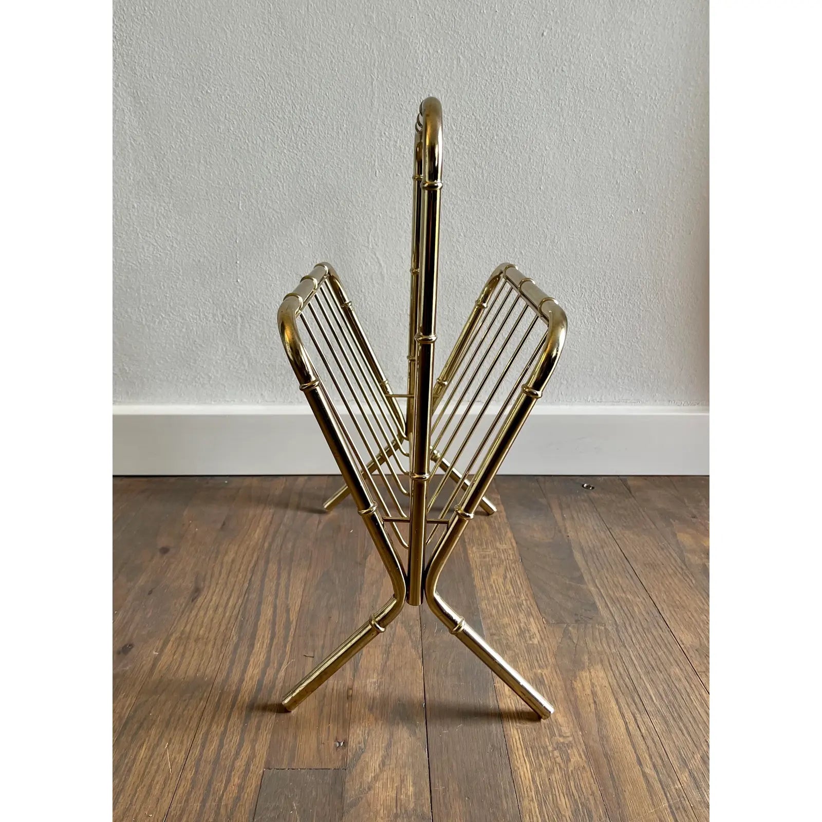 Classy Hollywood Regency style brass bamboo holder is great for books, magazines, bags and even wood next to a chic fireplace. Truly a versatile piece that adds a sparkle to any room.