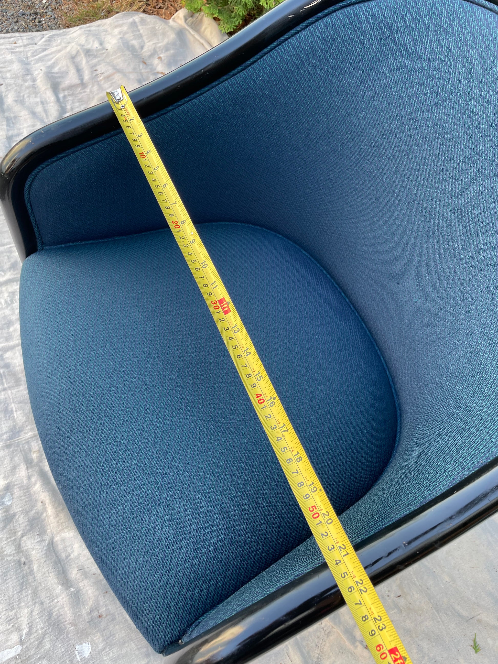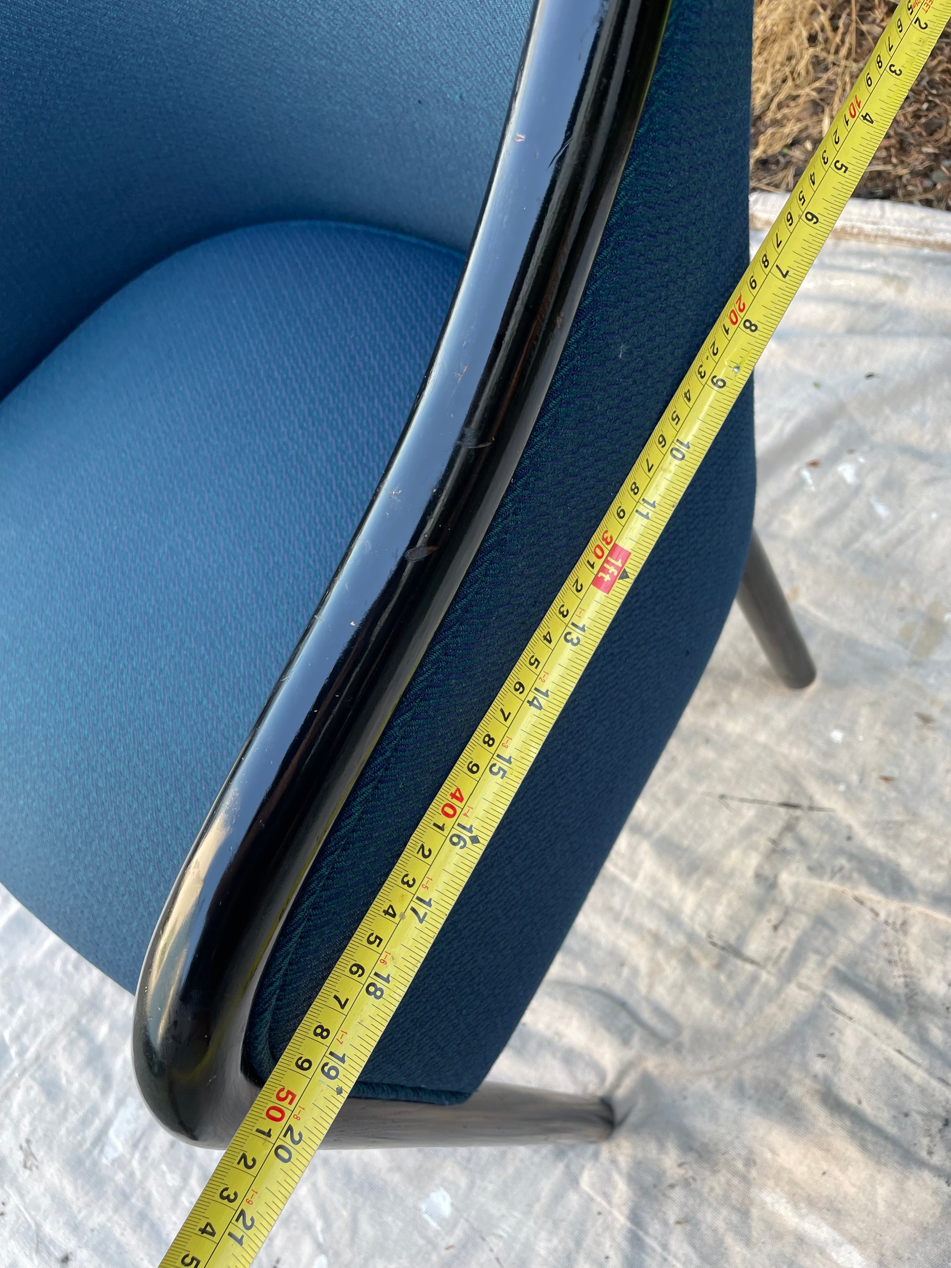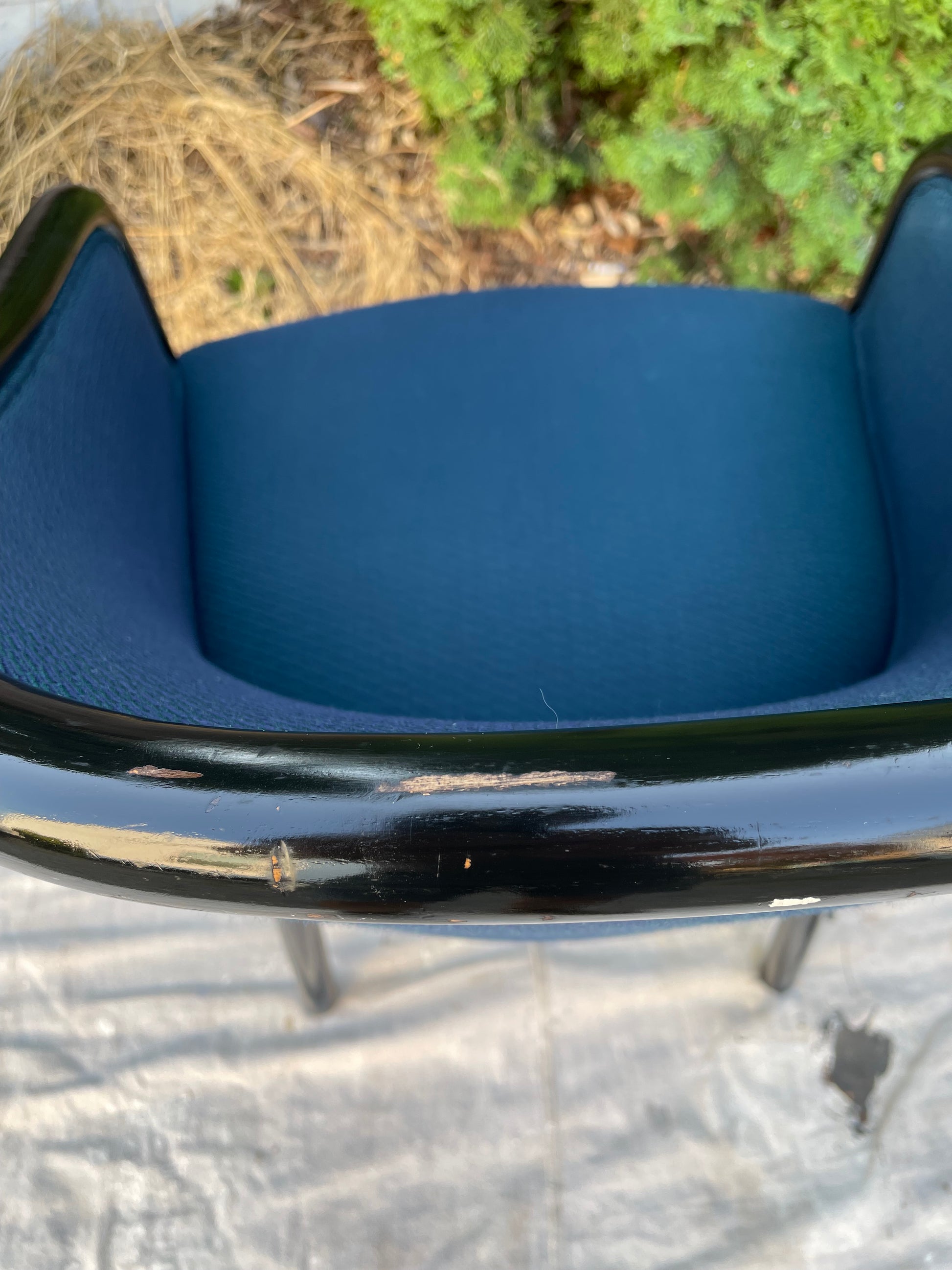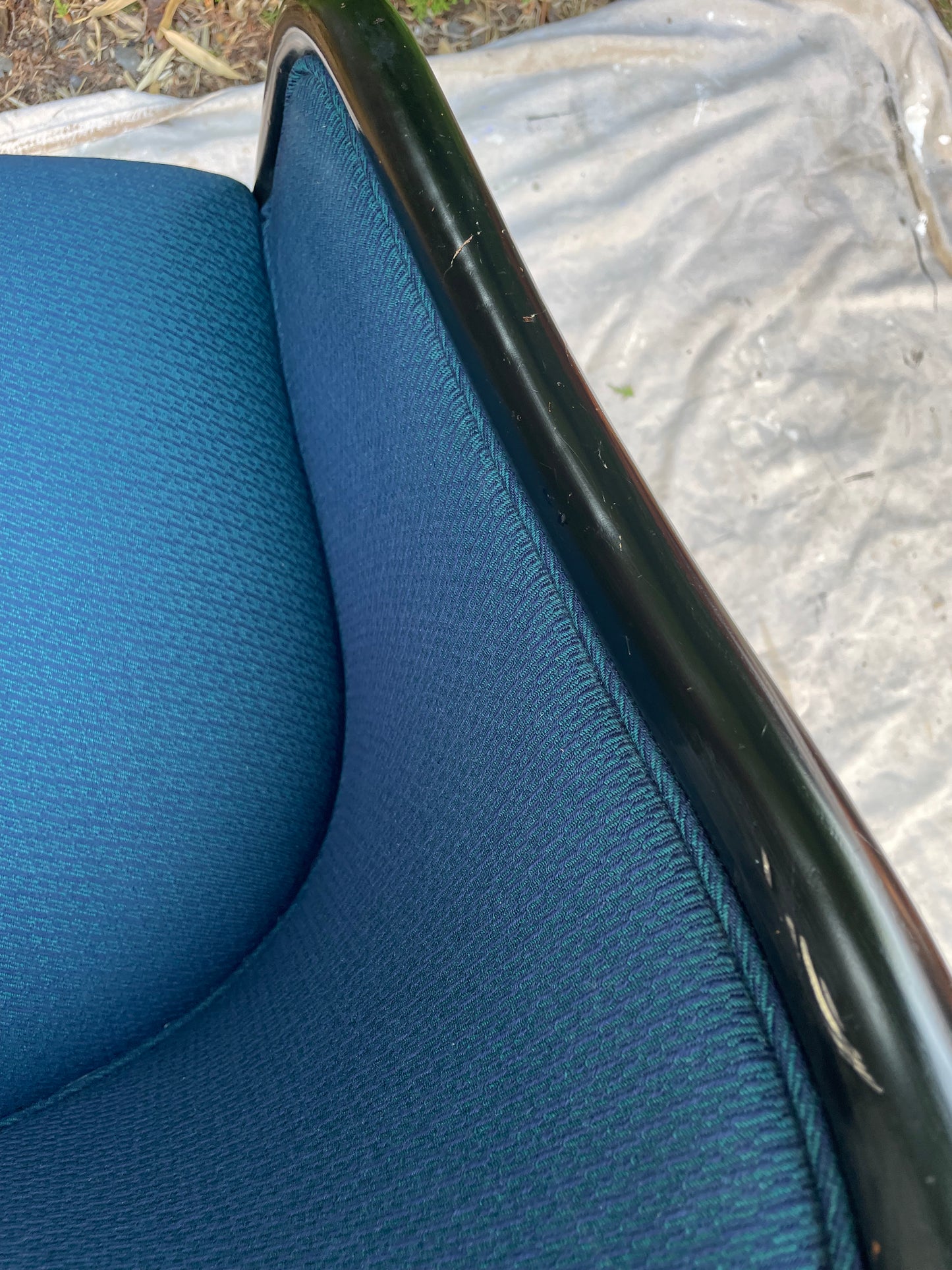Condition Notes: The lacquer has some significant scuffing and scratches as pictured. The upholstery is in good condition, but shows some fading.