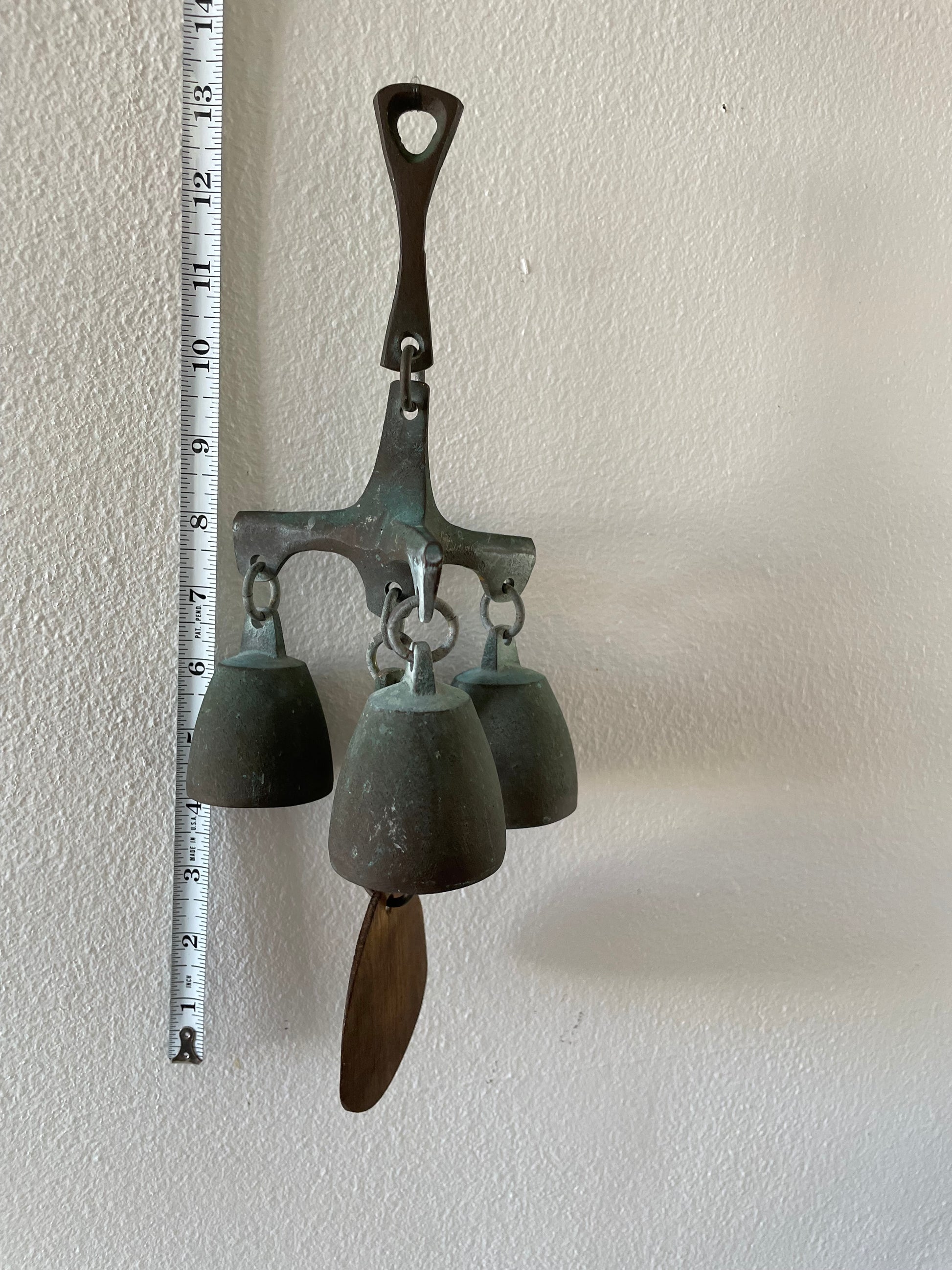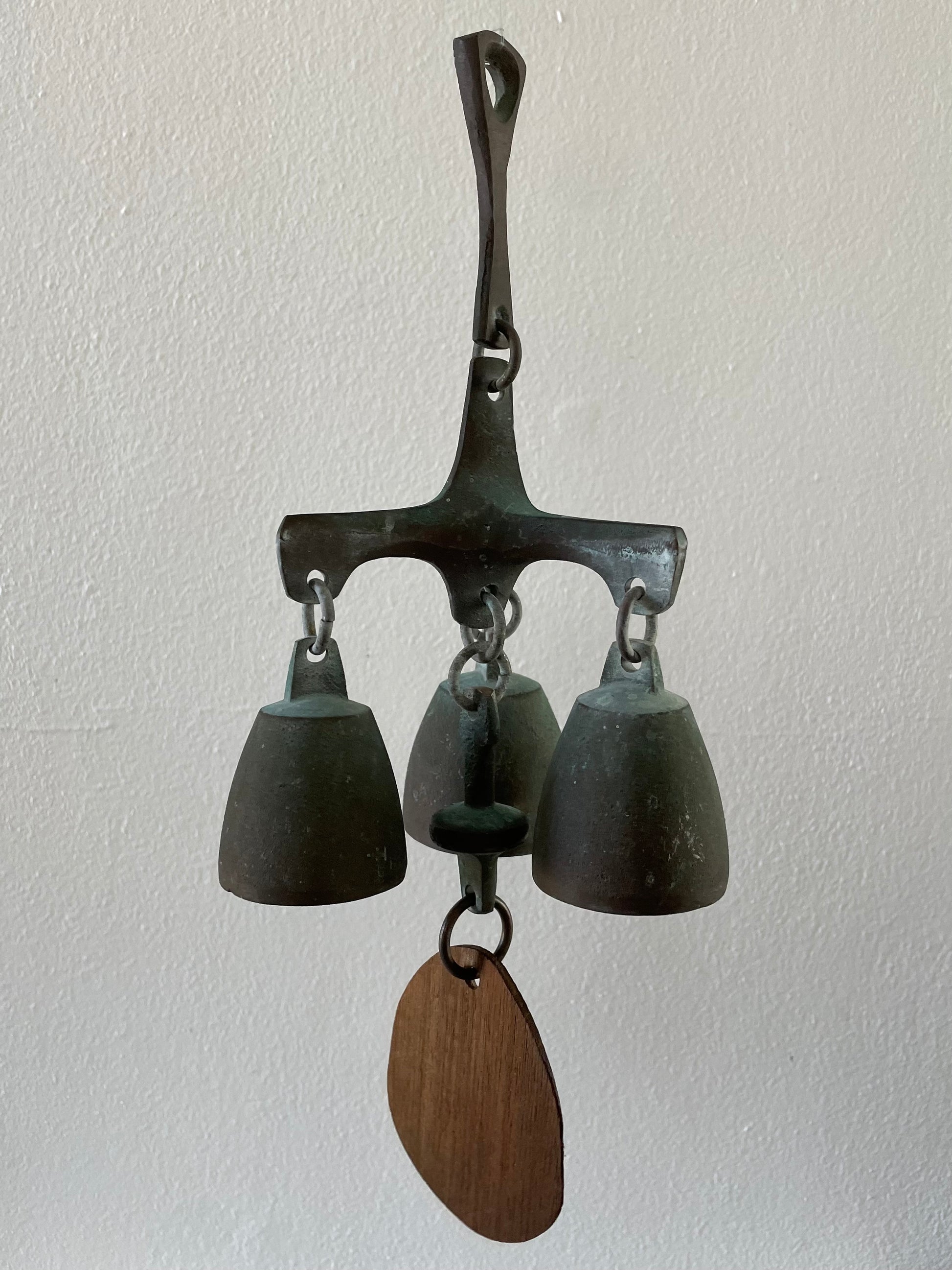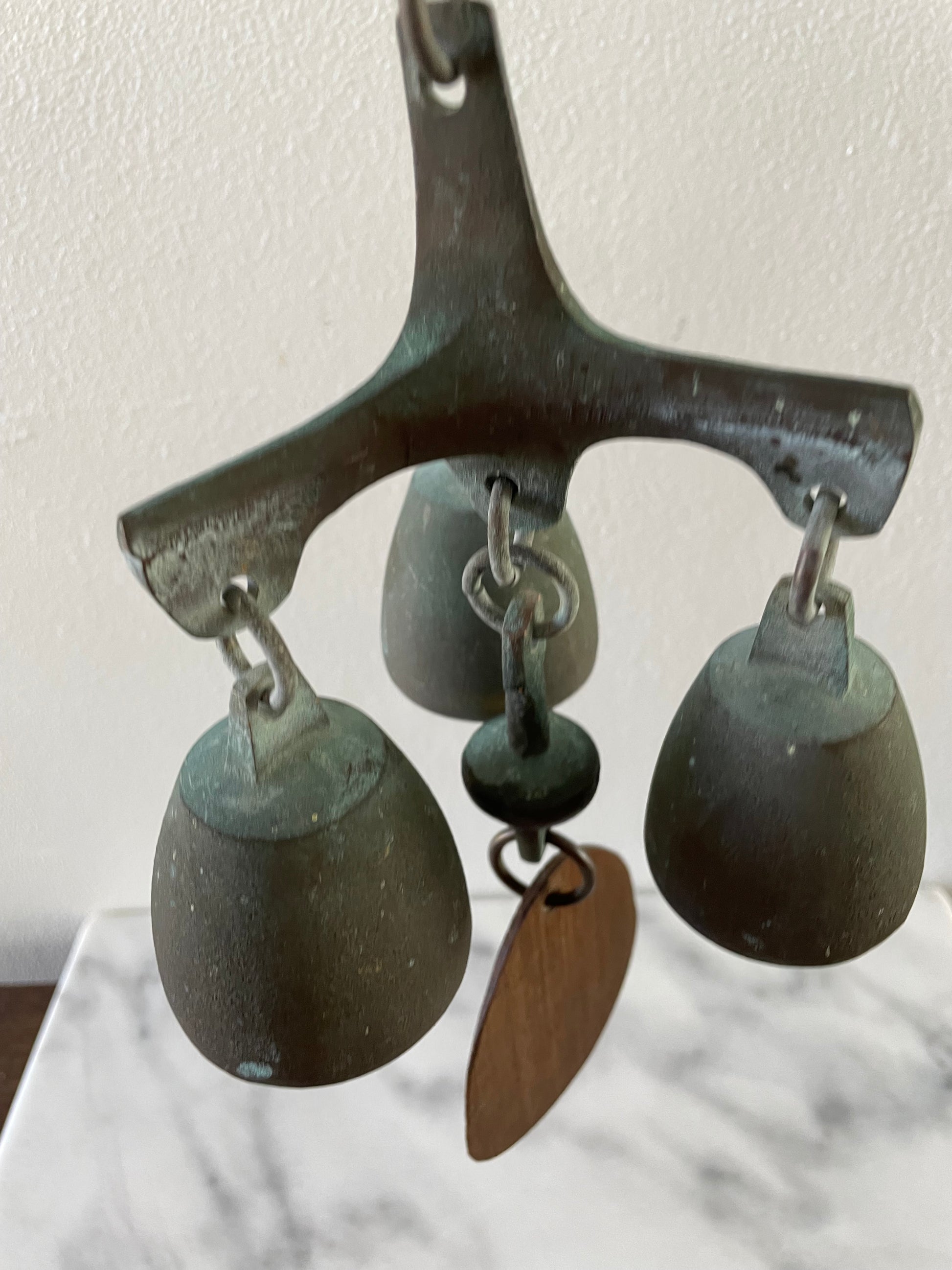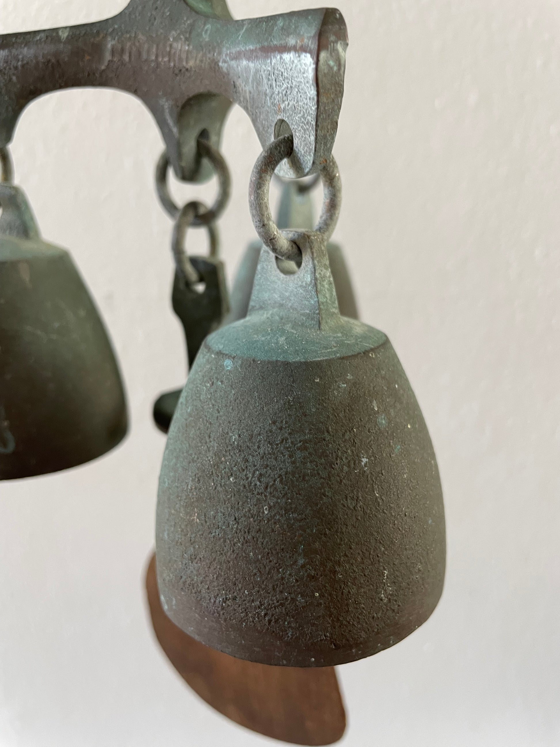 1980s Modern Cast Bronze Triple Wind Bell Chime by Richard Fisher