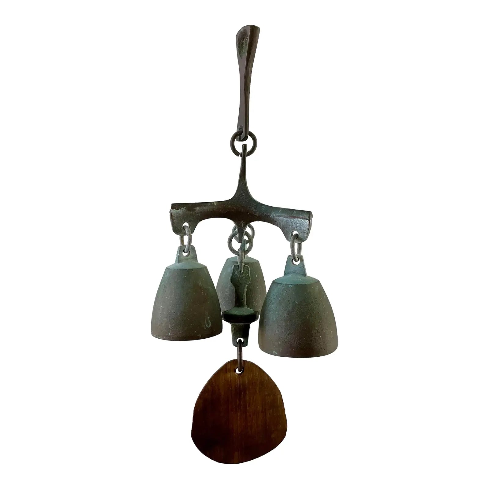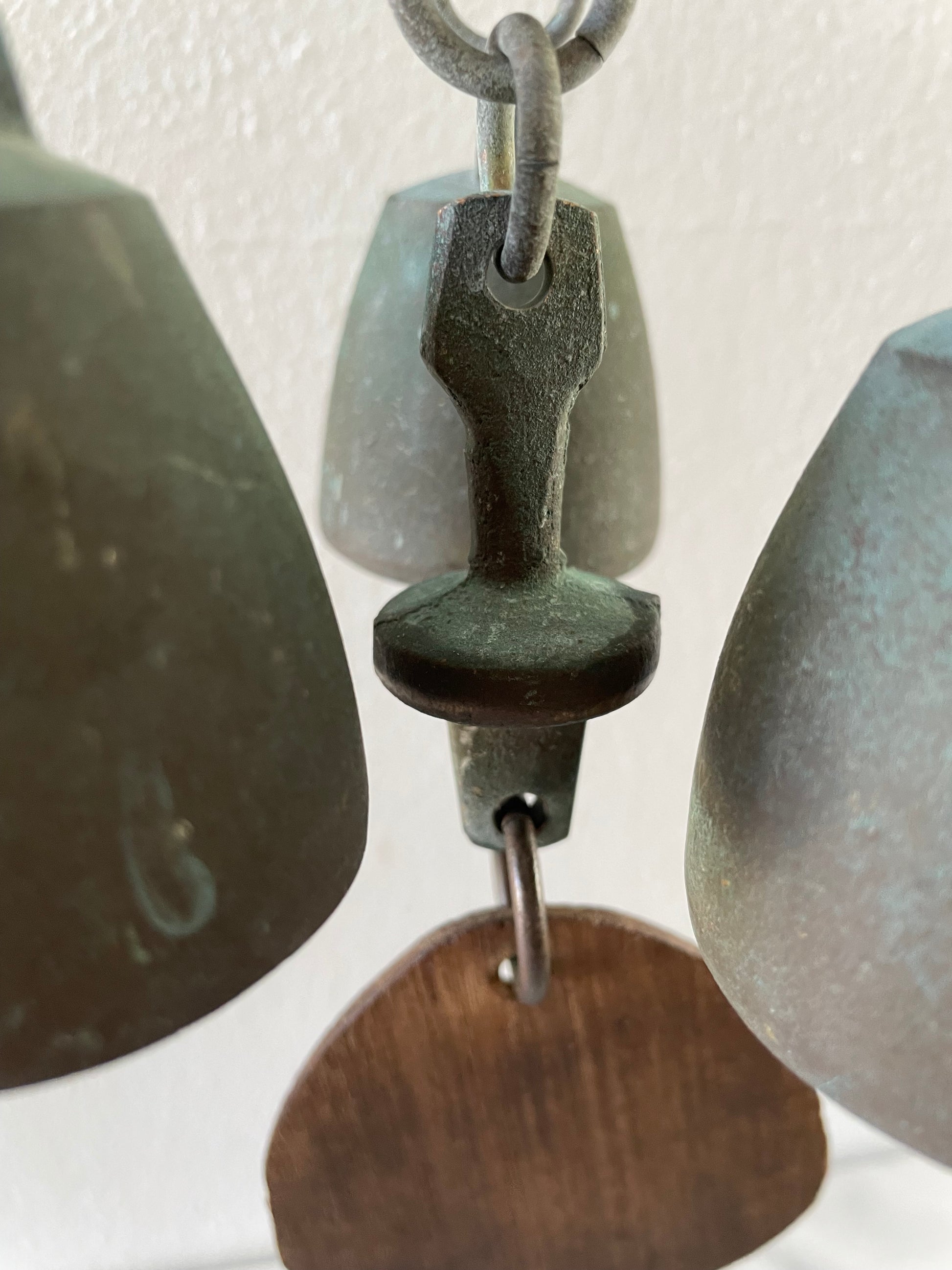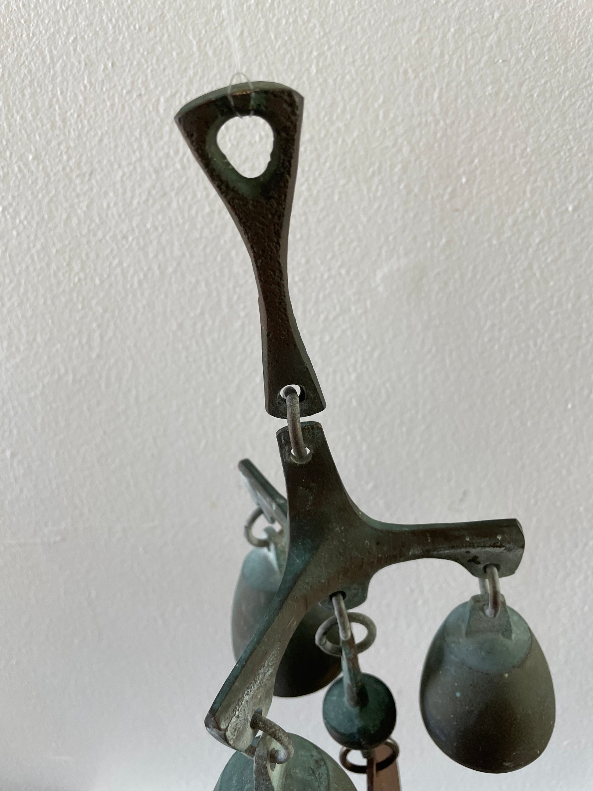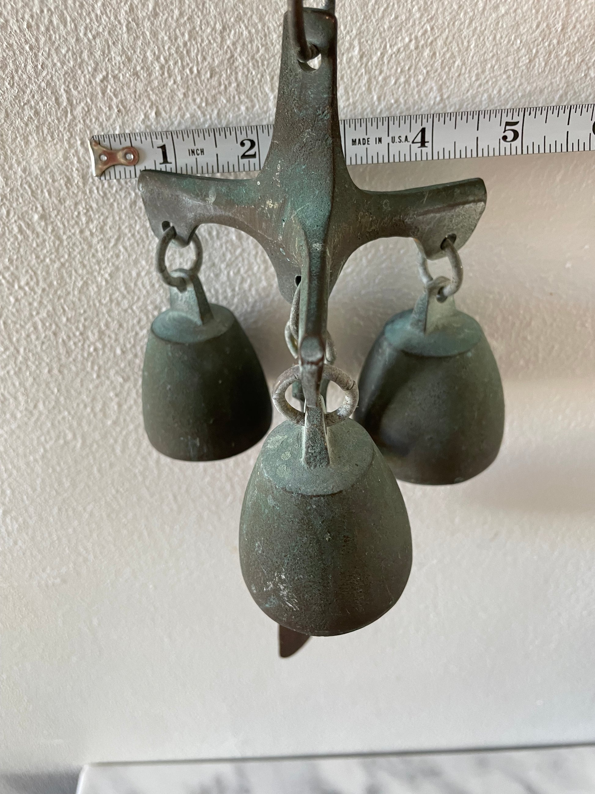 1980s Modern Cast Bronze Triple Wind Bell Chime by Richard Fisher