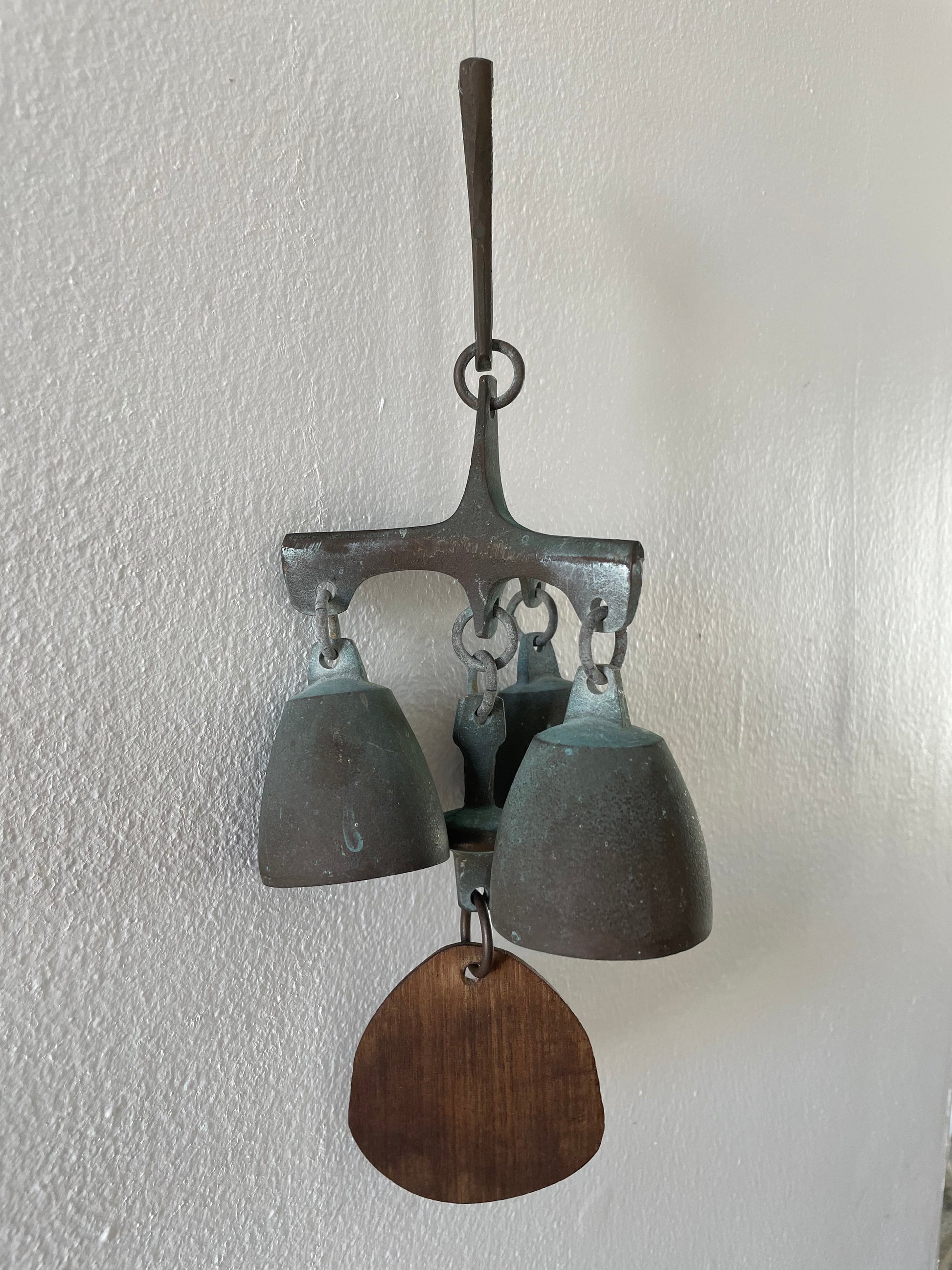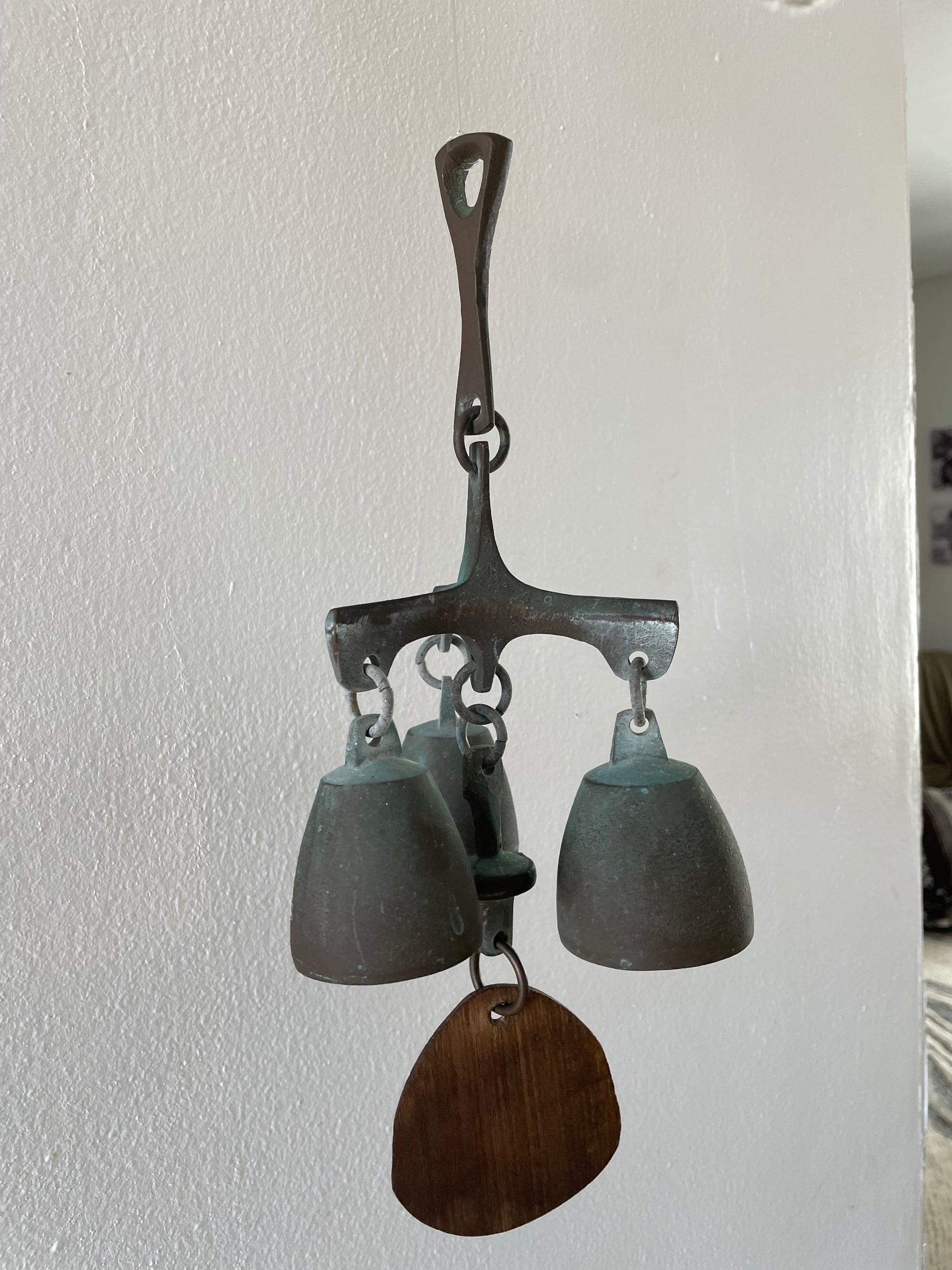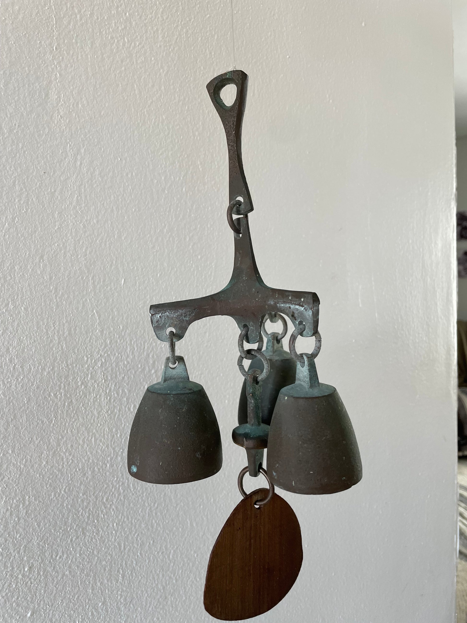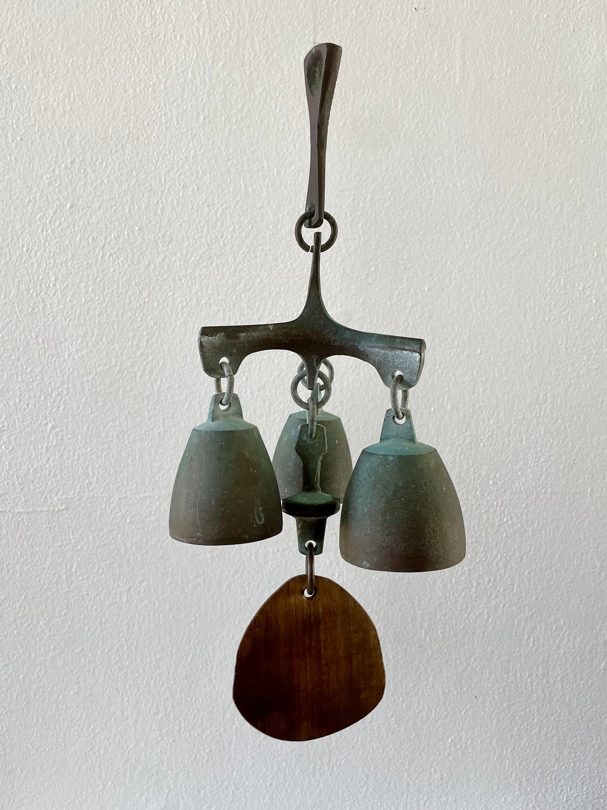 1980s Modern Cast Bronze Triple Wind Bell Chime by Richard Fisher