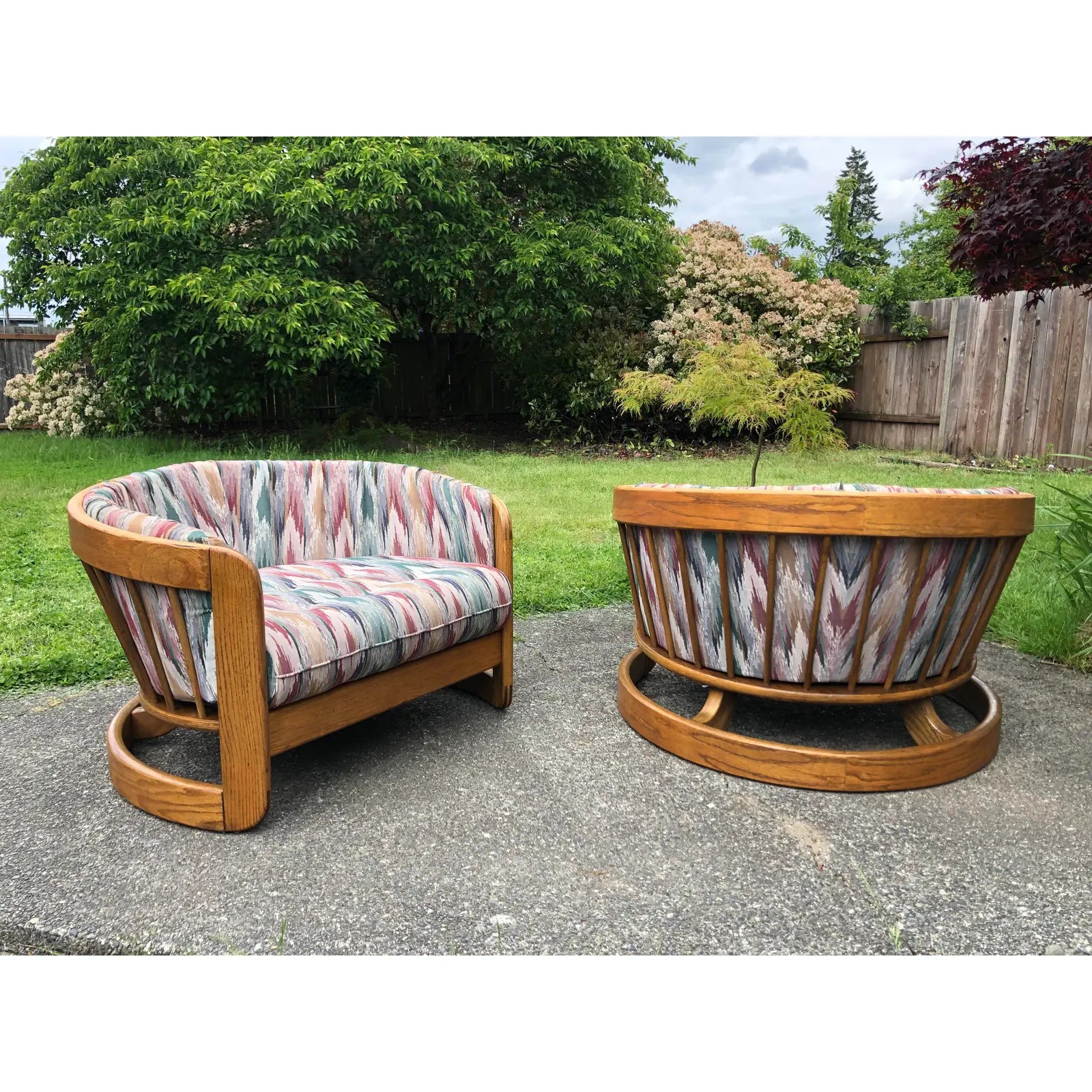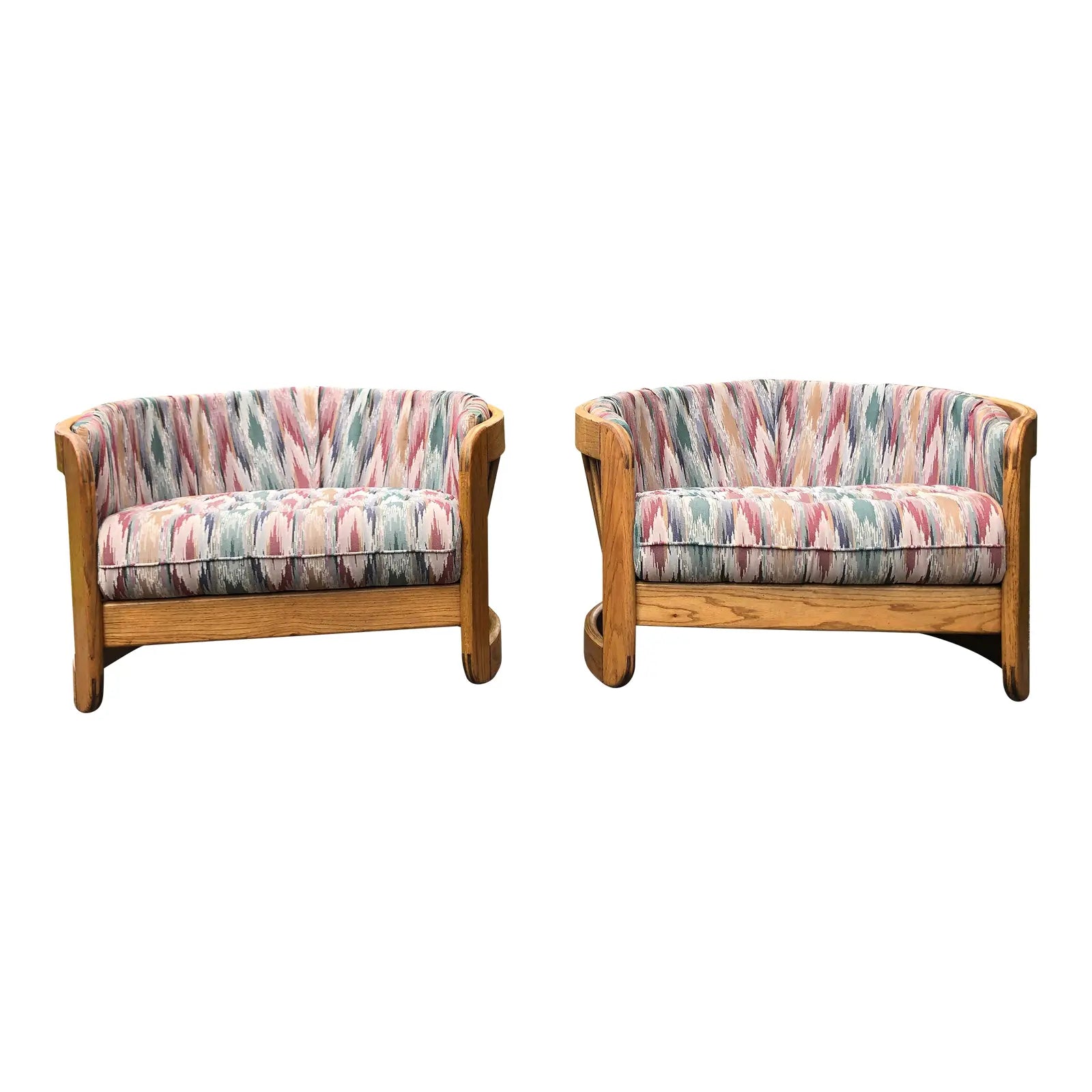 1980s Vintage Howard Furniture Solid Oak Lounge Chairs - Set of 2