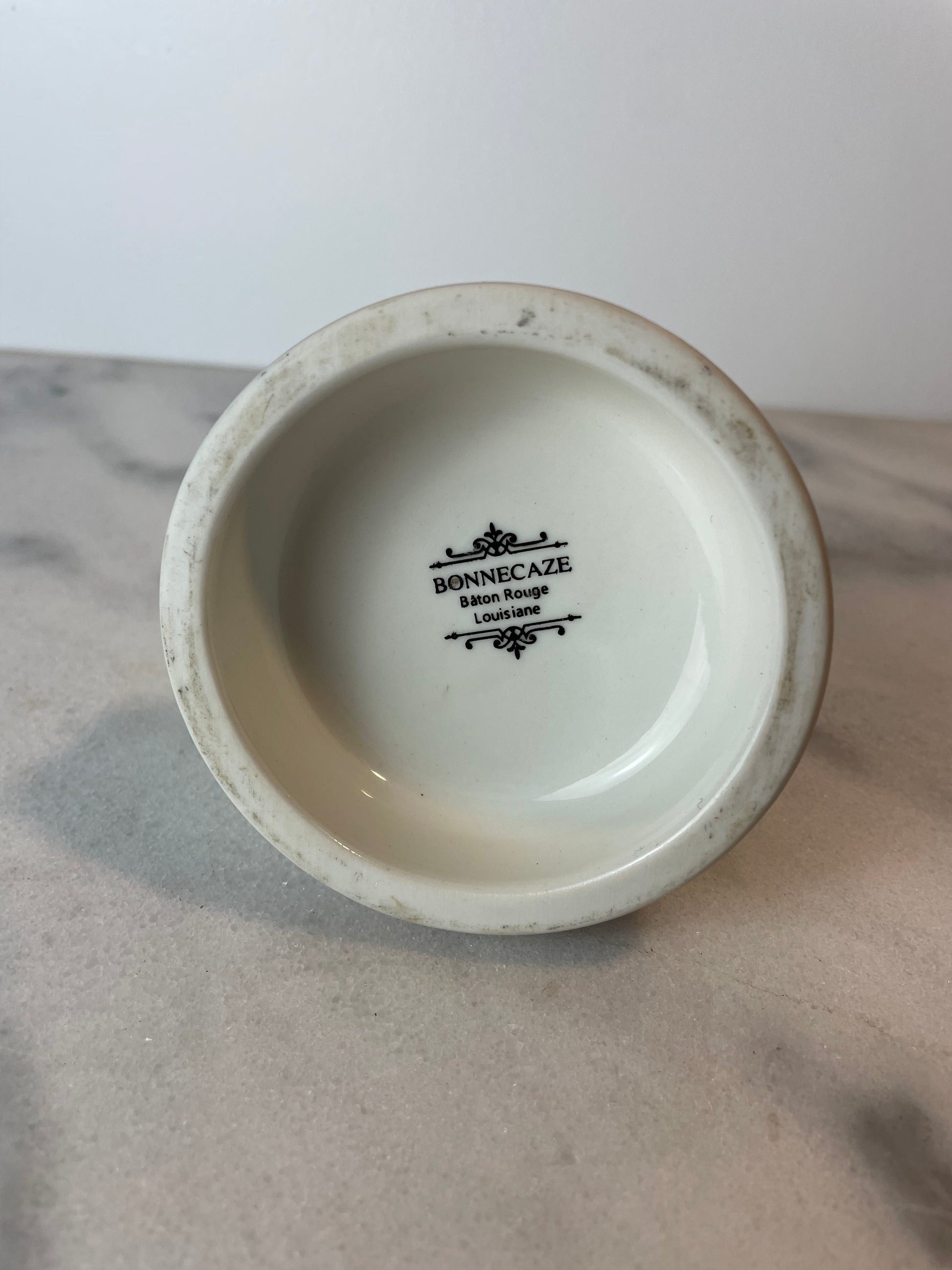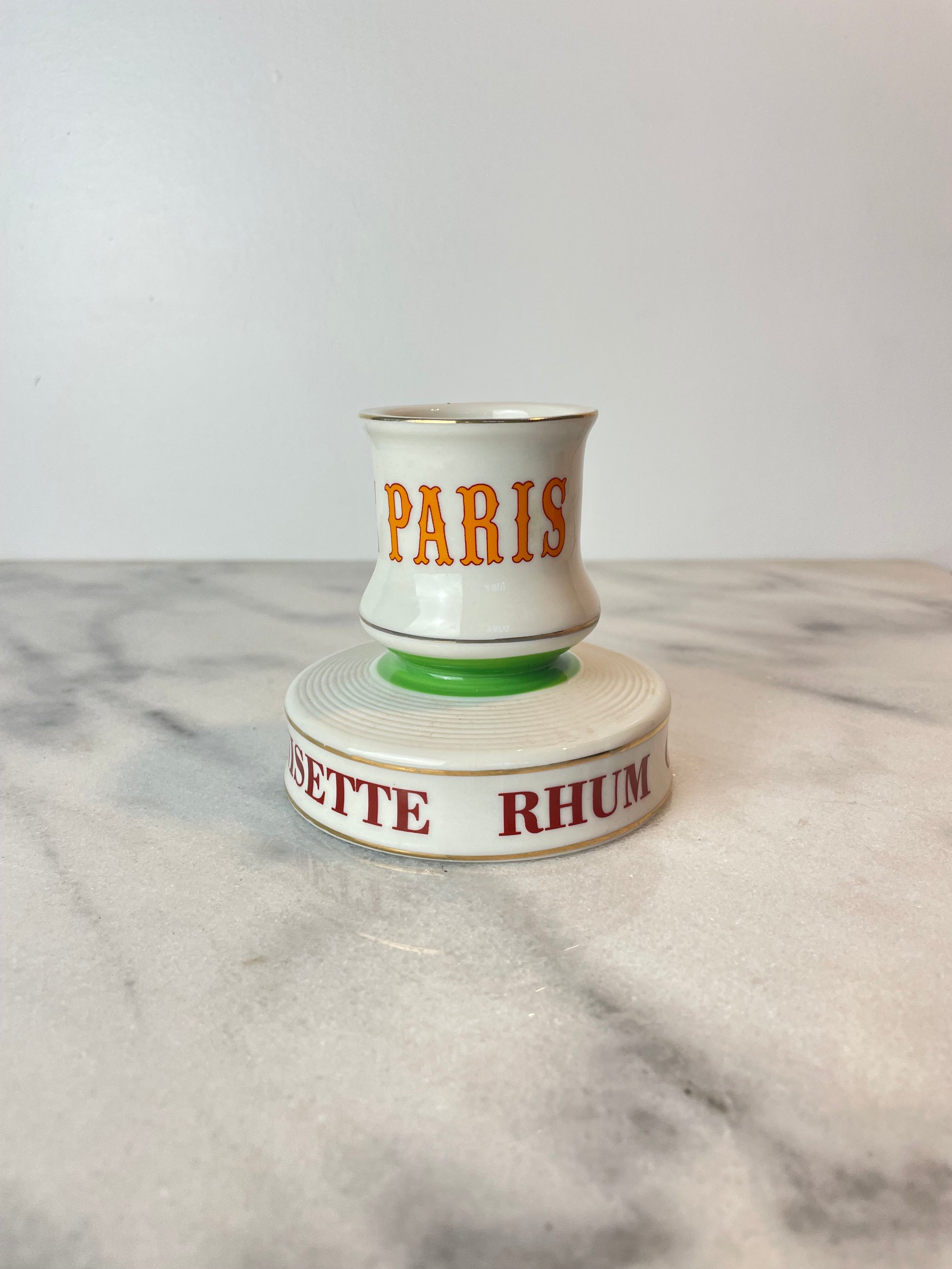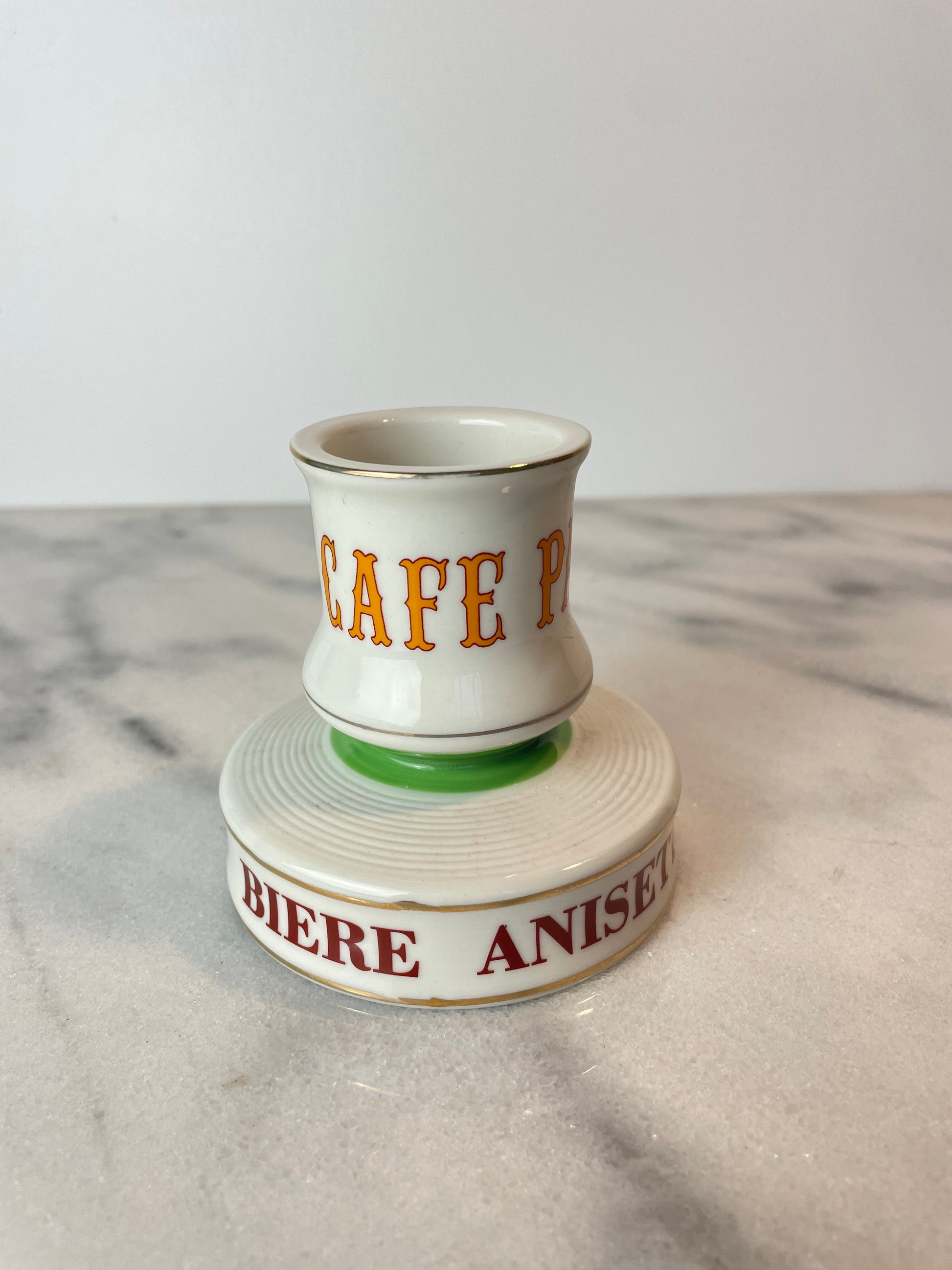 This unique match strike is a reproduction of those found throughout late 19th and early 20th century France. It was common to see a match striker sitting on a bistro table or bar at that time. The strikers are comprised of two separate parts. First, the top cylindrical container is used to hold matches. And the other, the ribbed surface on its side (or base), is used to strike and ignite the match. In the past, the pieces also served as advertisements. Many companies used items like these to promote their wares, which were usually provided to the bar for free. The strikers can also be helpful in holding various other items, such as toothpicks.