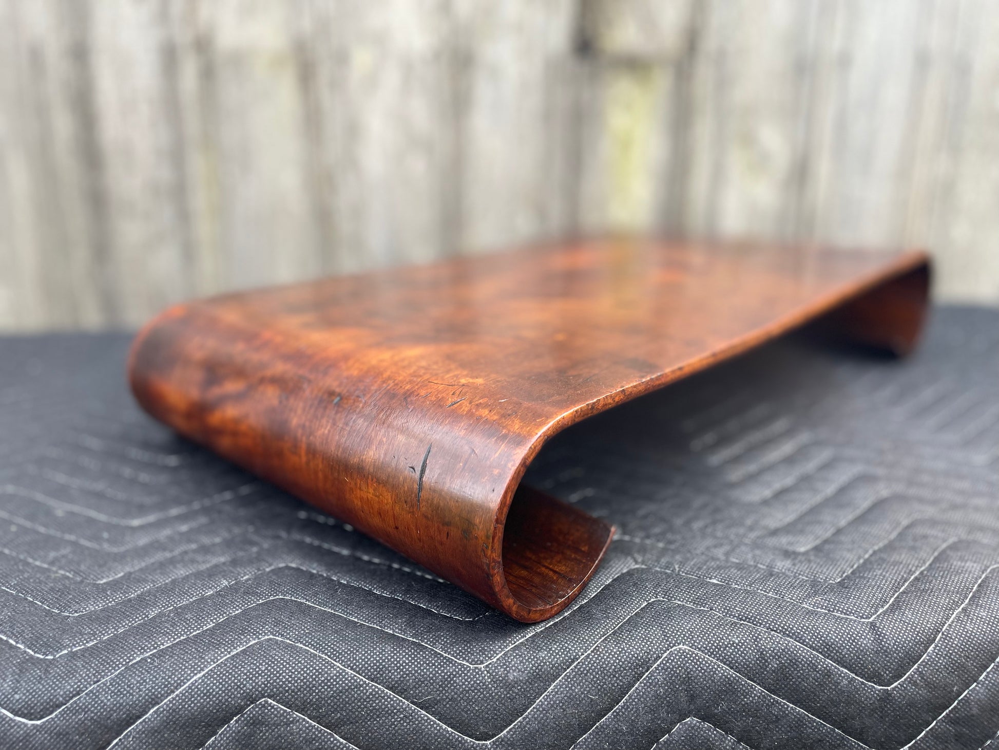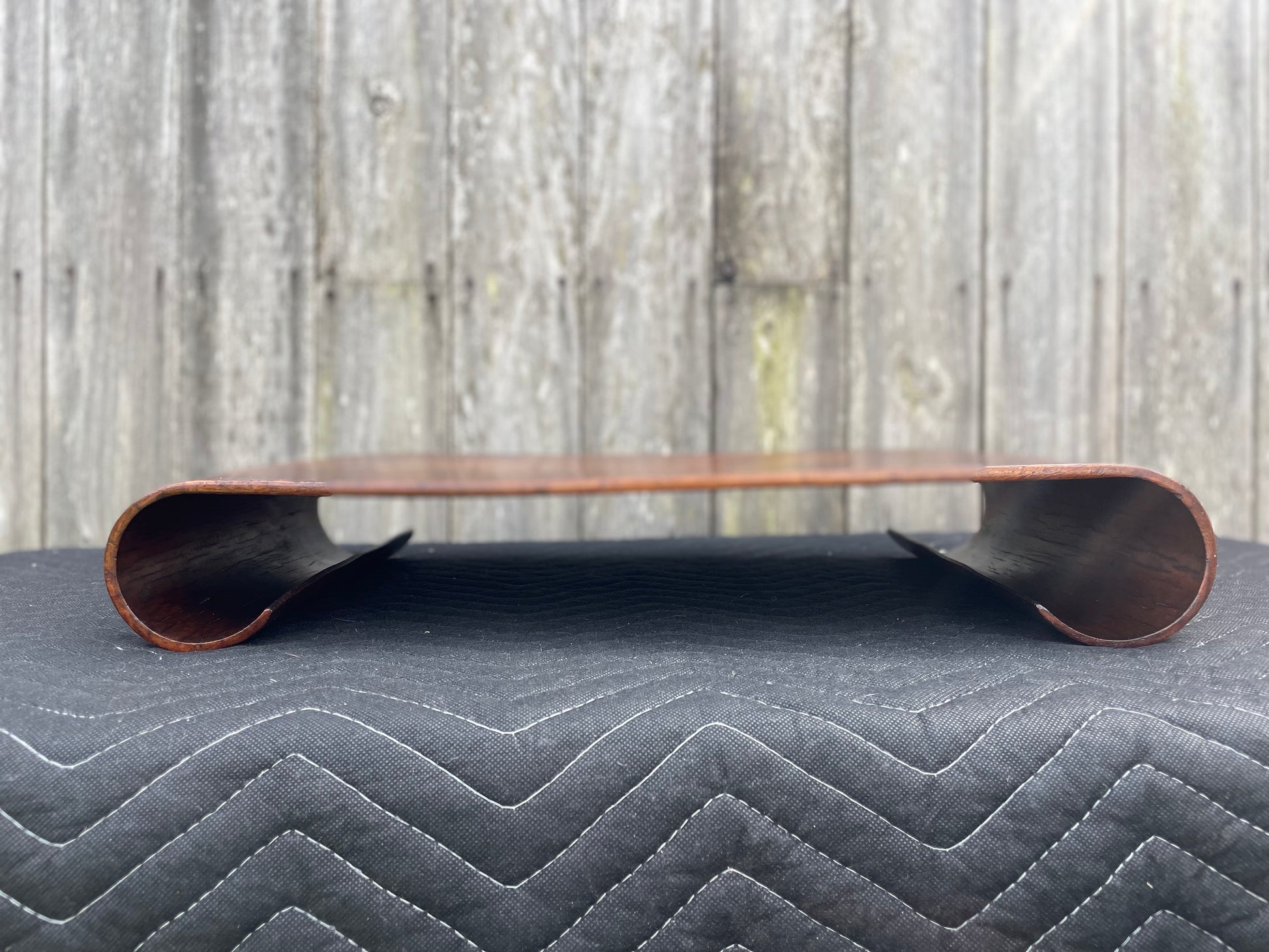 Scrolls are bent from one piece of wood and provide a beautiful wide sturdy seat on any surface. Perfectly posed on an ottoman, bed or picnic blanket.