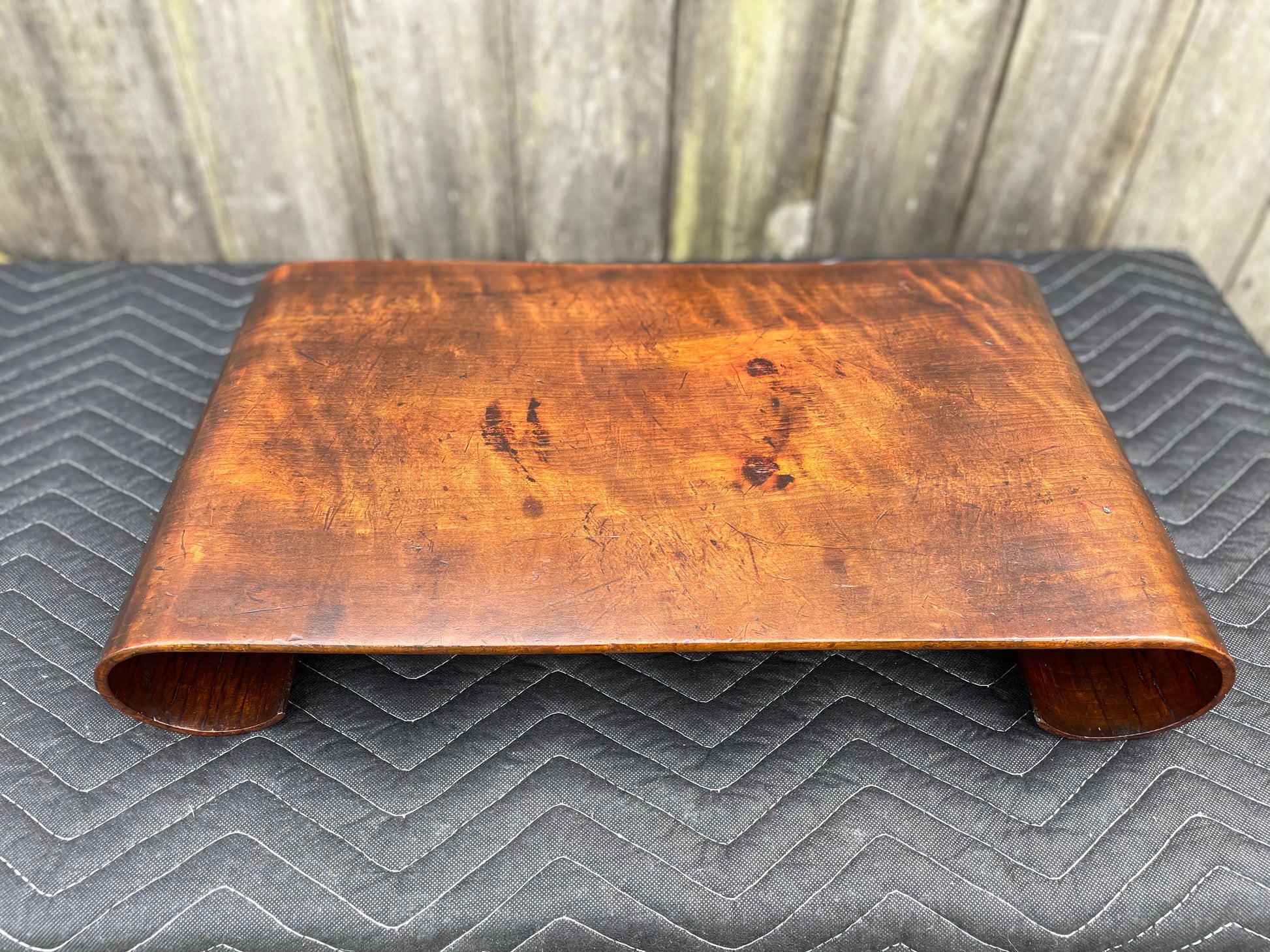 Unique vintage Chinese low tray with scroll end legs. Charming piece with a beautiful patina.