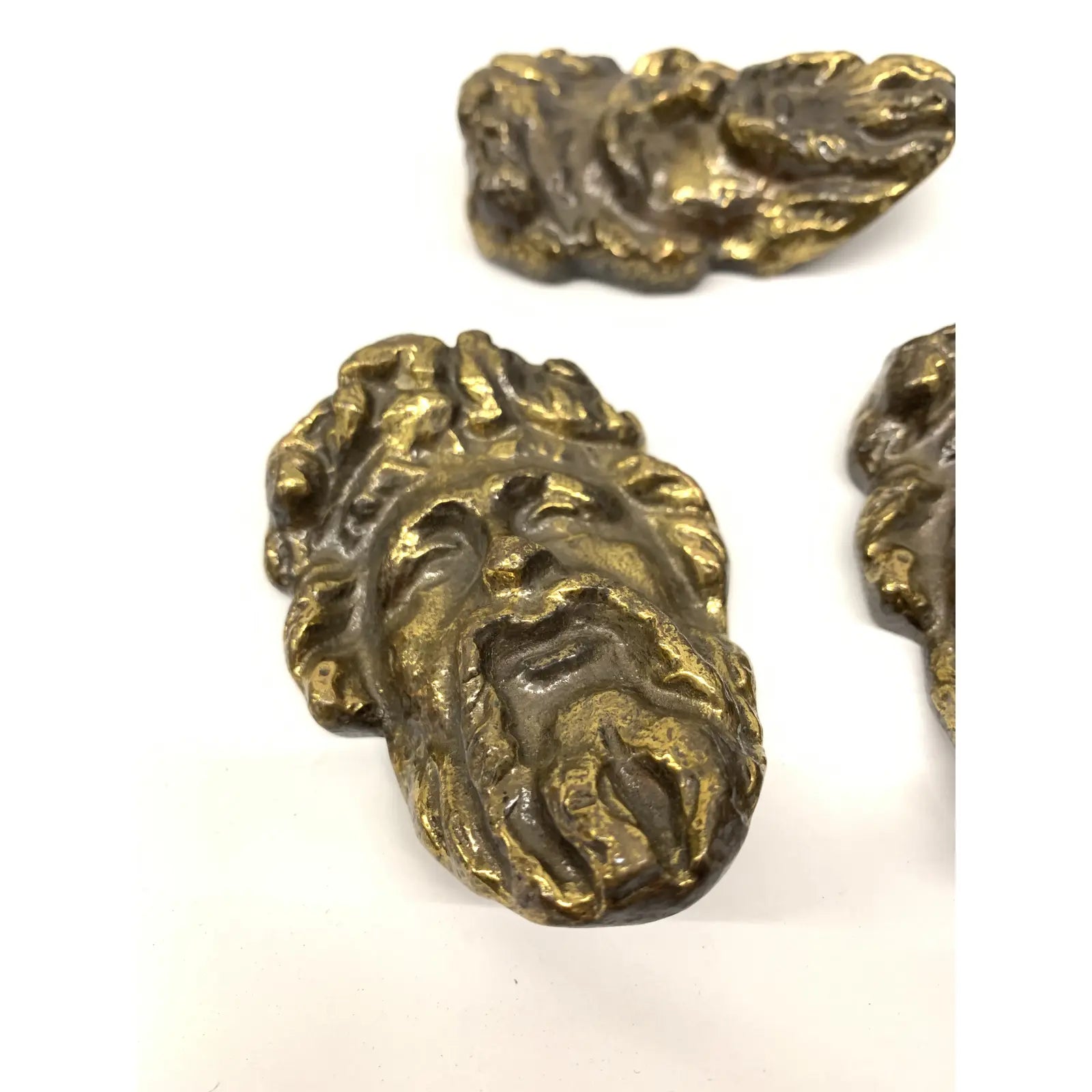 Early 20th Century Solid Brass Greek God Knobs - Set of 3