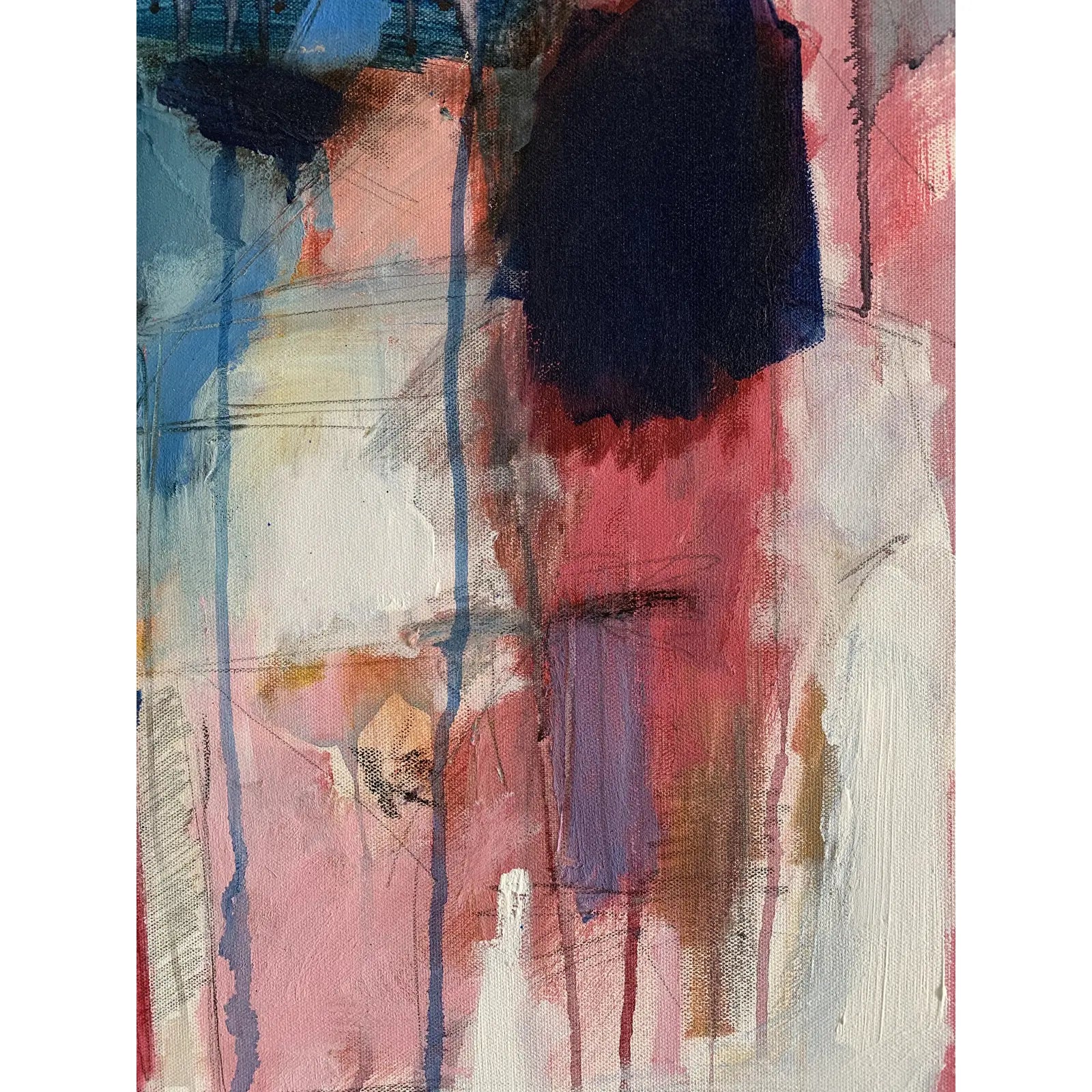 Abstract acrylic on canvas. The painting features a textured surface with depth added by the use of different sheens and layers of color. Framed by the artist in an unfinished light reclaimed wood.
