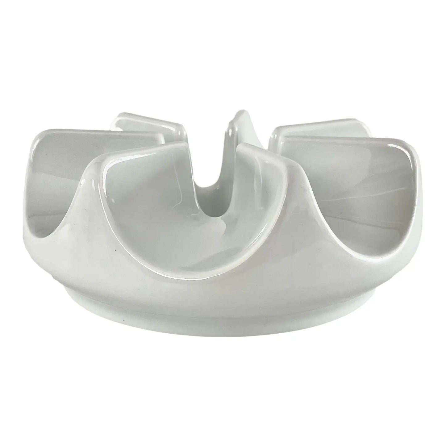 Round base teapot warmer in white ceramic. In the center there is a round hole into which you can insert a small candle. There are ridges around the hole to detach the teapot from the flame. It can be used as a simple Teapot holder.