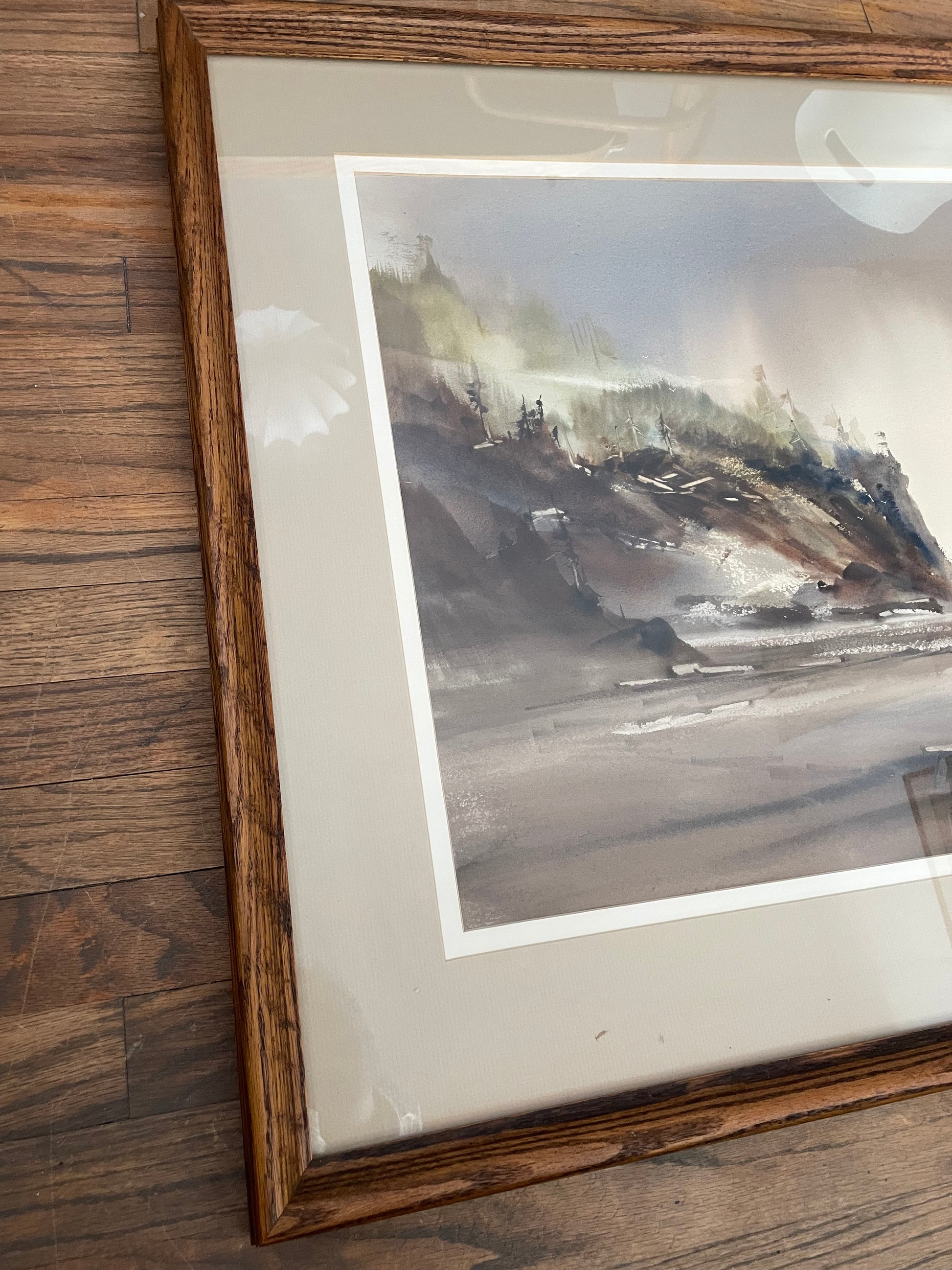 John Ebner Seaside Pacific Northwest Landscape Watercolor on Paper Framed & Matted