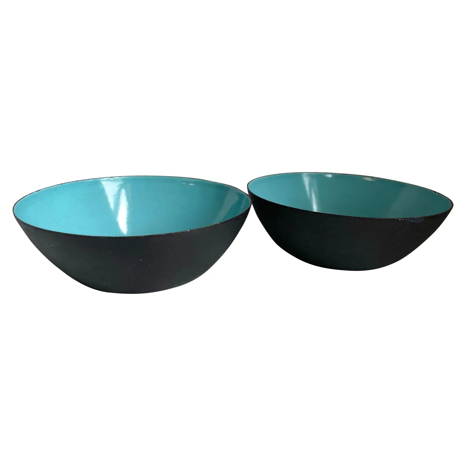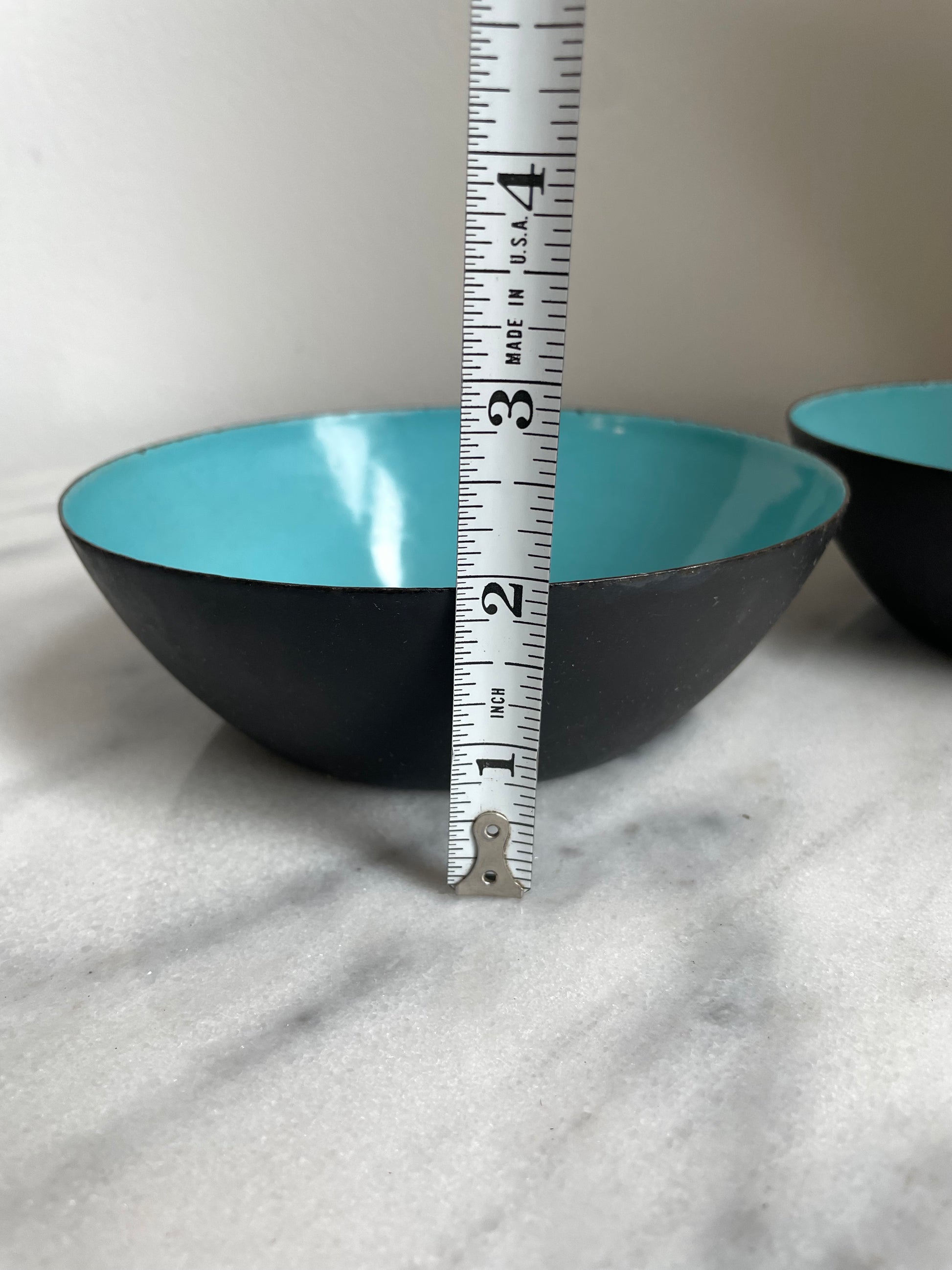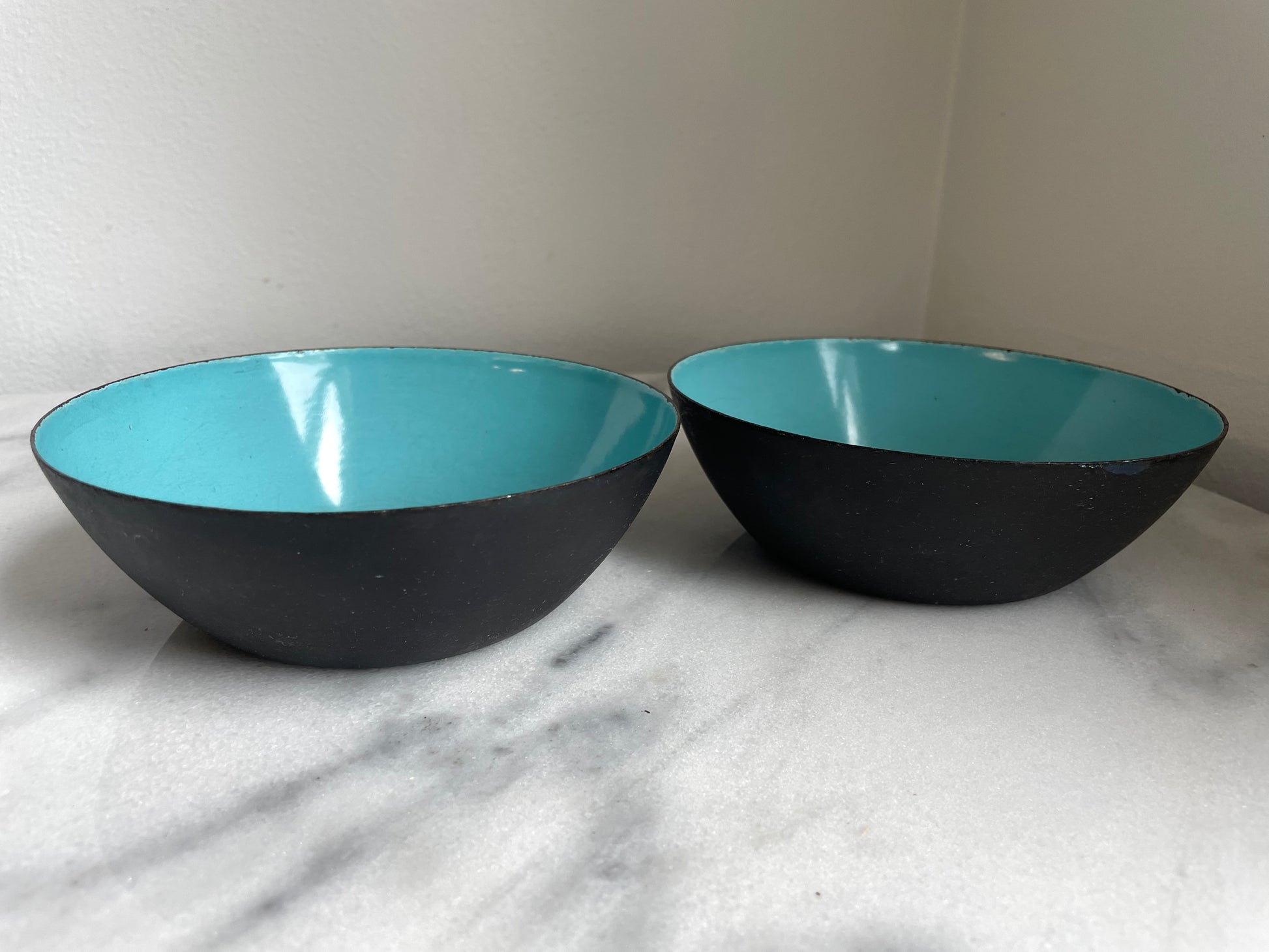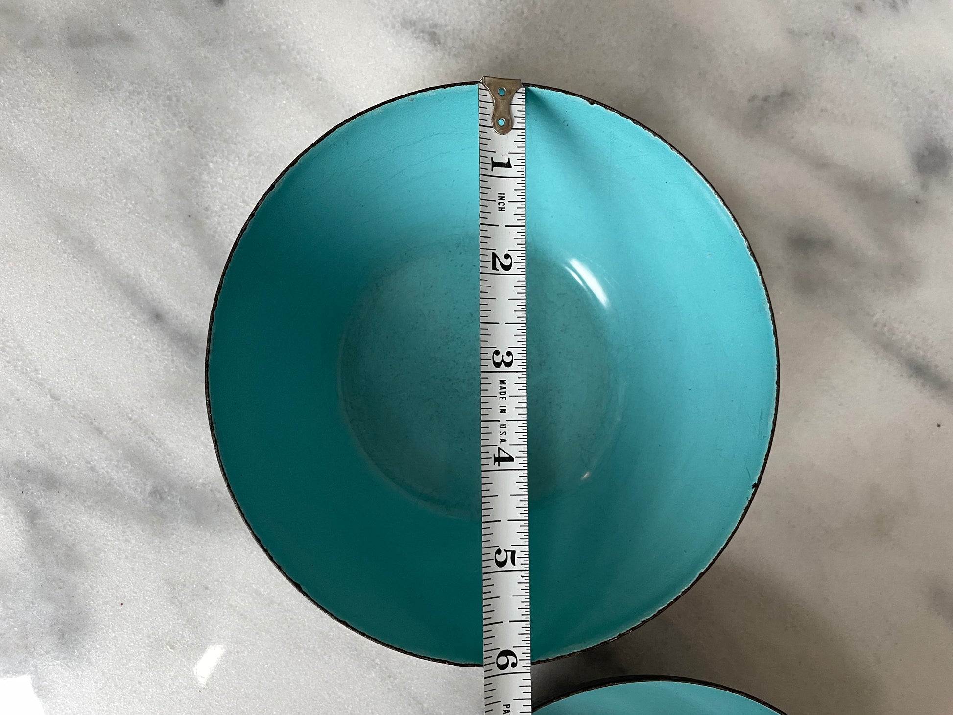 Set of 2 bowls in metal and blue enamel. Designed by Herbert Krenchel and made by Torben Ørskov. Great original condition.