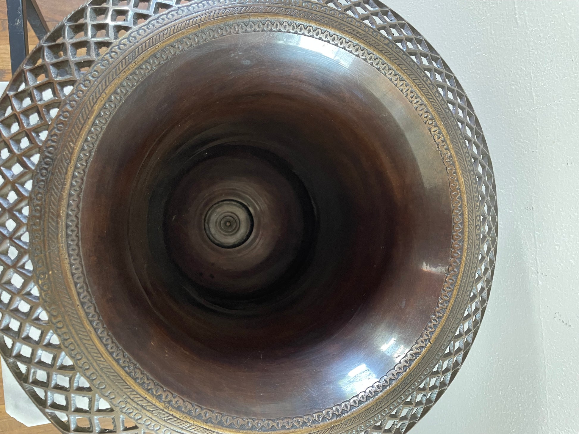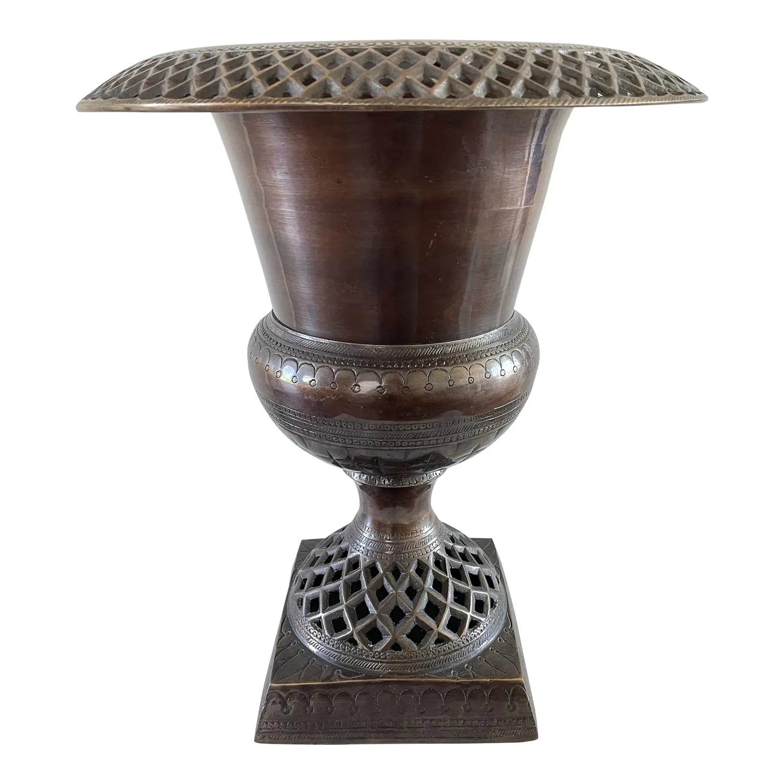 Large Late 20th Century Solid Brads Urn Vase With Pierced Detailing