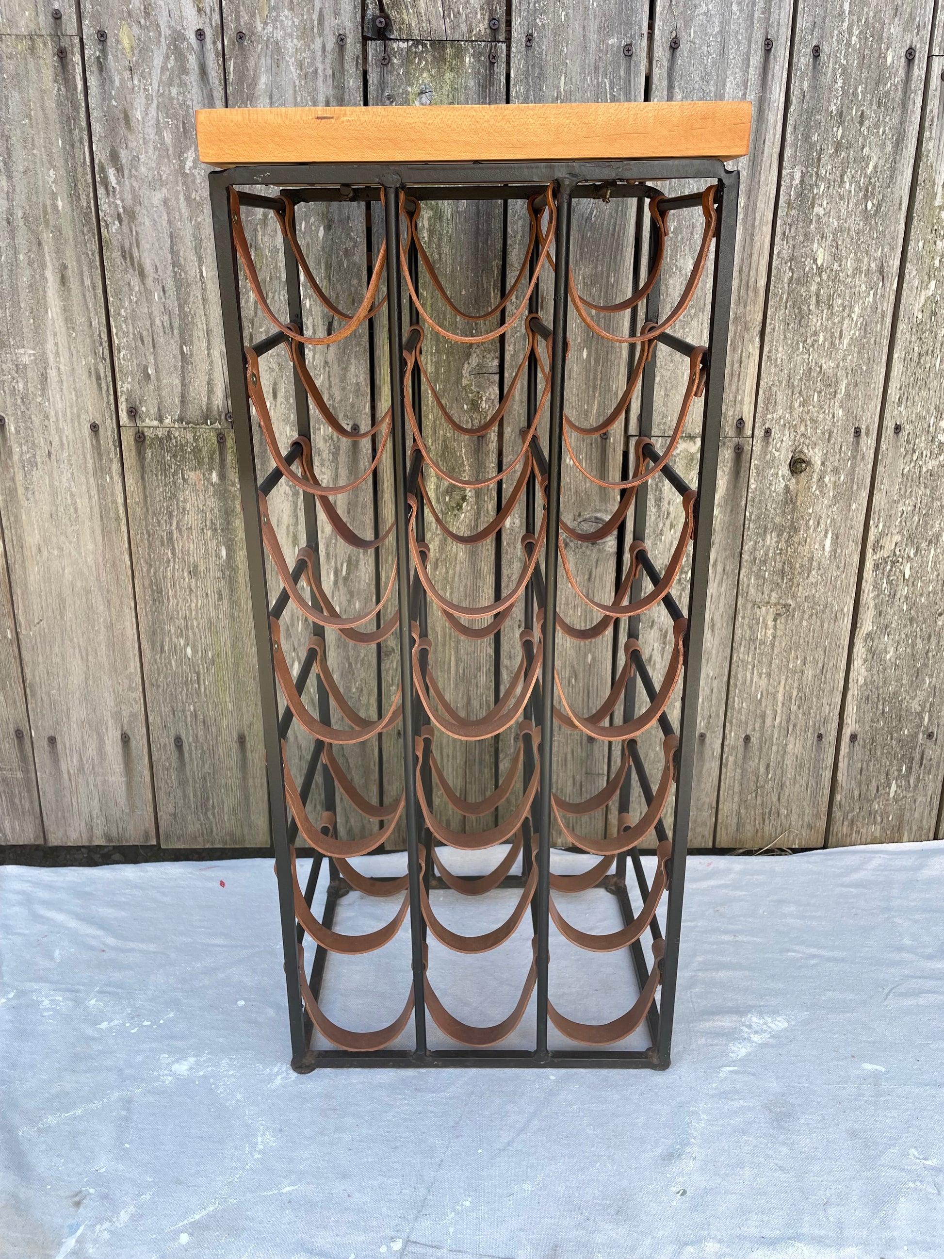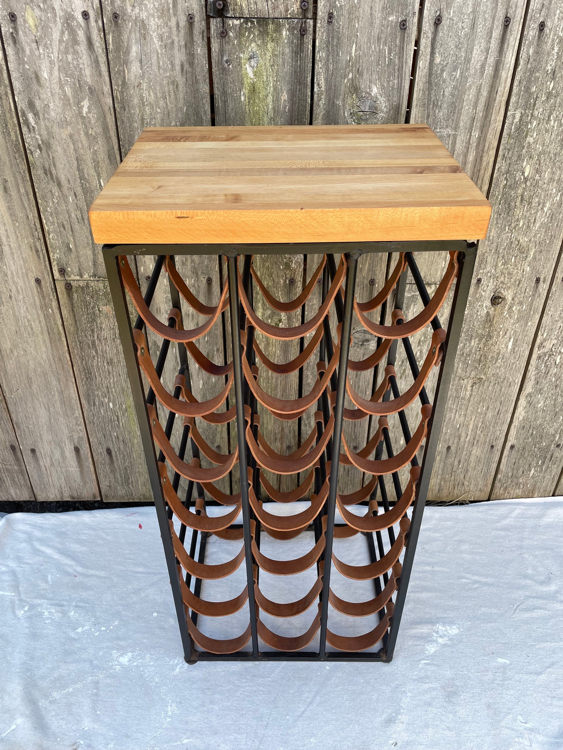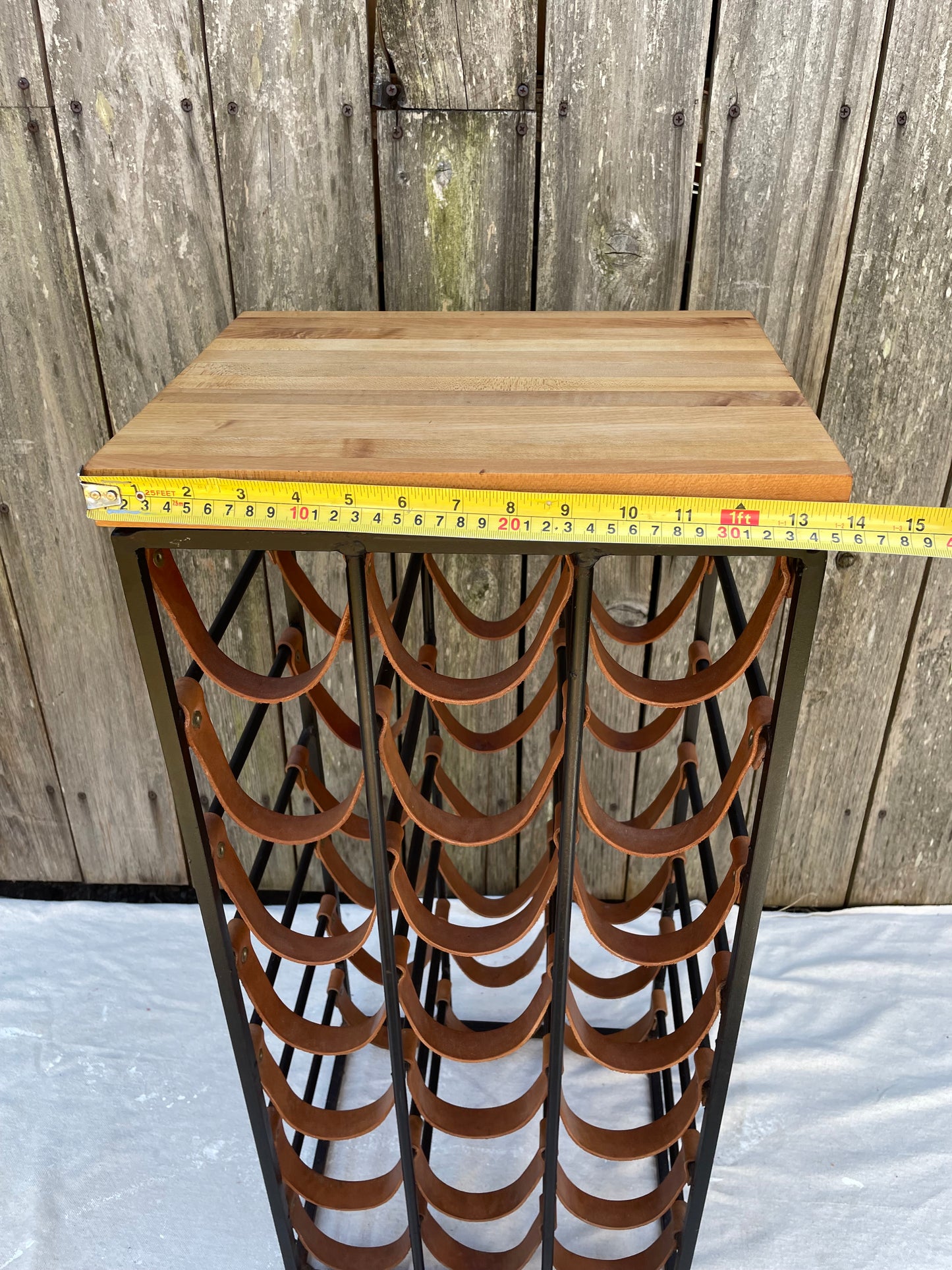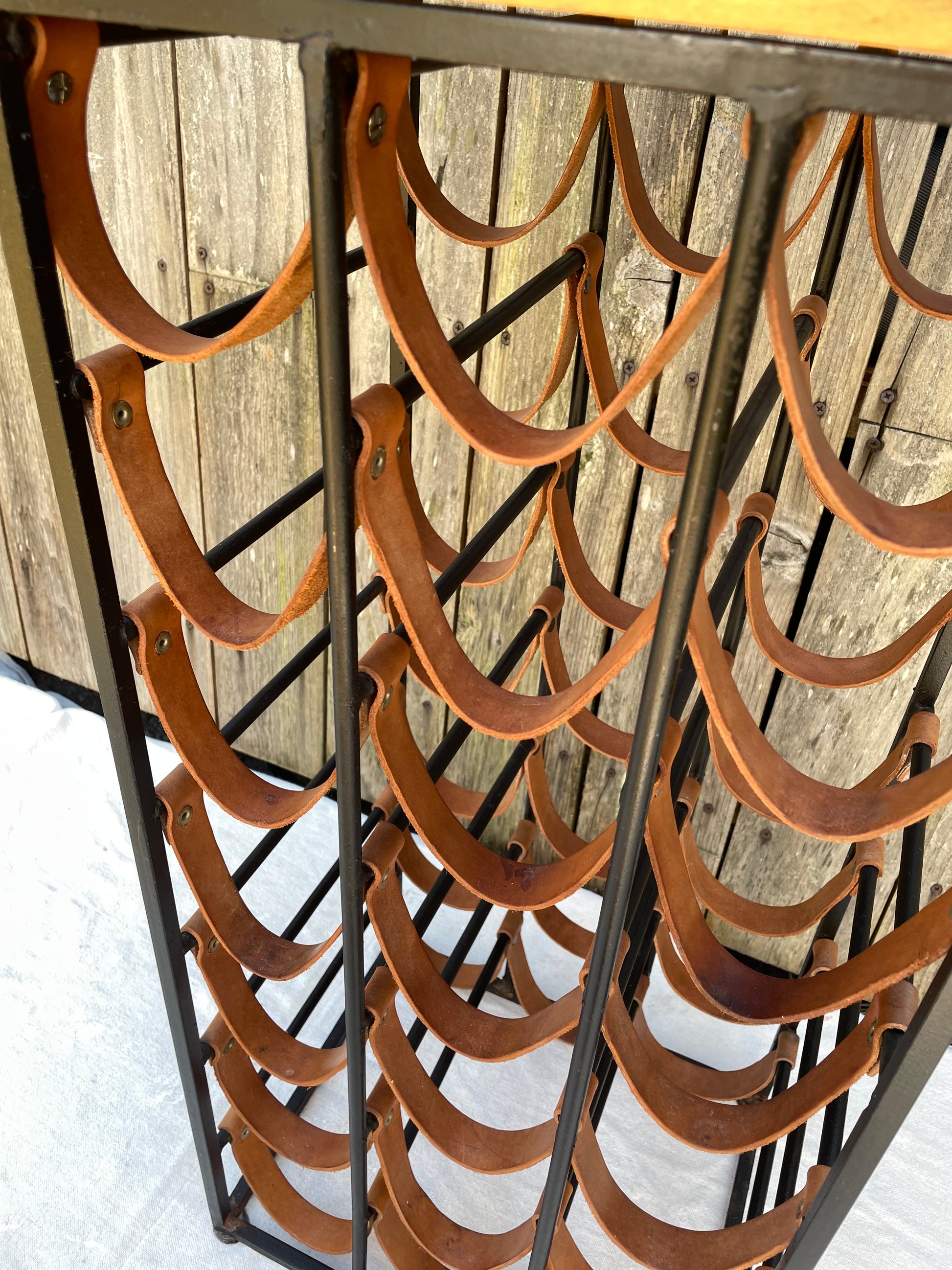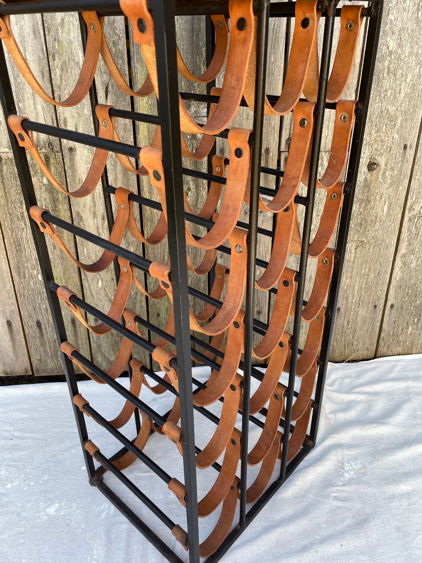 Large Mid 20th Century Arthur Umanoff Iron and Leather Wine Rack for Shaver Howard