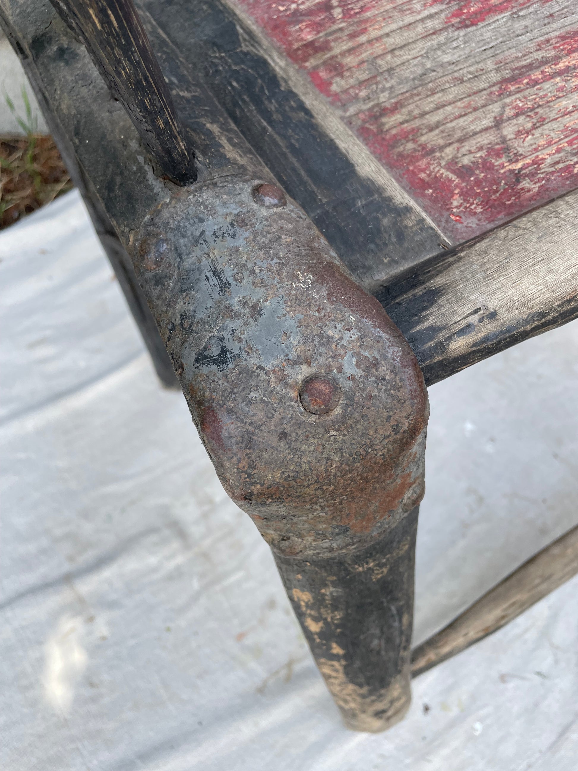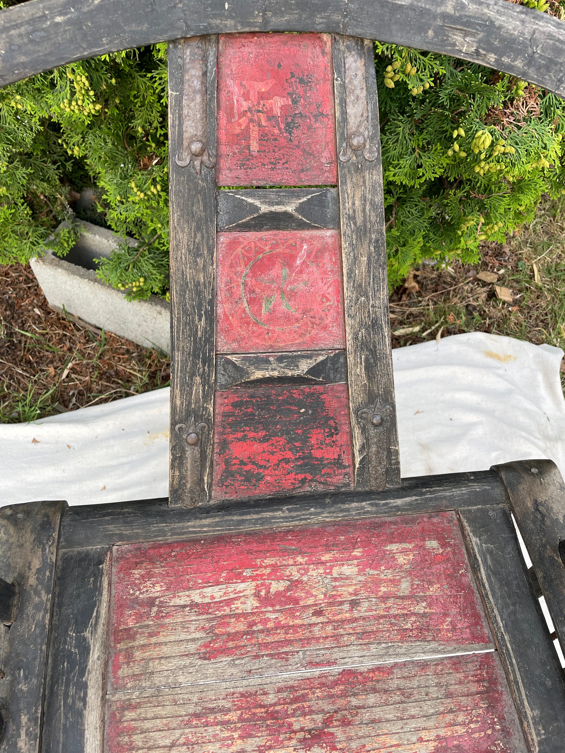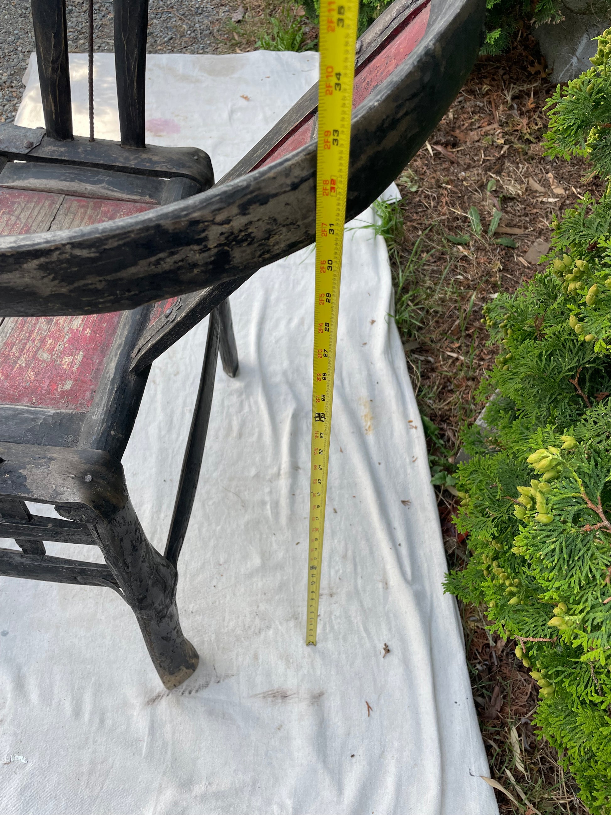 A primitive 19th century elm horseshoe back armchair. This classical Chinese armchair has good proportions and a nice patina. The original black lacquer is softly faded and crackled.