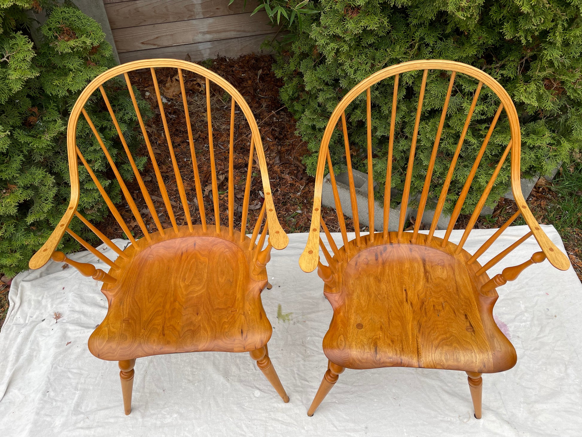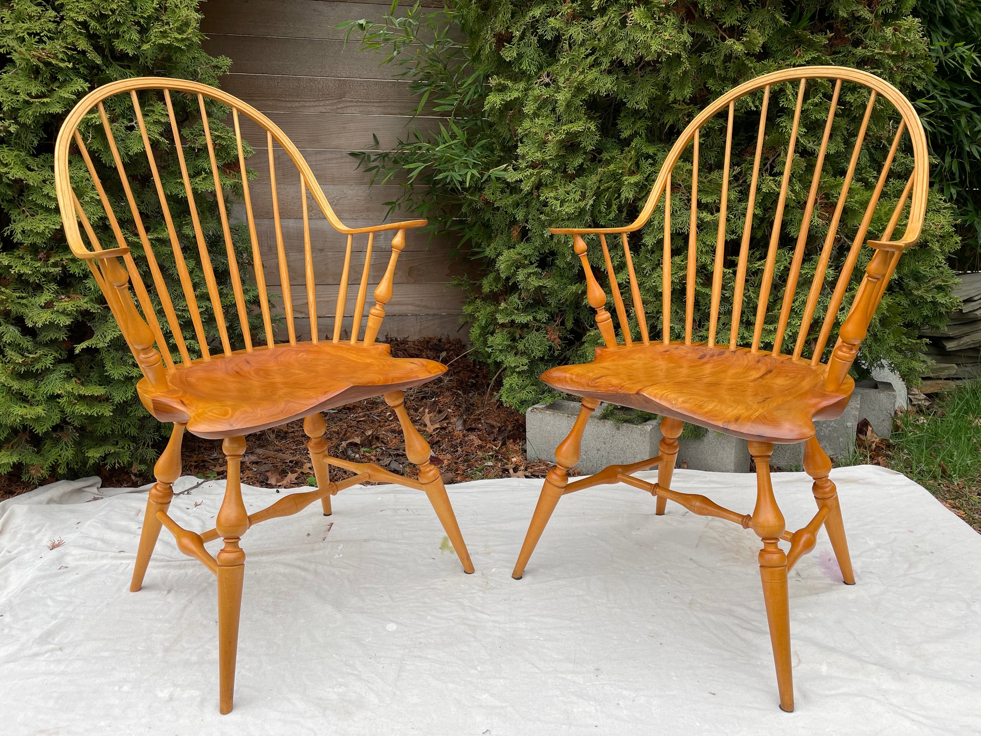 Late 20th Century Master Craftsman David Wright Continuous Windsor Armchairs - A Pair