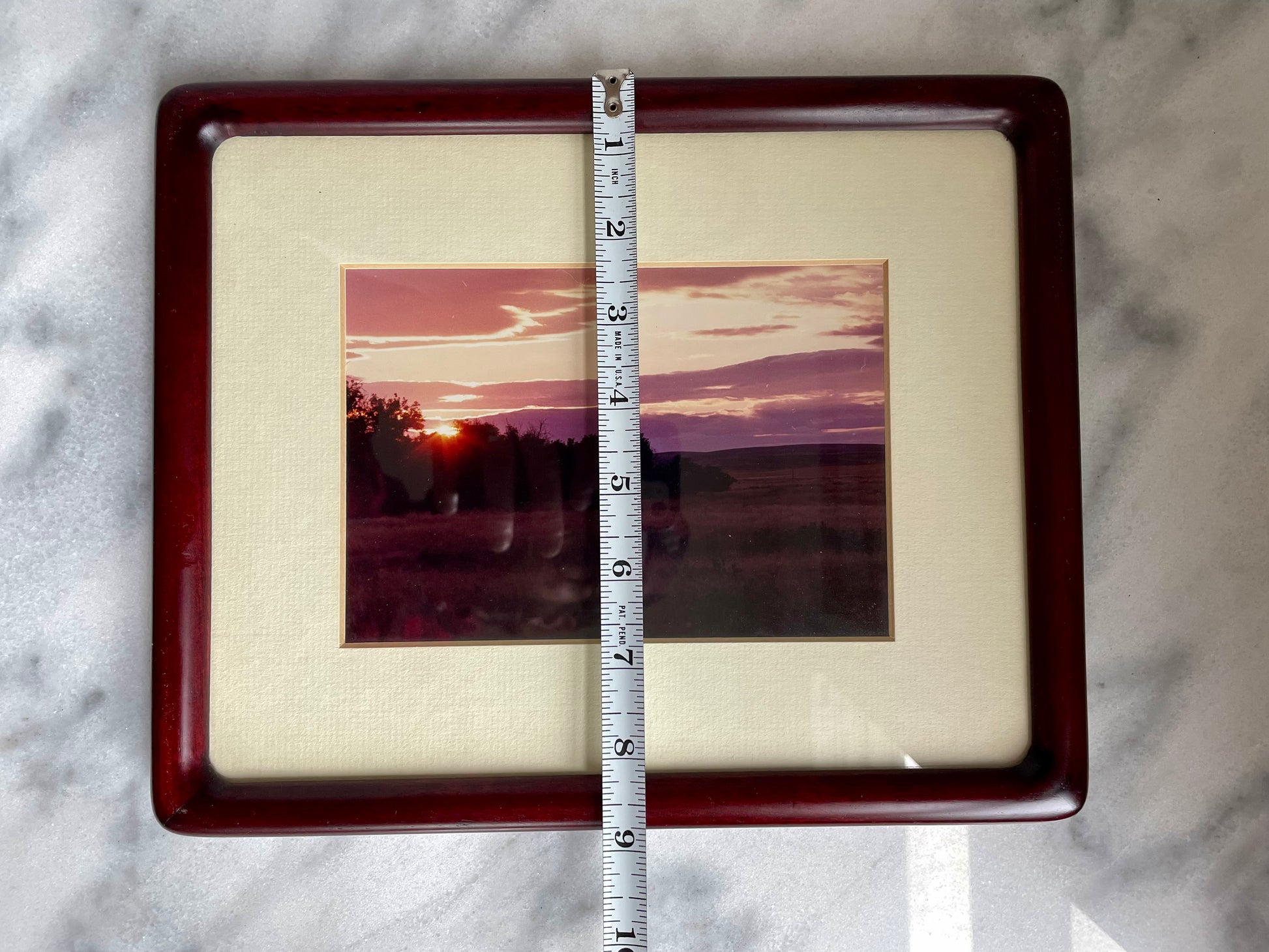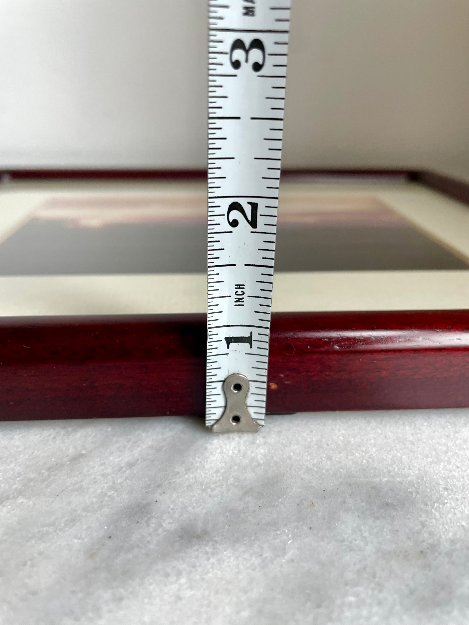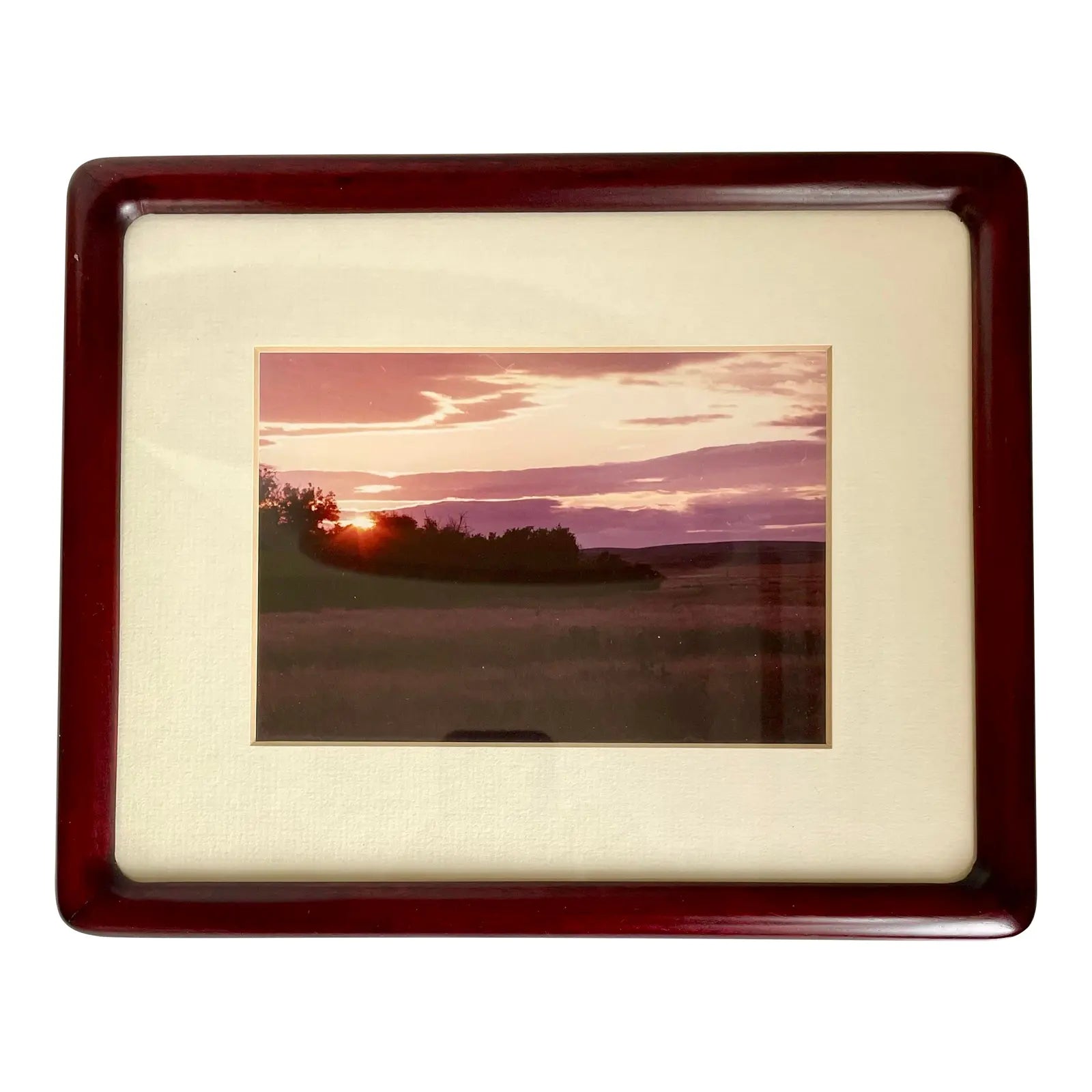 A vintage rosewood picture frame with soft edges and rich red coloring, perfect for hanging or propped on a table or desktop.