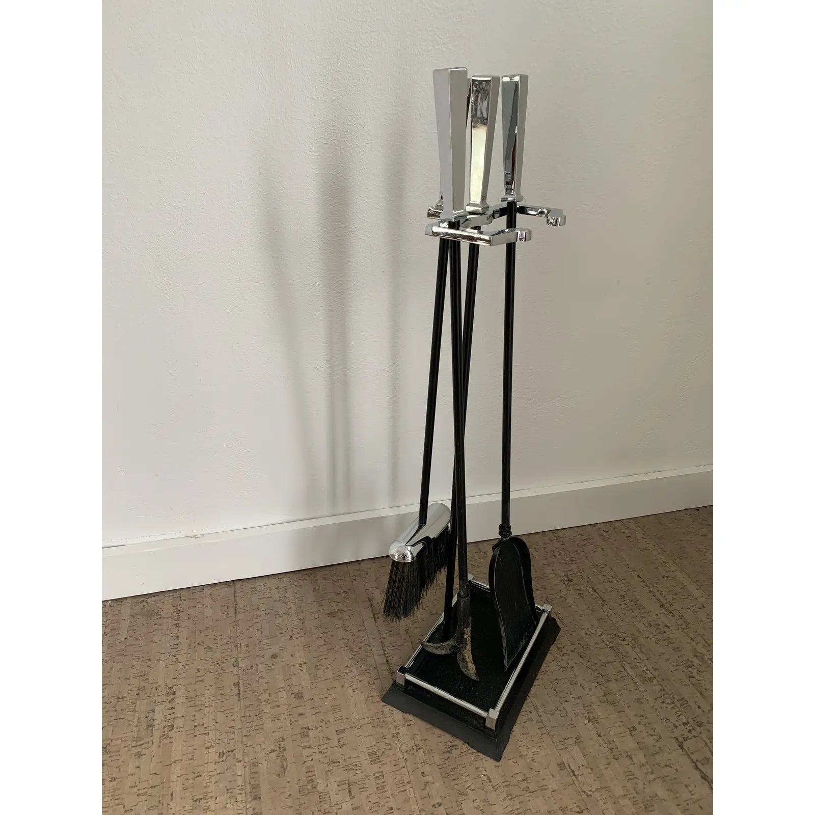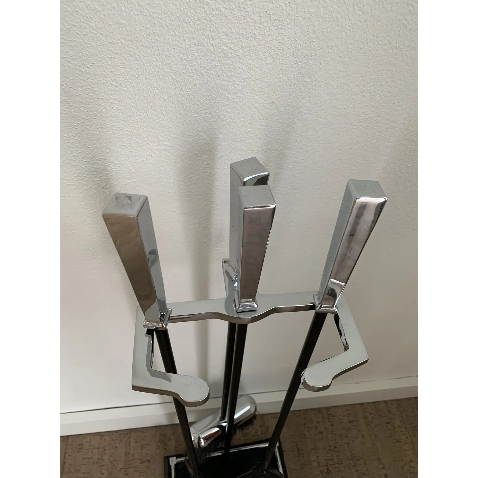 Late 20th Century Transitional Modern Chrome Fireplace Tool Set- 4 Pieces