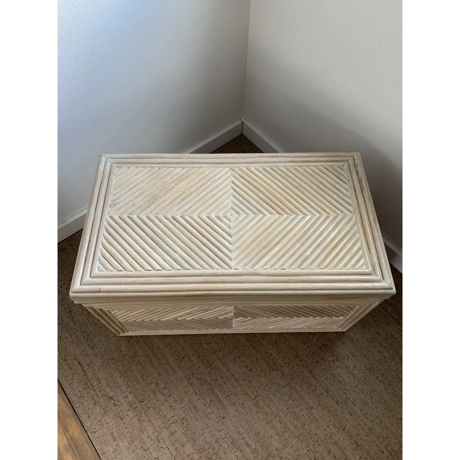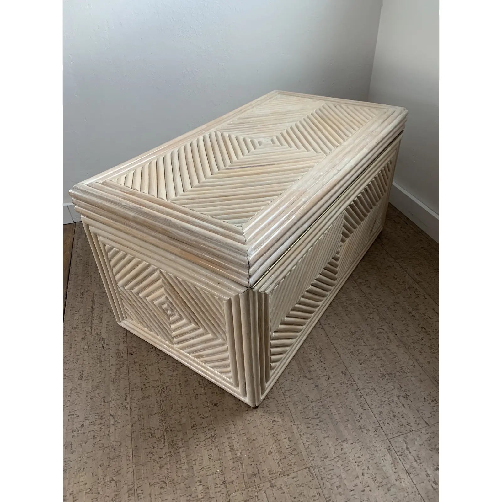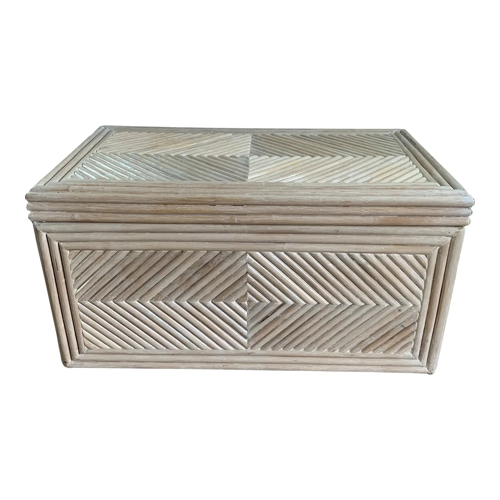 Late 20th Century Vintage Cerused Pencil Reed Bamboo Storage Trunk