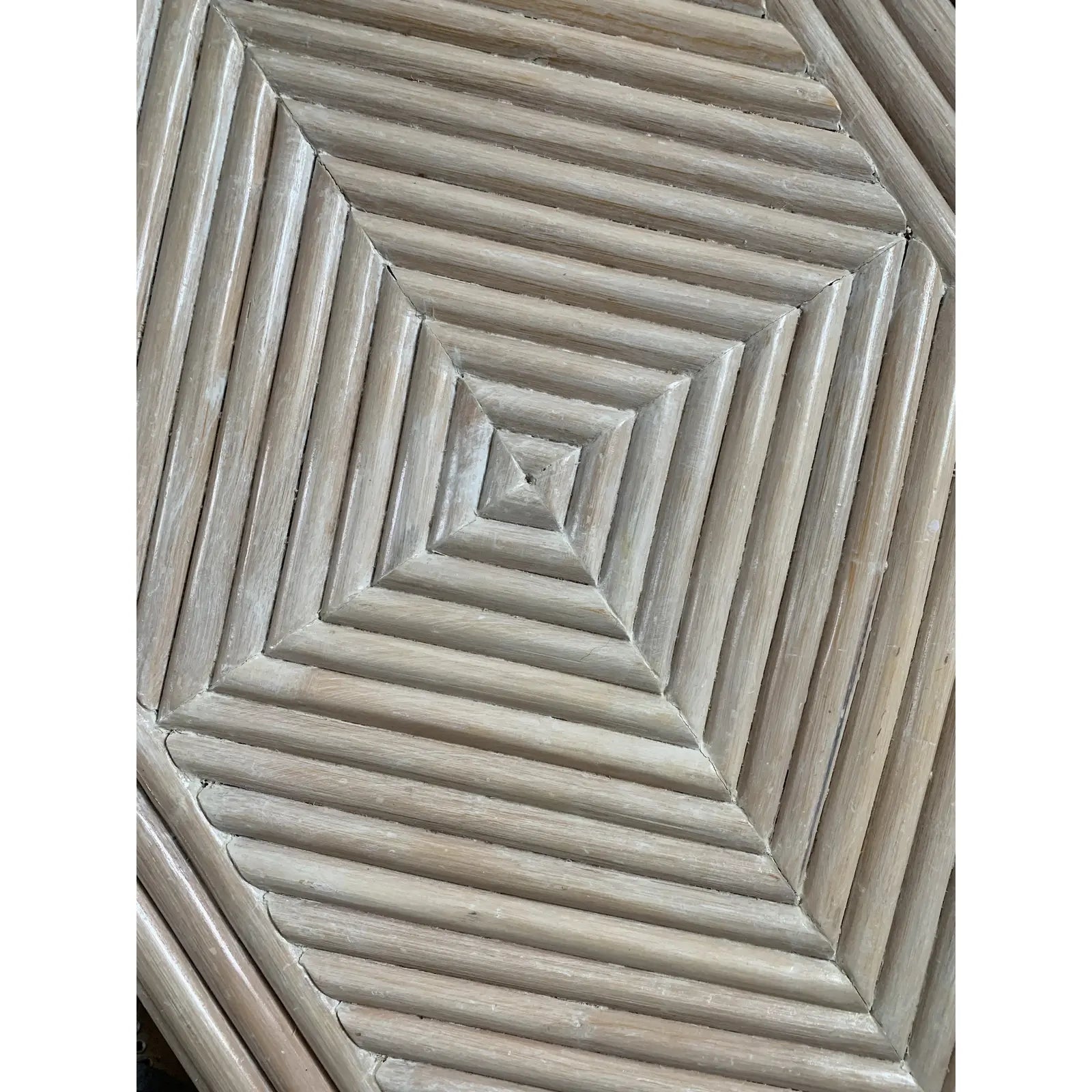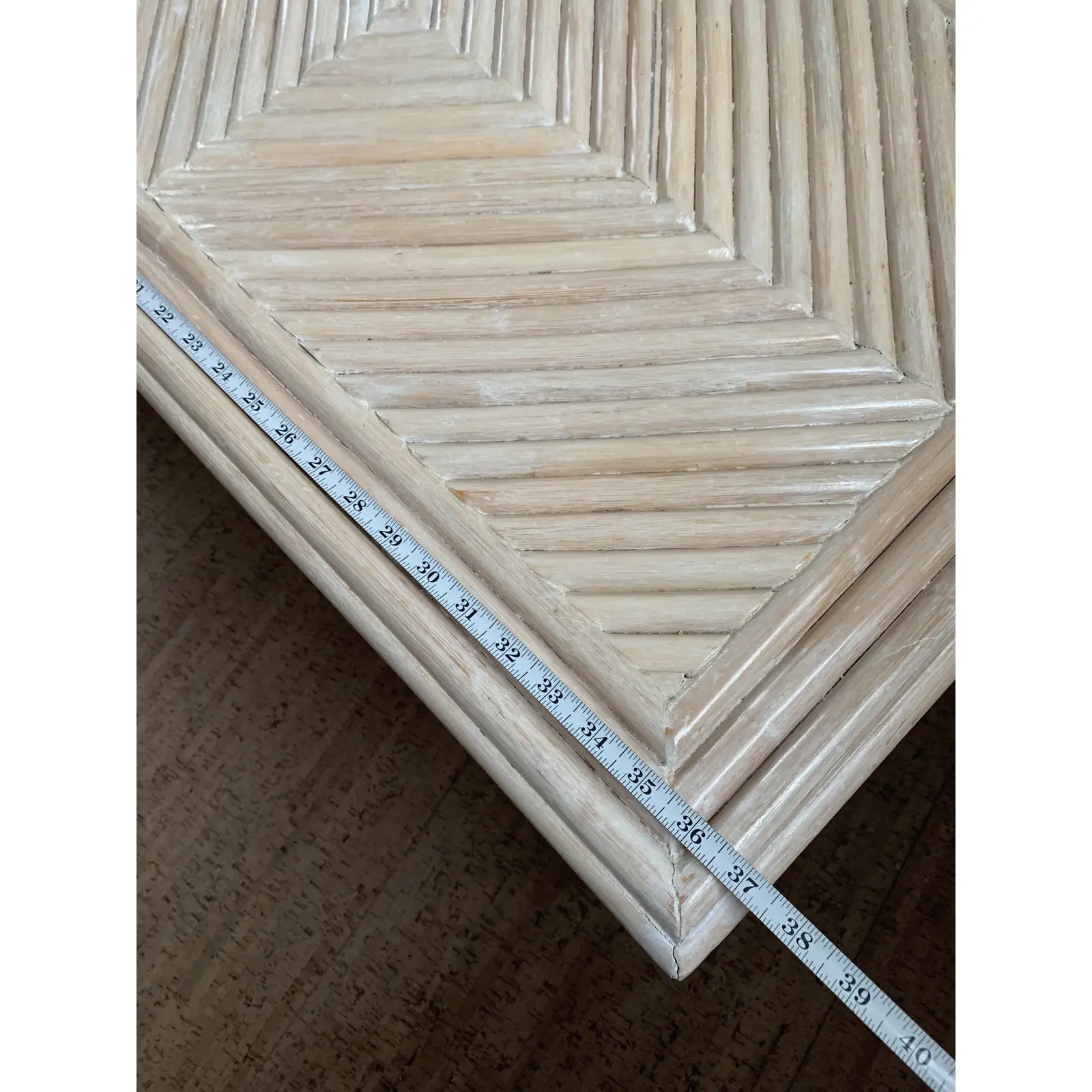 A vintage cerused pencil reed bamboo trunk with diamond patterned application that gives the piece attractive design quality within the shadows of the bamboo reeds. The trunk is very heavy and sturdy.