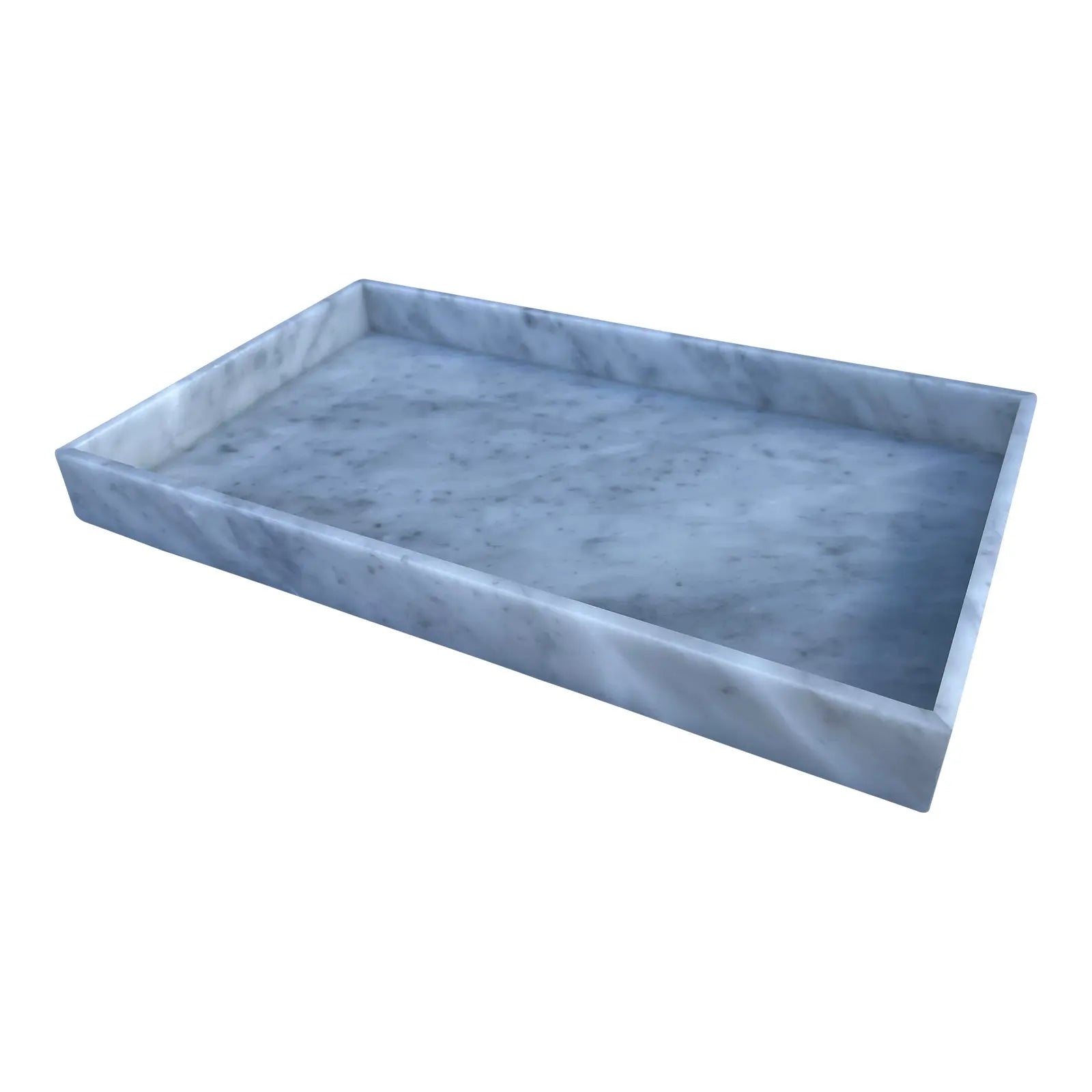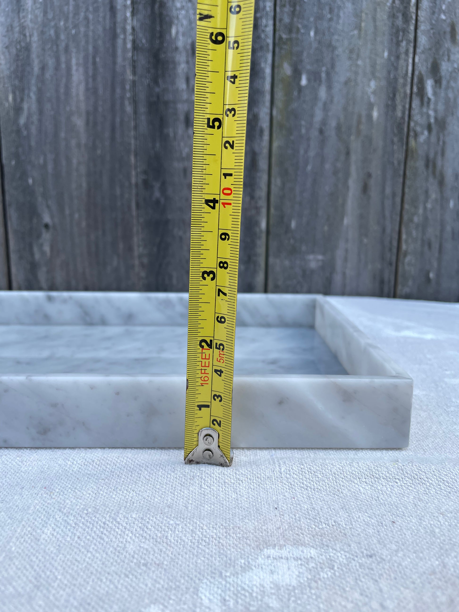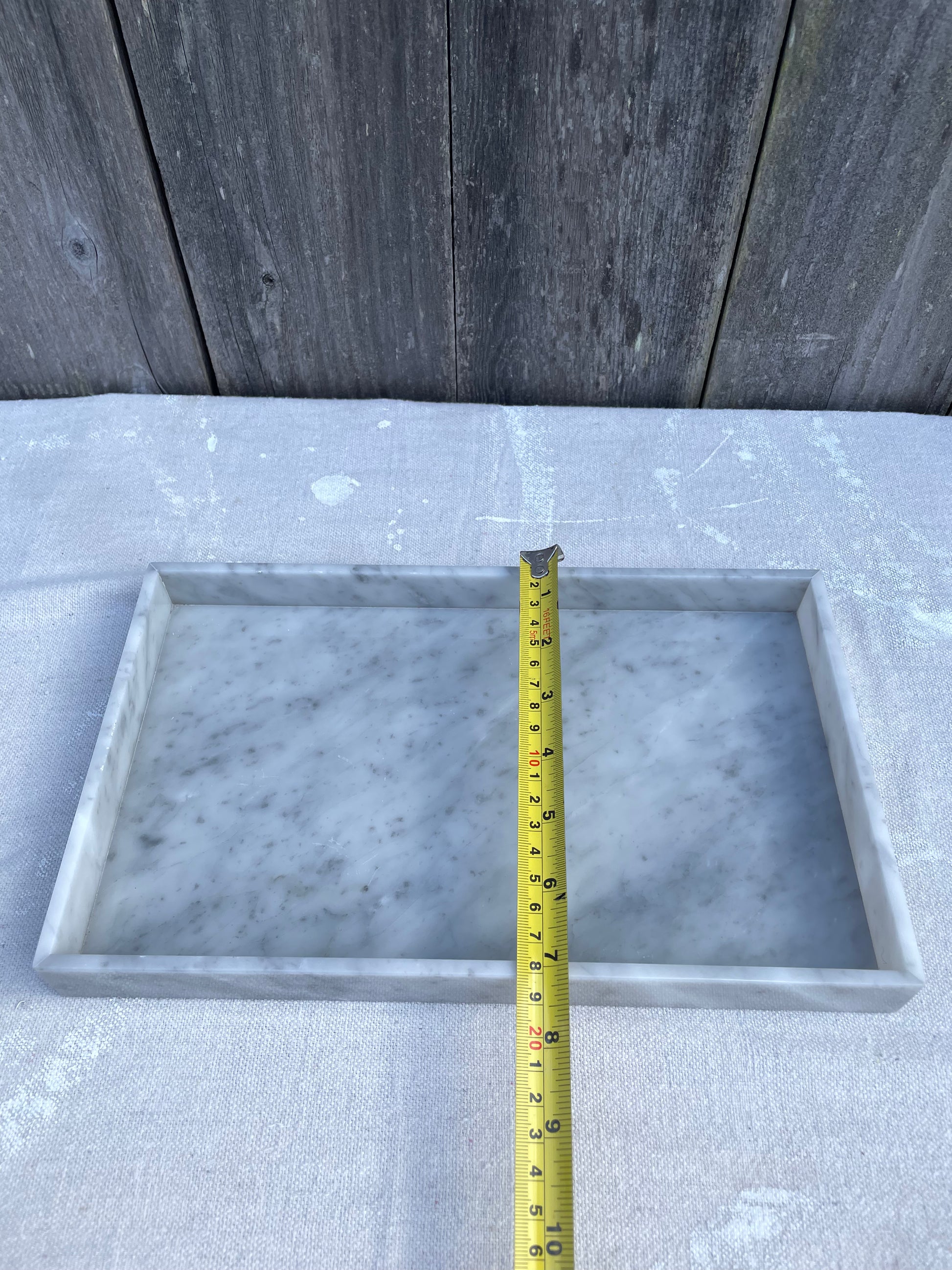 A solid marble tray with modernist lines. This tray is great for organizing in any space, perfect as a desk or vanity top catchall.