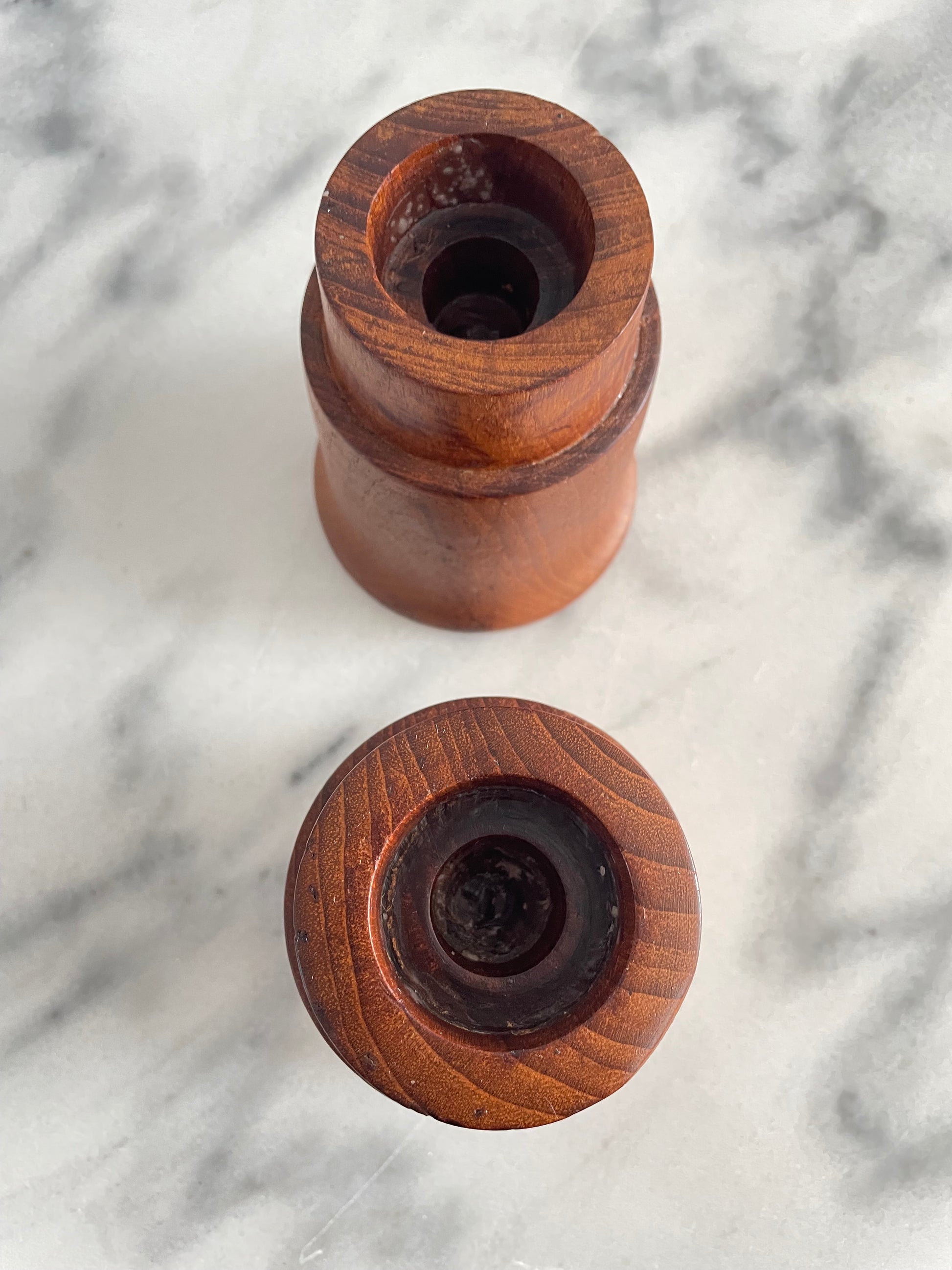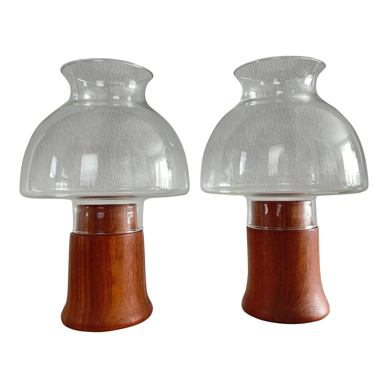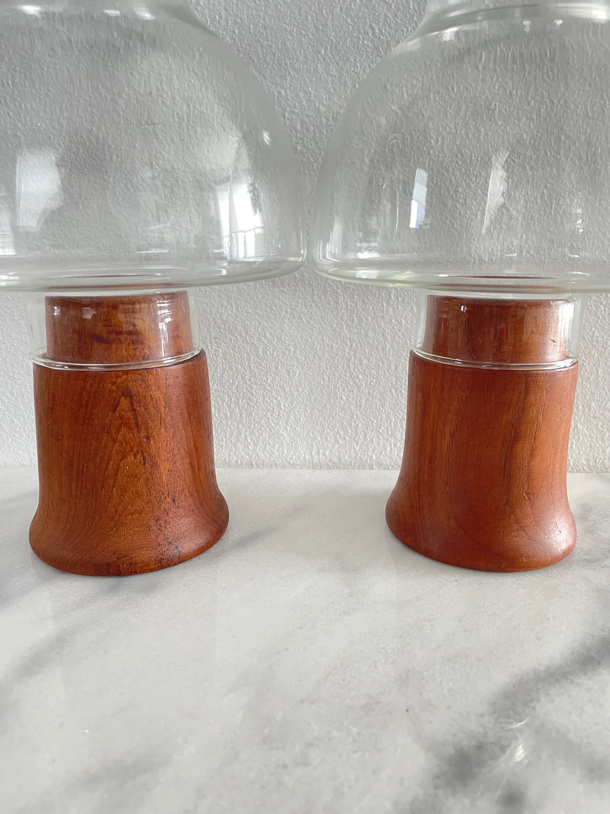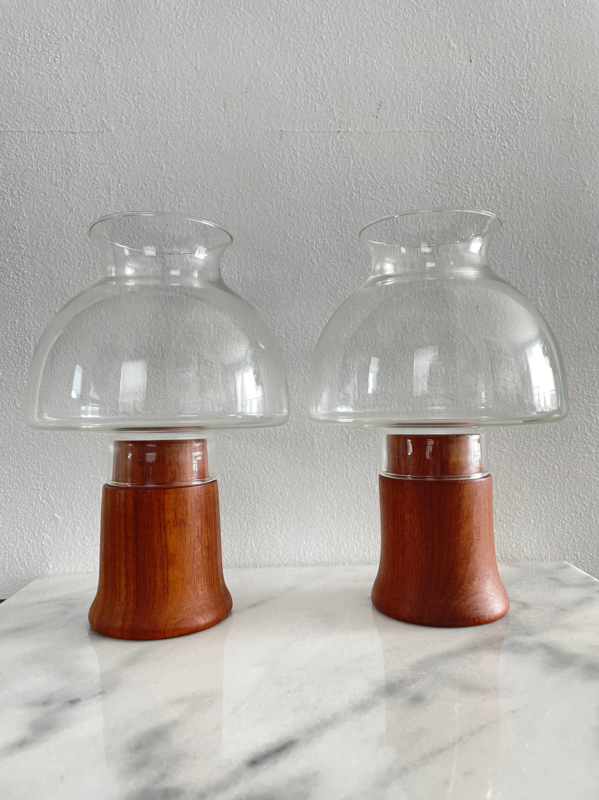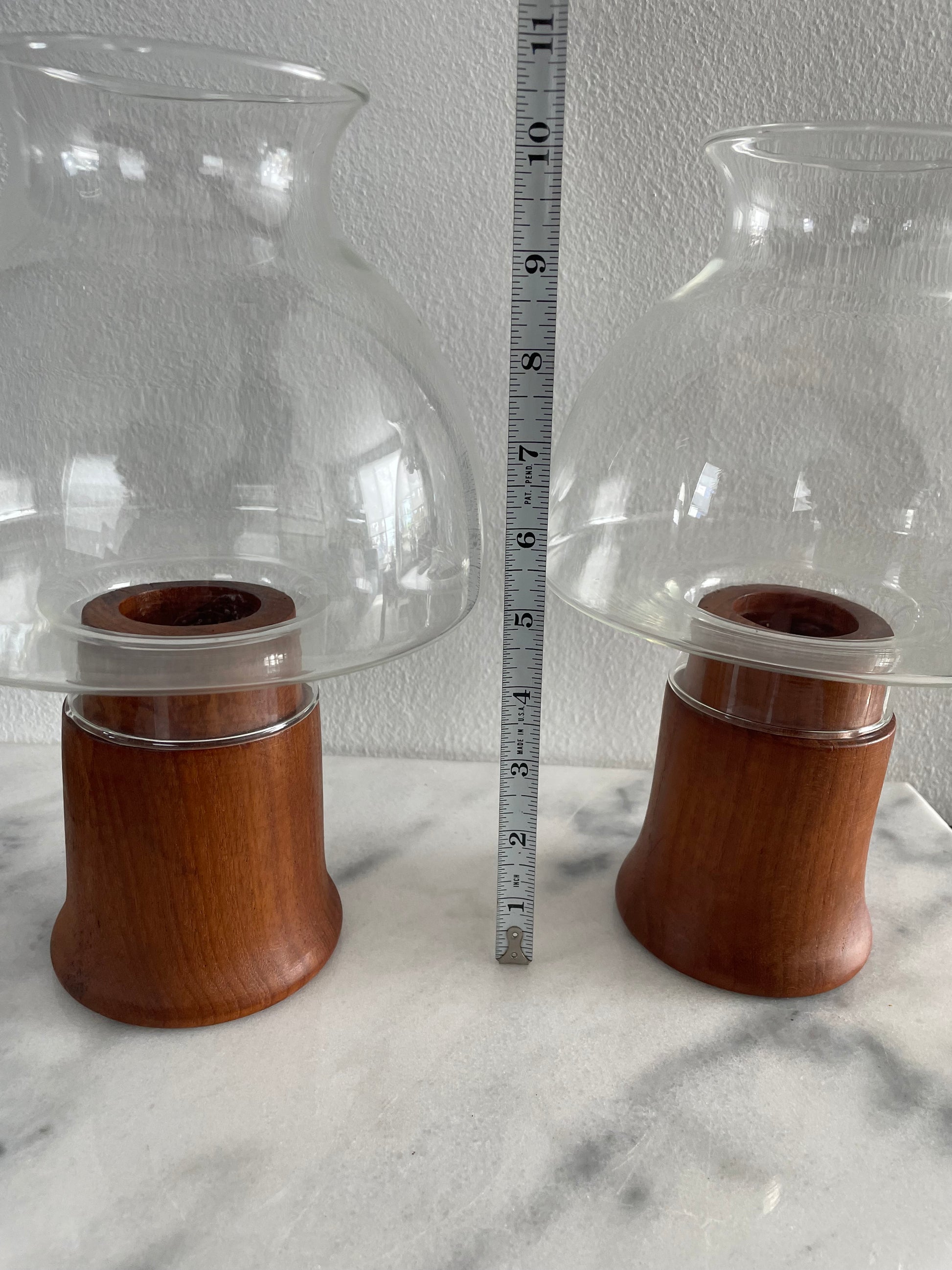 Mid 20th Century Danish Modern Teak Hurricane Lamps With Glass Shade - a Pair