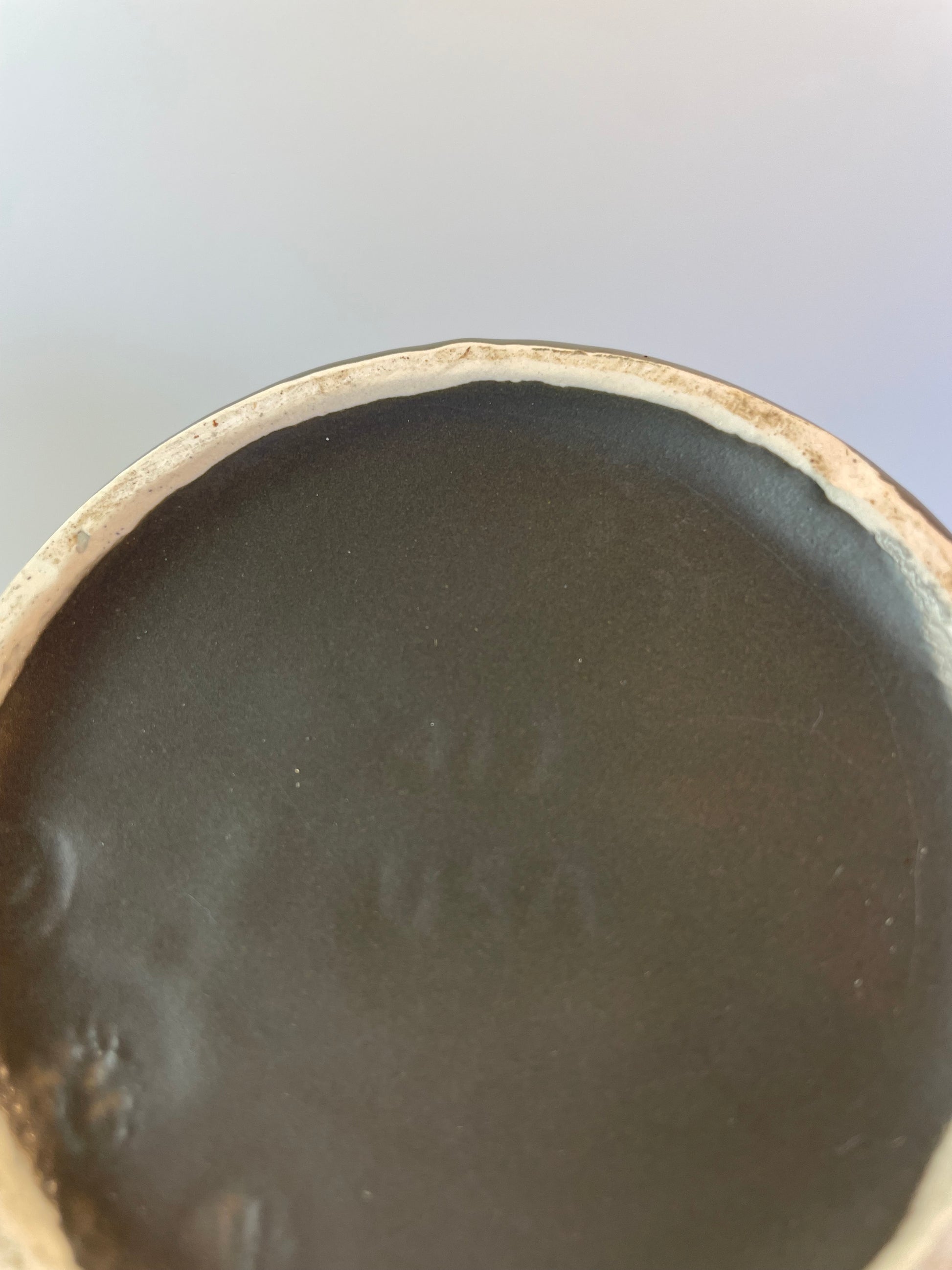 Modernist aesthetic, this McCoy Harmony Line vase features smooth matte black ceramic. Vintage mid-century modern piece showcases McCoy’s signature craftsmanship with a sculptural hourglass form that blends simplicity and elegance. Ideal as a standalone decorative accent or for displaying fresh or dried stems, adds sophistication to any interior. A must-have for collectors of McCoy pottery and lovers of mid-century modern design.