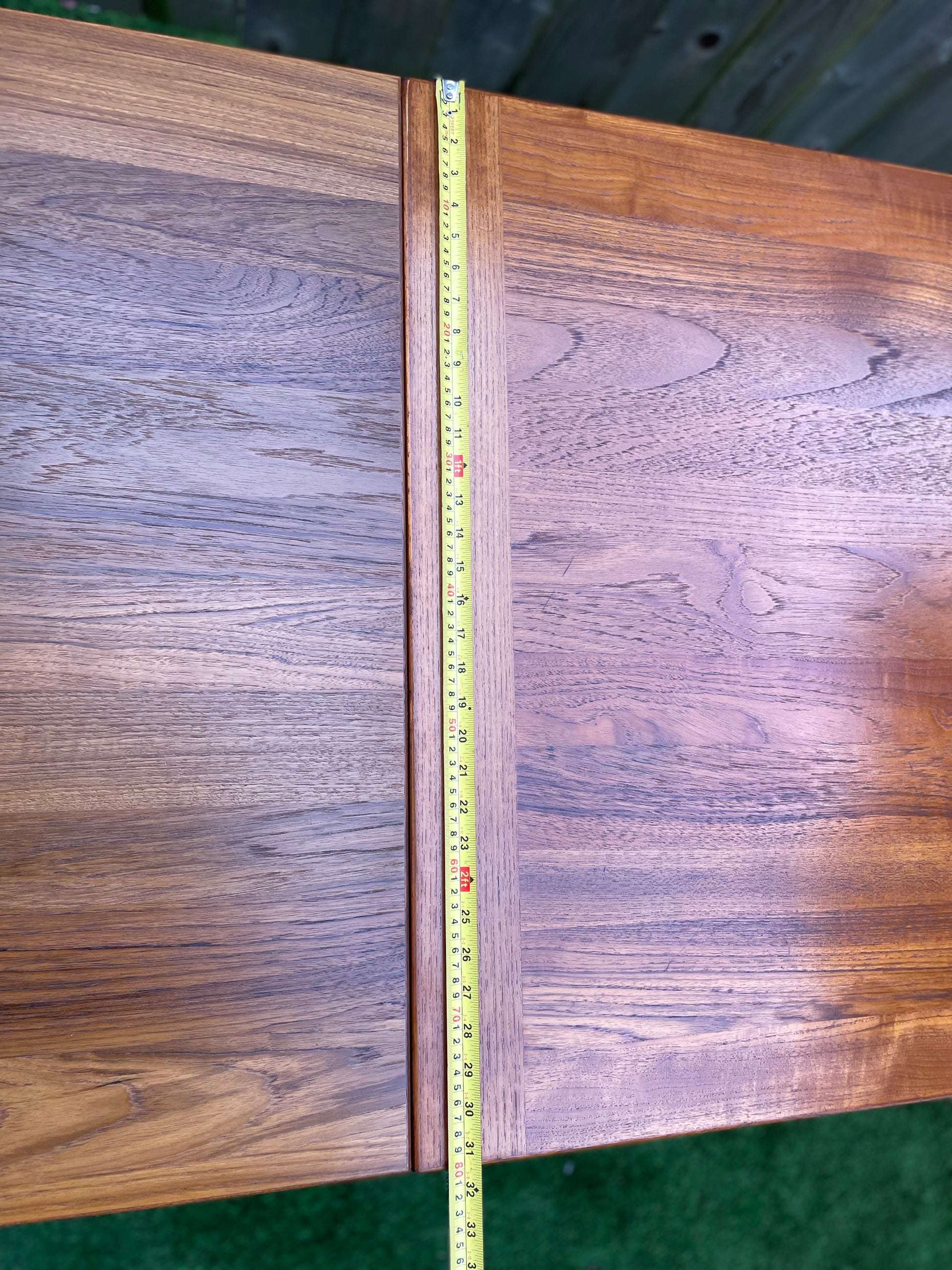 Upgrade your dining experience with this Mid-Century Danish Modern Extendable Dining Table. Crafted with rich teak wood, sleek lines and timeless design, this table effortlessly blends functionality with style. Perfect for both everyday meals and entertaining guests, its extendable feature offers versatility to accommodate gatherings of any size. Add a touch of Danish modern elegance to your home with this stylish and practical dining table.