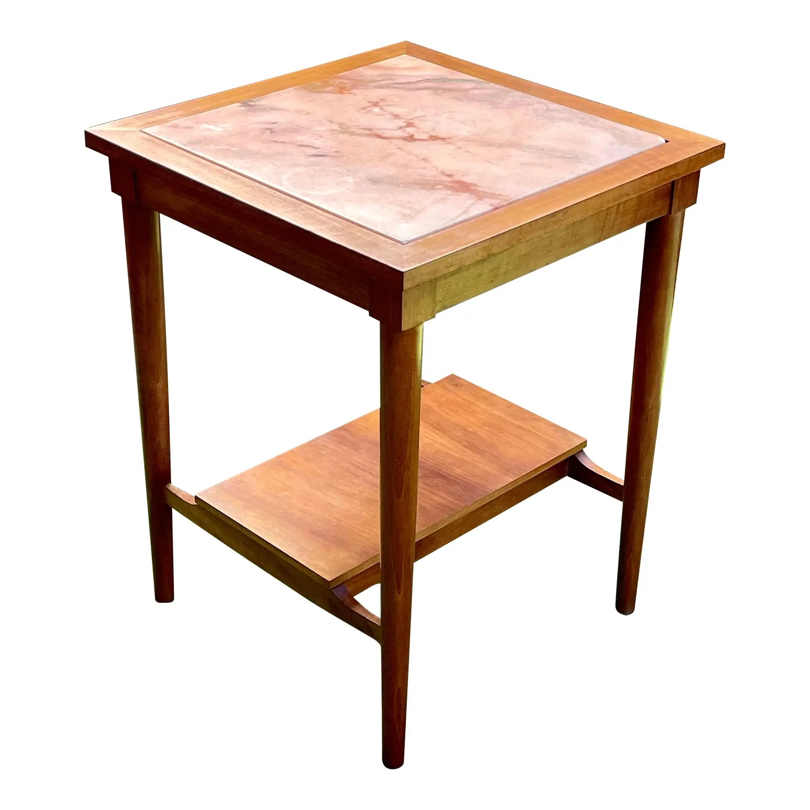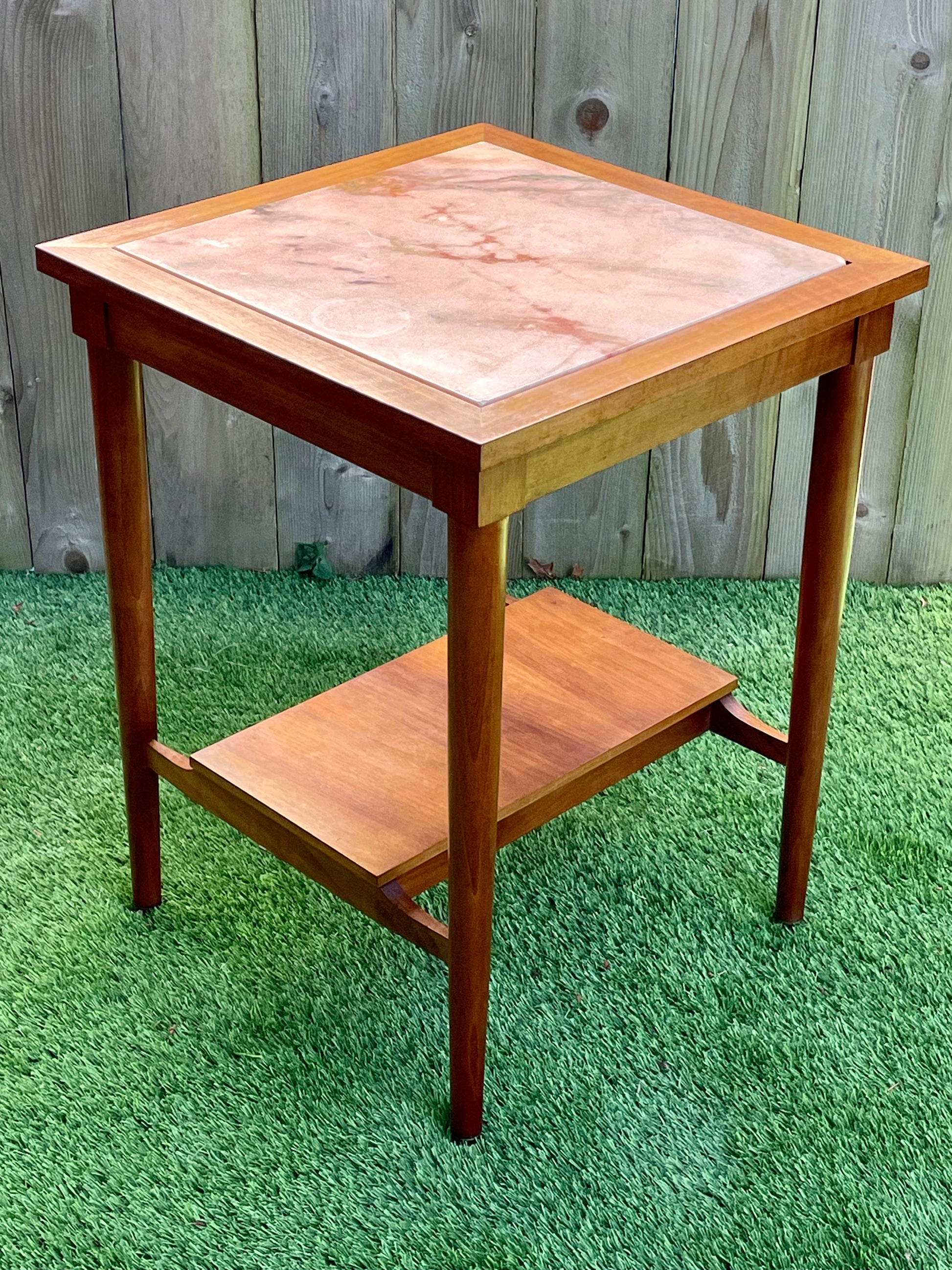 Mid 20th Century Mid-Century Modern Marble and Walnut Side Table