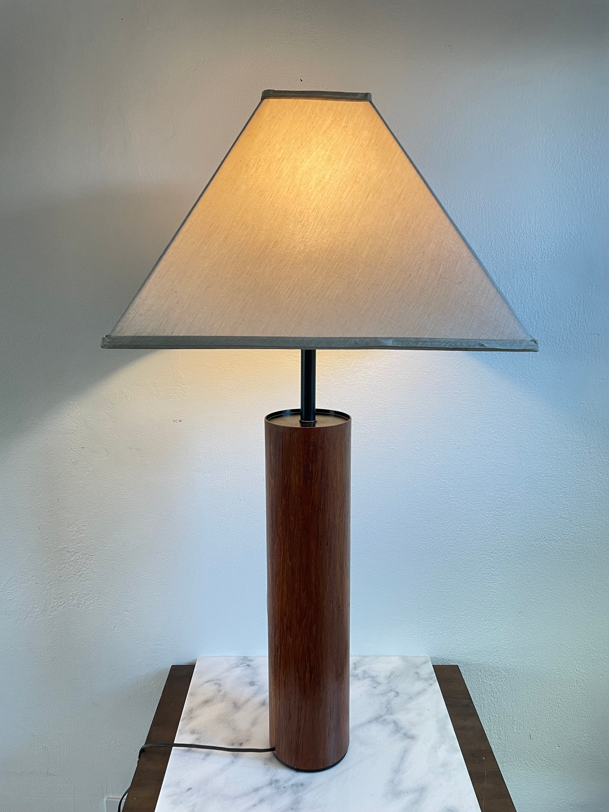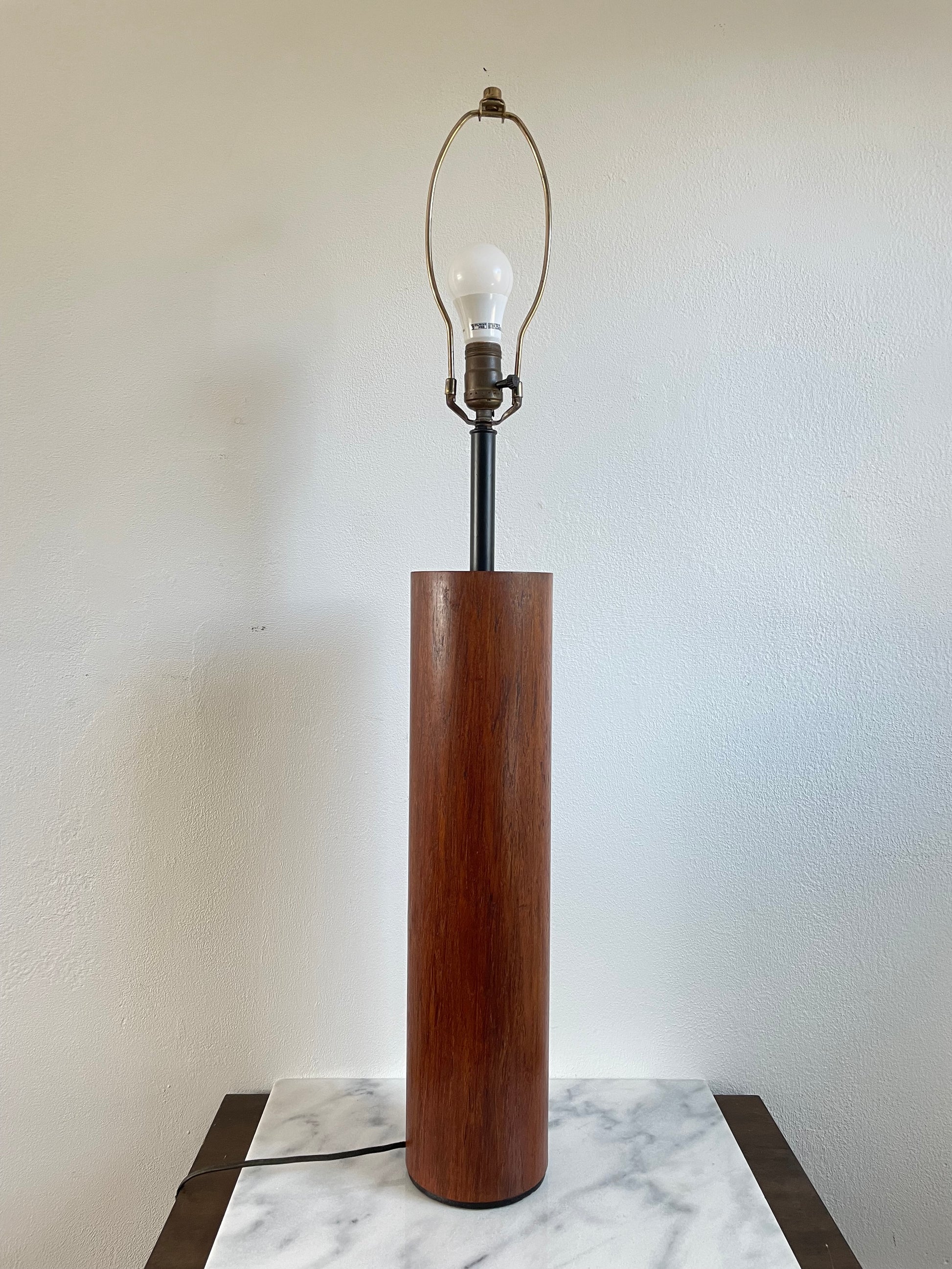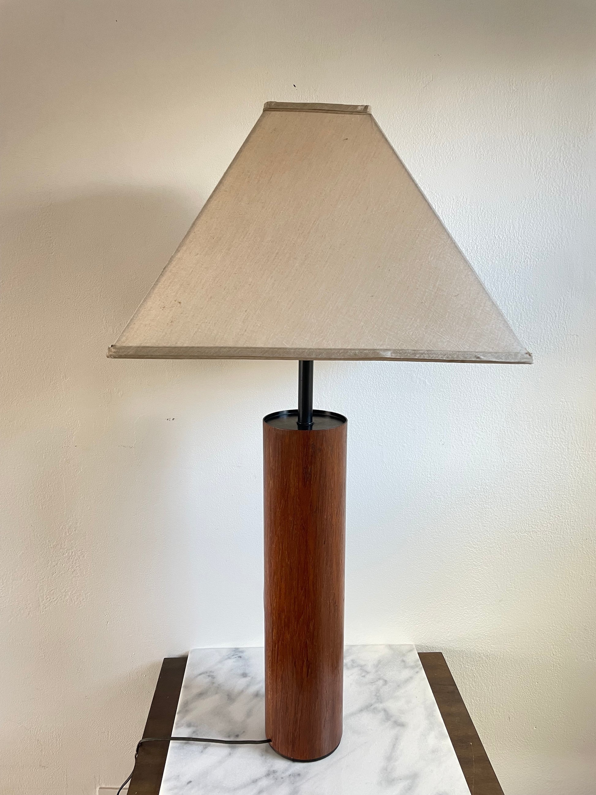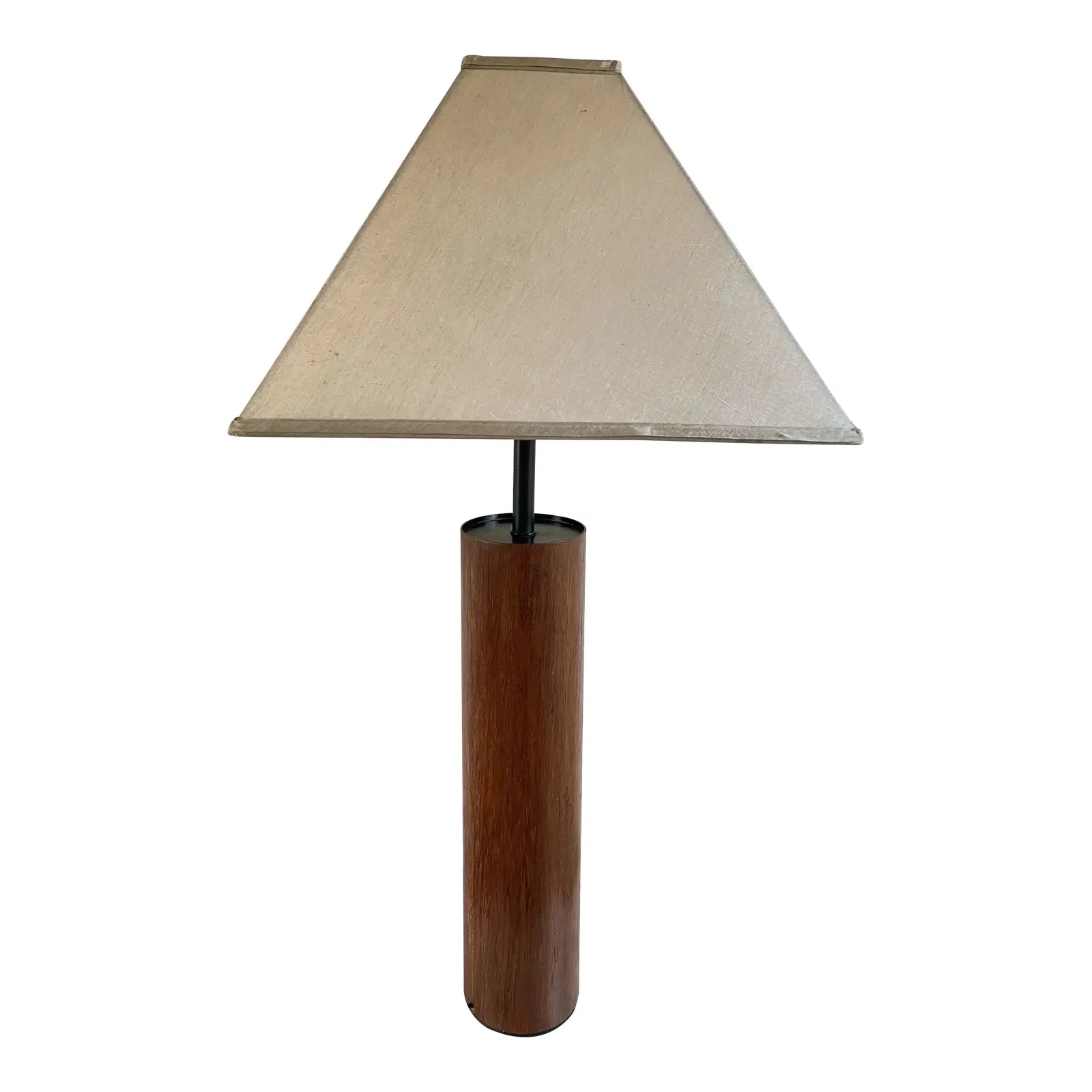 Mid 20th Century Minimalist Modern Walnut Cylinder Table Lamp