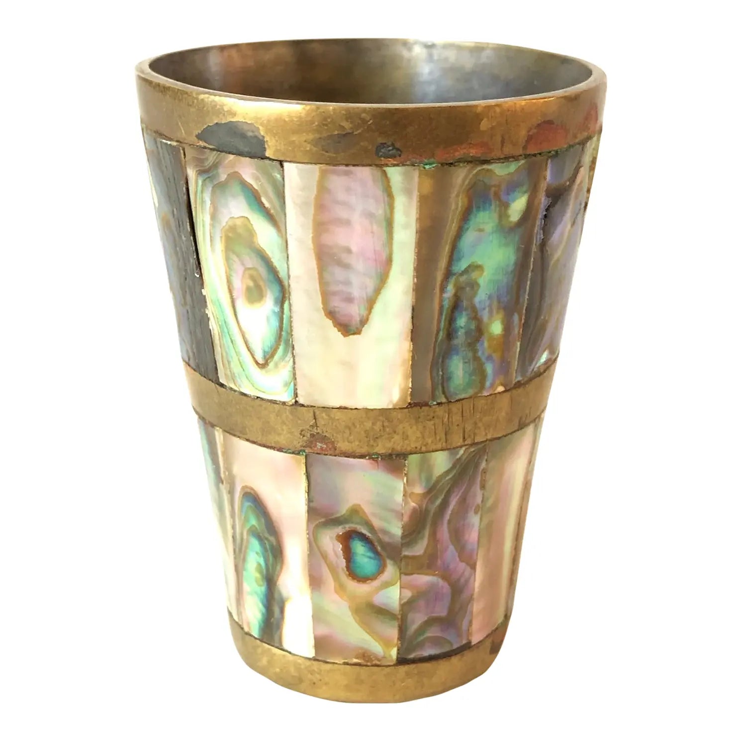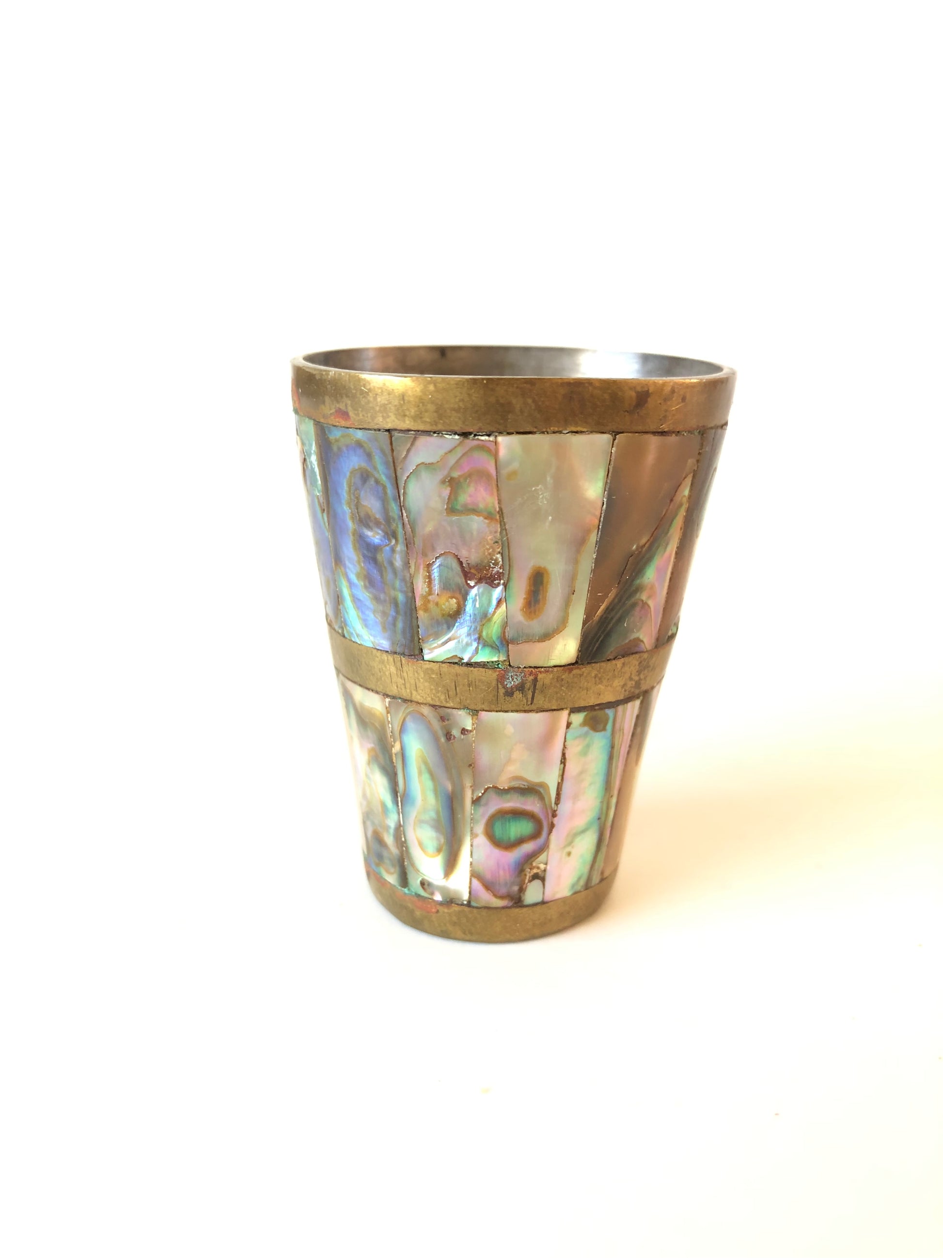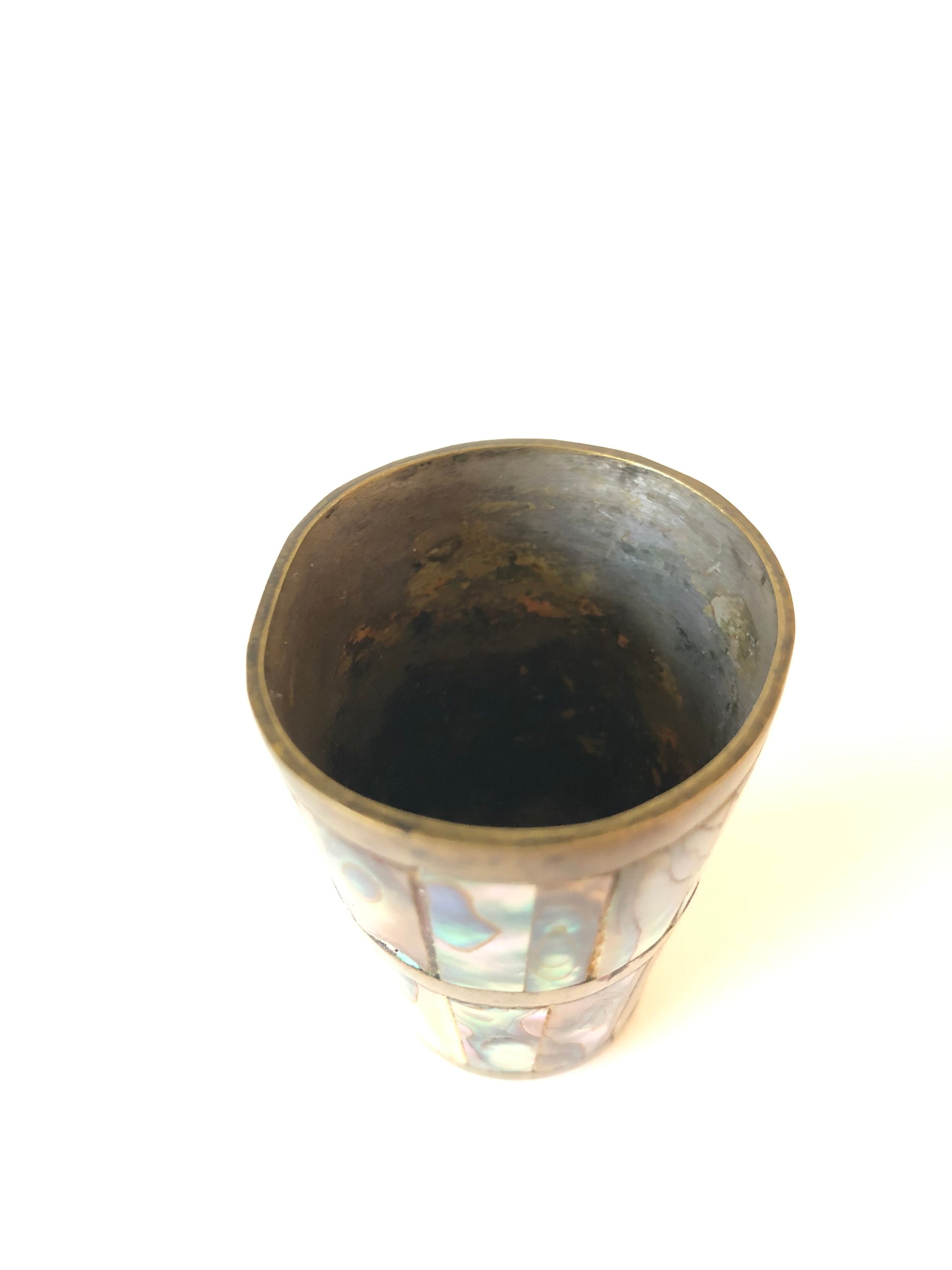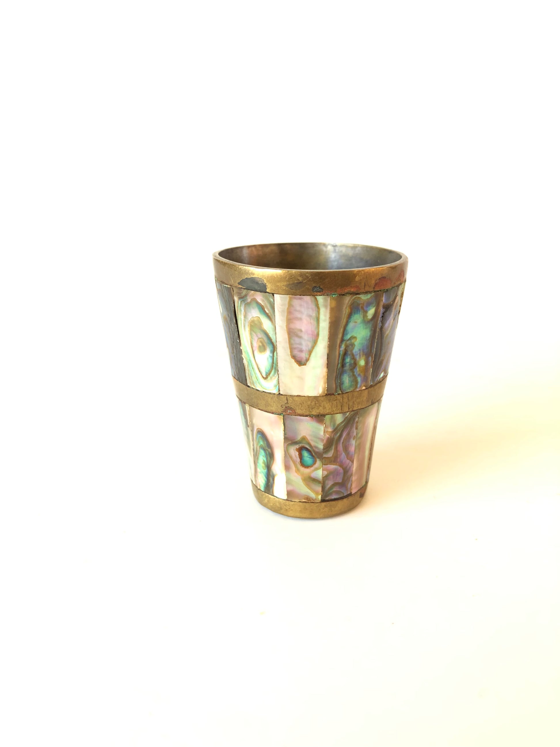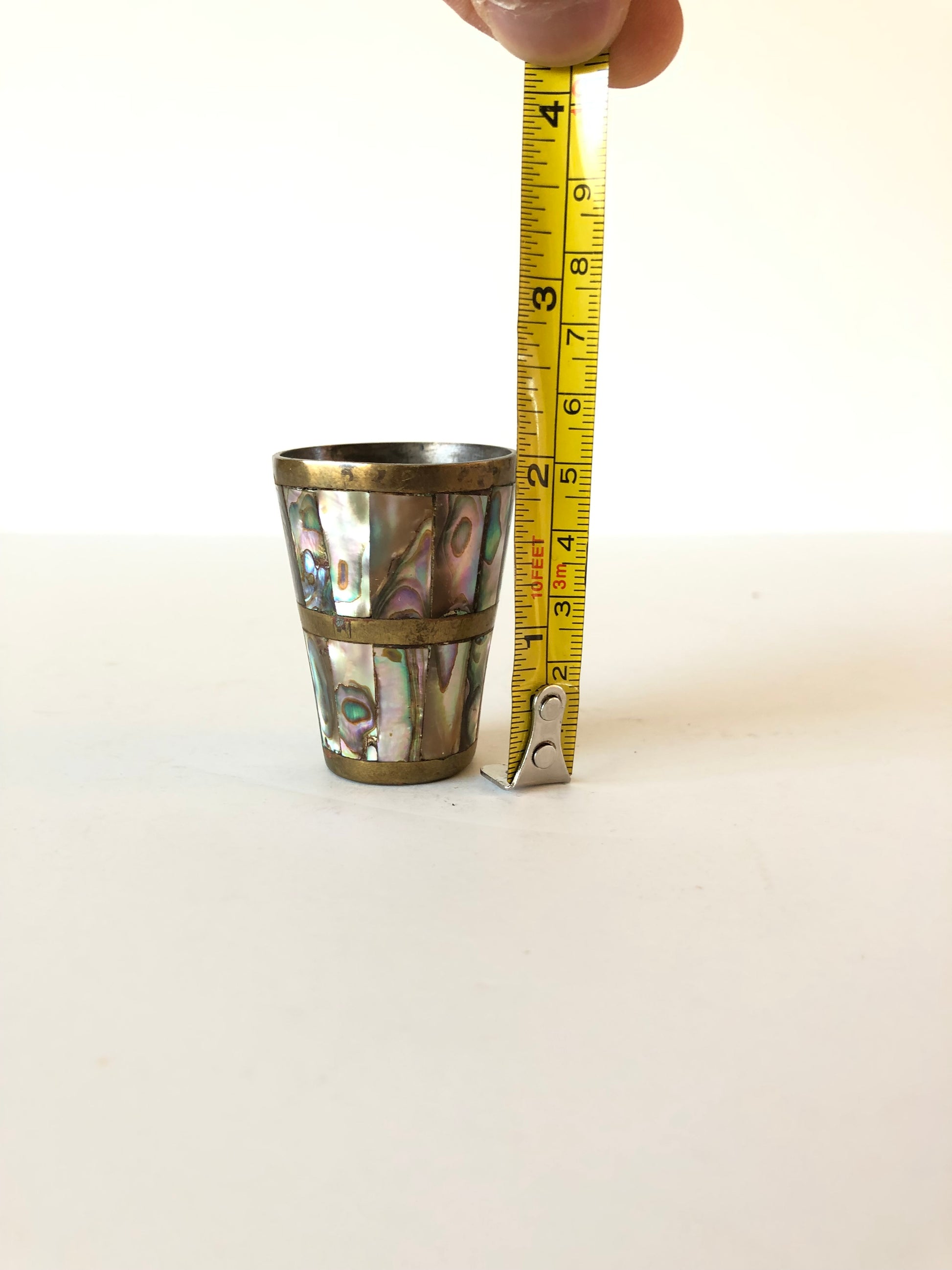 Mid 20th Century Mother of Pearl & Brass Shot Glass