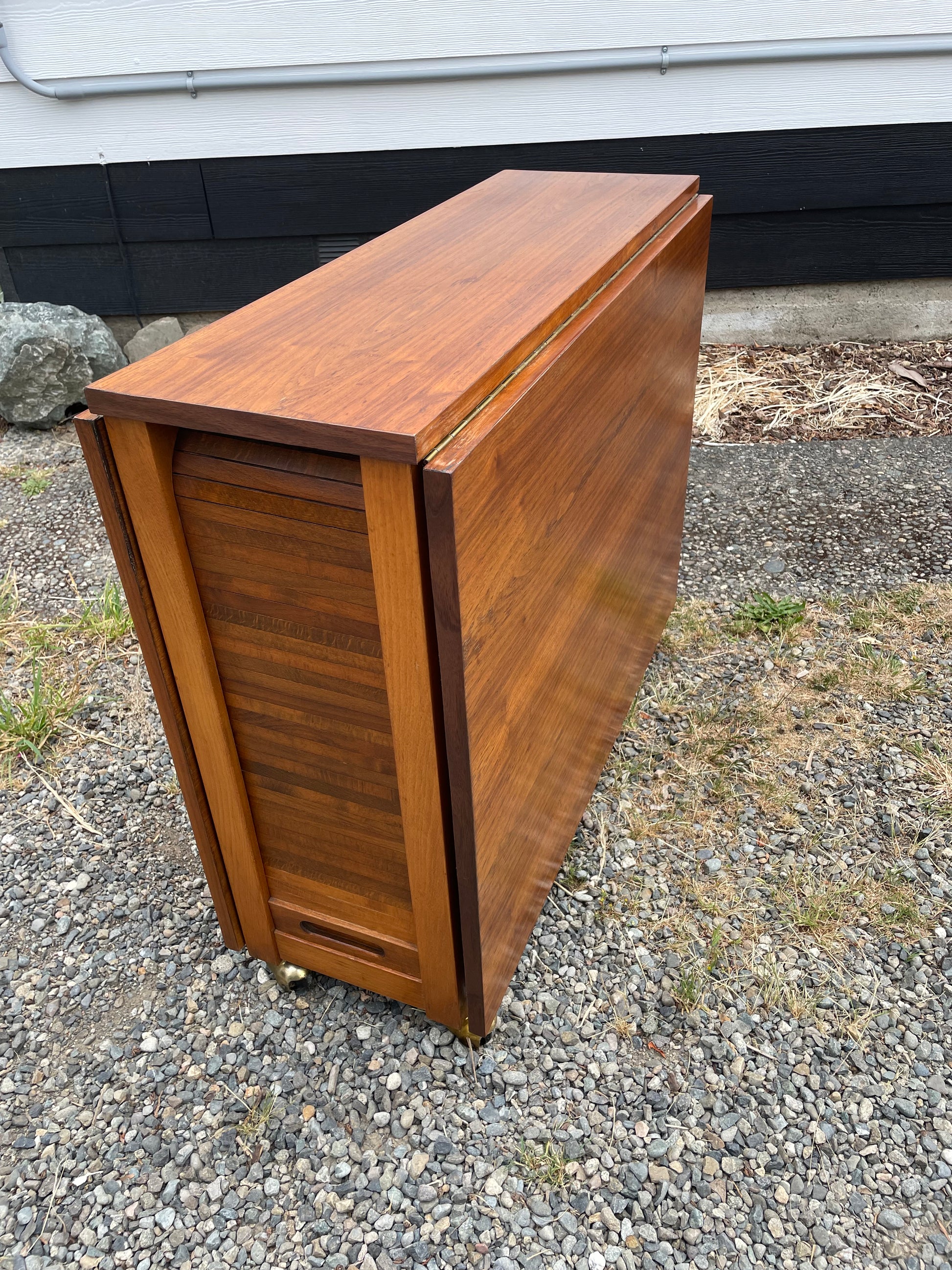 Both stylish and highly functional, this iconic minimalist drop-leaf table is a smart solution for small spaces where style and practicality are equally important. Designed with versatility in mind, it features two expandable leaves, a convenient storage drawer, and four folding chairs that tuck neatly inside. When fully extended to 62”, it comfortably seats up to six; when collapsed, it shrinks down to a sleek 12.5” width—perfect for apartments, cabins, or any compact living area.