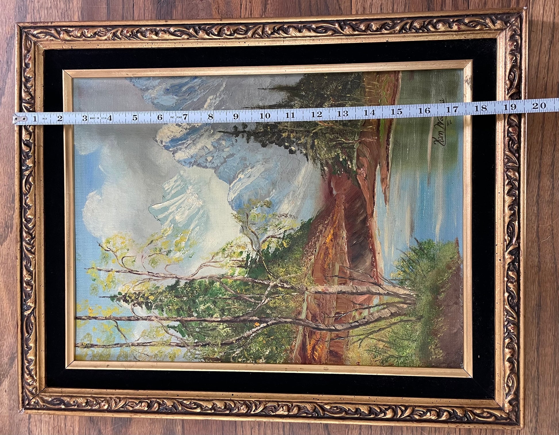 Mid 20th Century Signed Framed Vintage Mountain Landscape Oil on Board