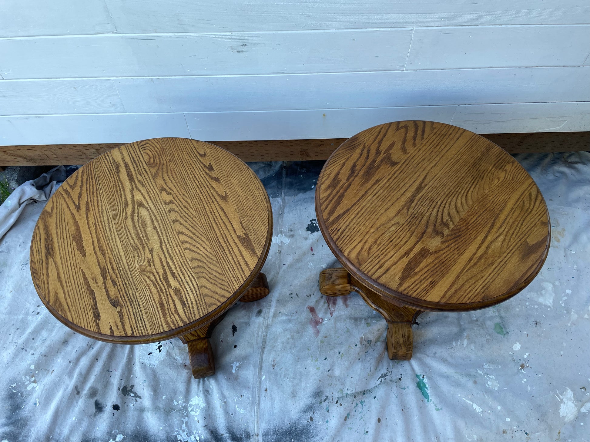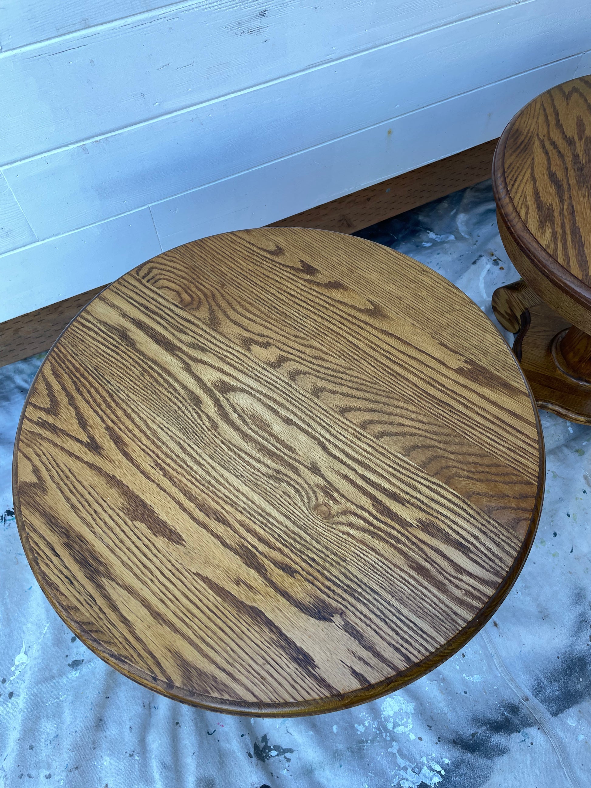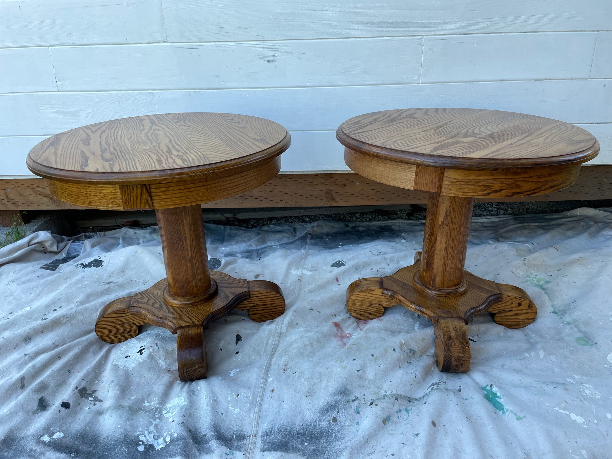 Mid 20th Century Solid Oak Round Pedestal Tables - a Pair