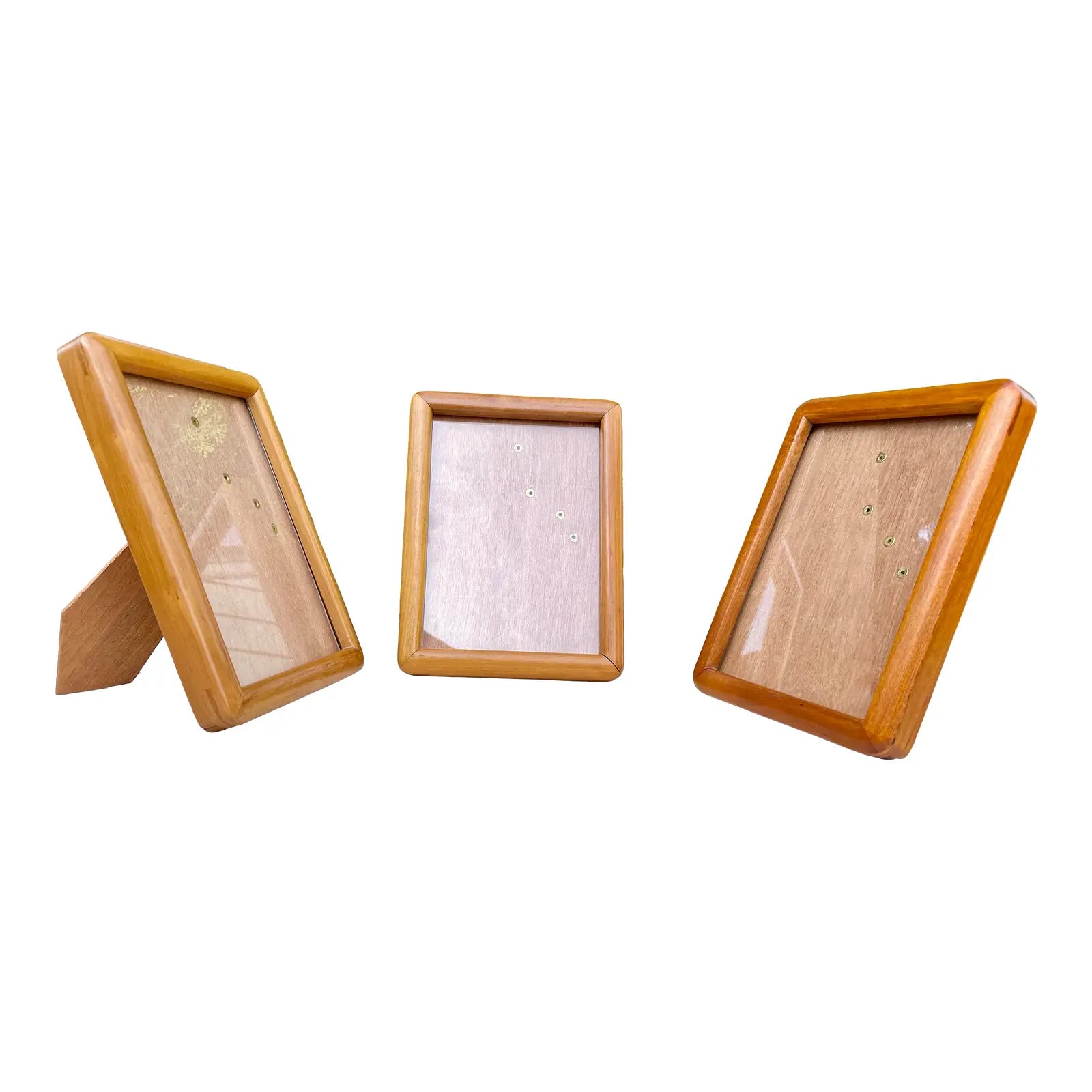 Mid 20th Century Solid Teak Wood Picture Frames Wall or Tabletop - Set of 3