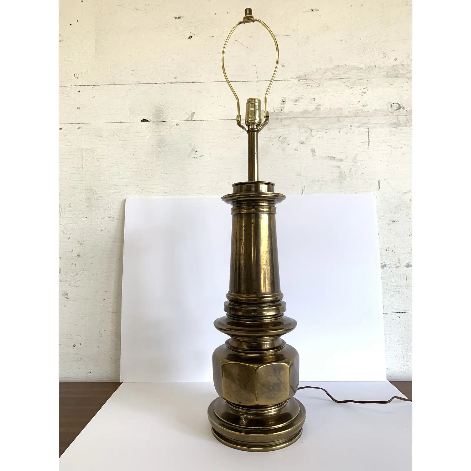 Pair of Heavy Mid 20th Century Stiffel Architectural Solid Brass Lamps