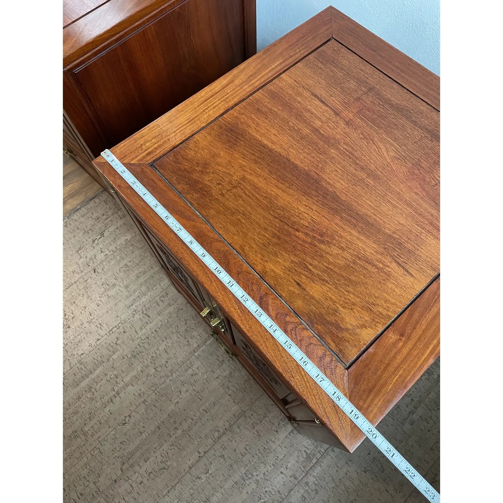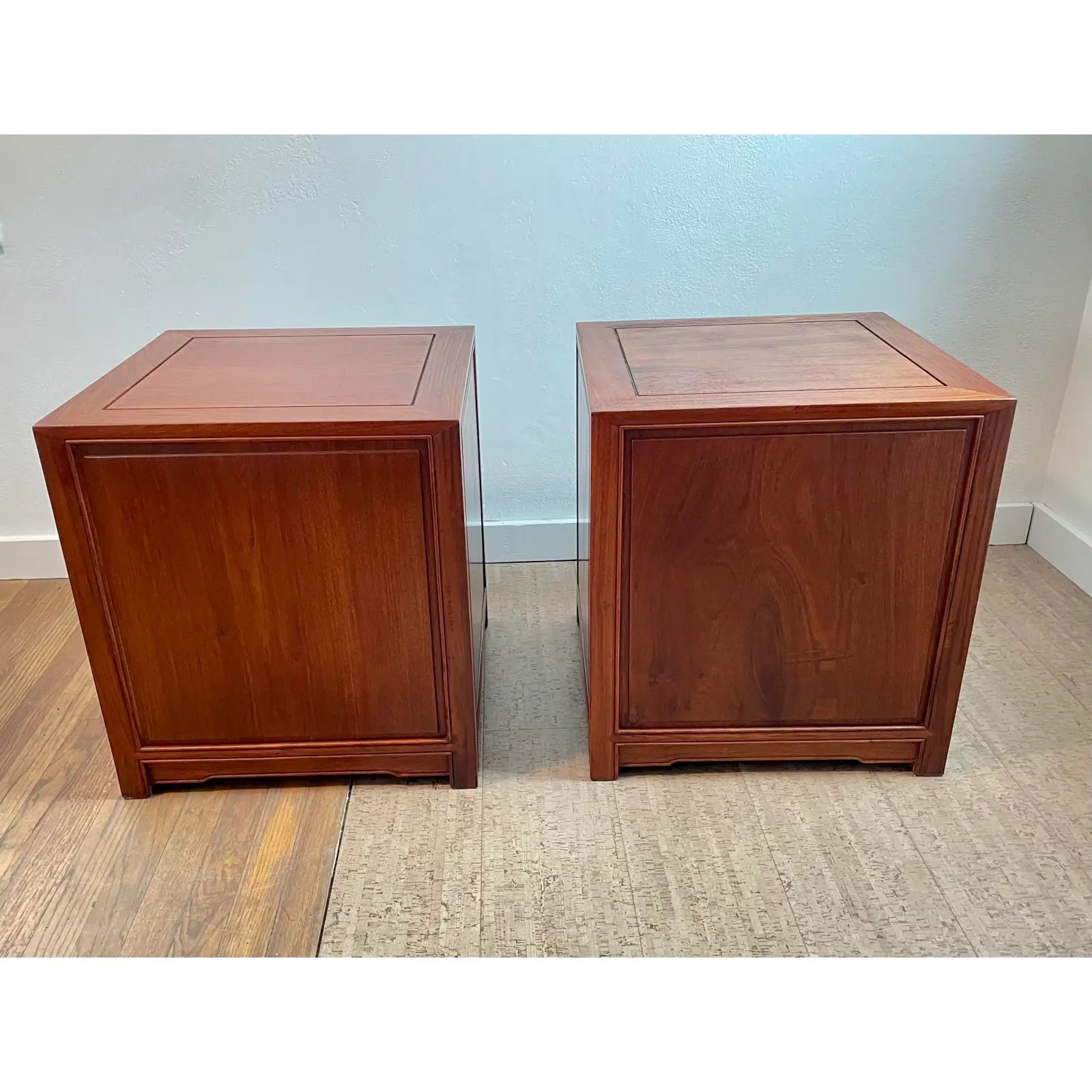 Mid 20th Century Vintage Chinoiserie Hand Carved Solid Rosewood End Cabinets - a Pair